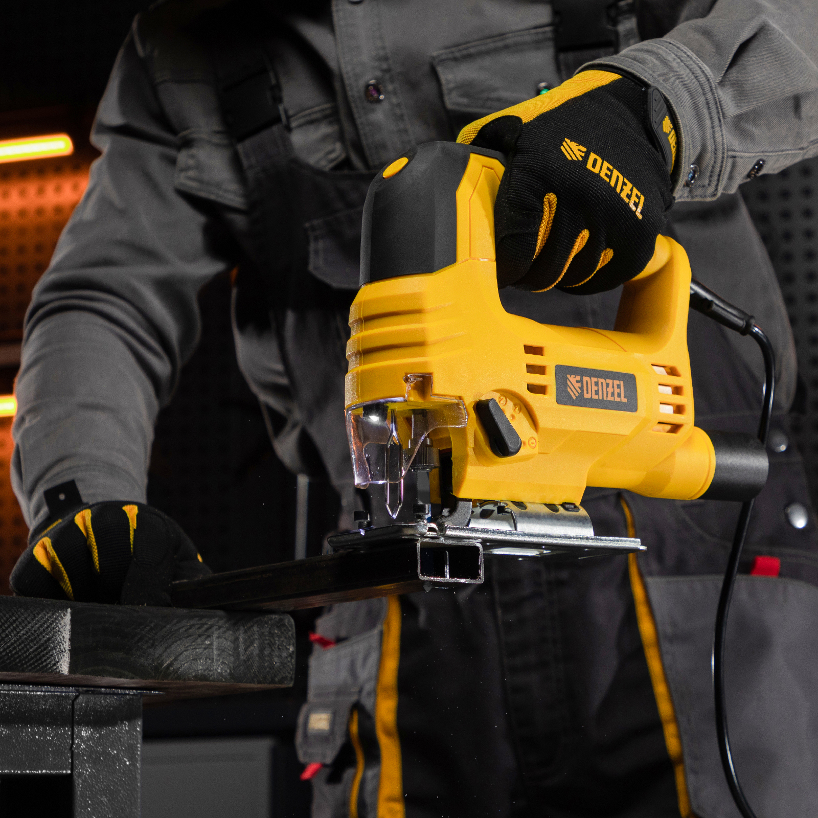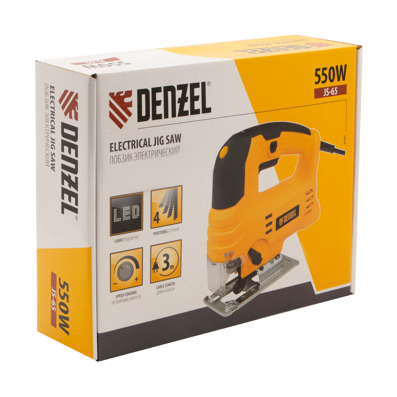 Электрический лобзик Denzel JS-65 27101 мощностью 550 Вт предназначен для прямого и фигурного реза листовых материалов из металла, древесины, и пластмассы, а также для вырезки варочных панелей или отверстий под мойки в столешницах. Двигатель обеспечивает частоту хода оснастки 1000-2800 ход/мин. Для резки древесины максимальная глубина пропила составляет 65 мм, для цветных металлов — 12 мм, а для стали — 6 мм. Угол наклона подошвы регулируется, что позволяет совершать пропилы под углом до 45°.