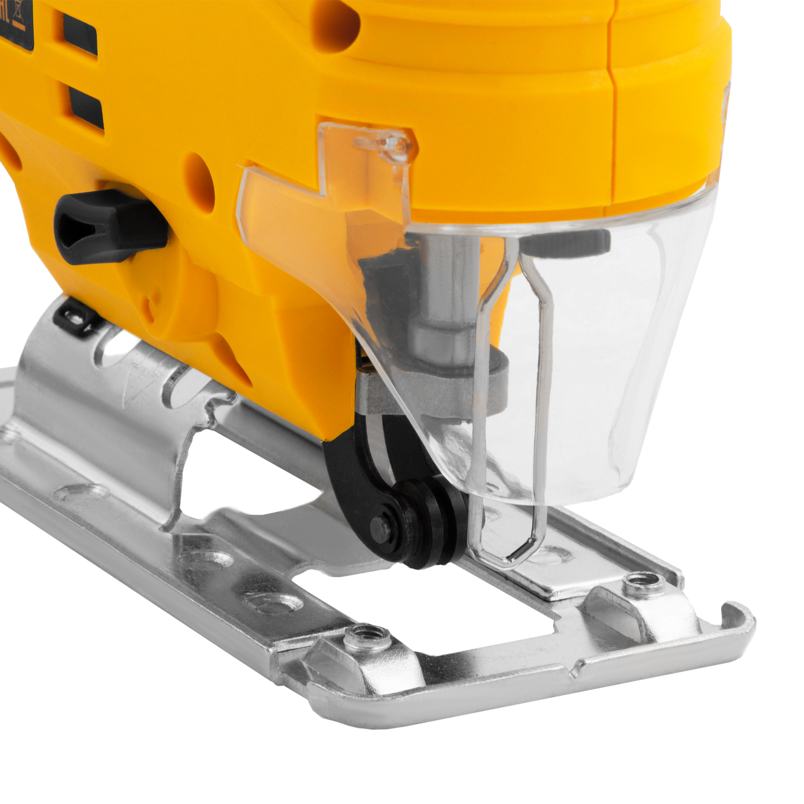 - Безопасность — прозрачный поворотный щиток и металлический ограничитель защищают мастера от травм и разлетающихся опилок.