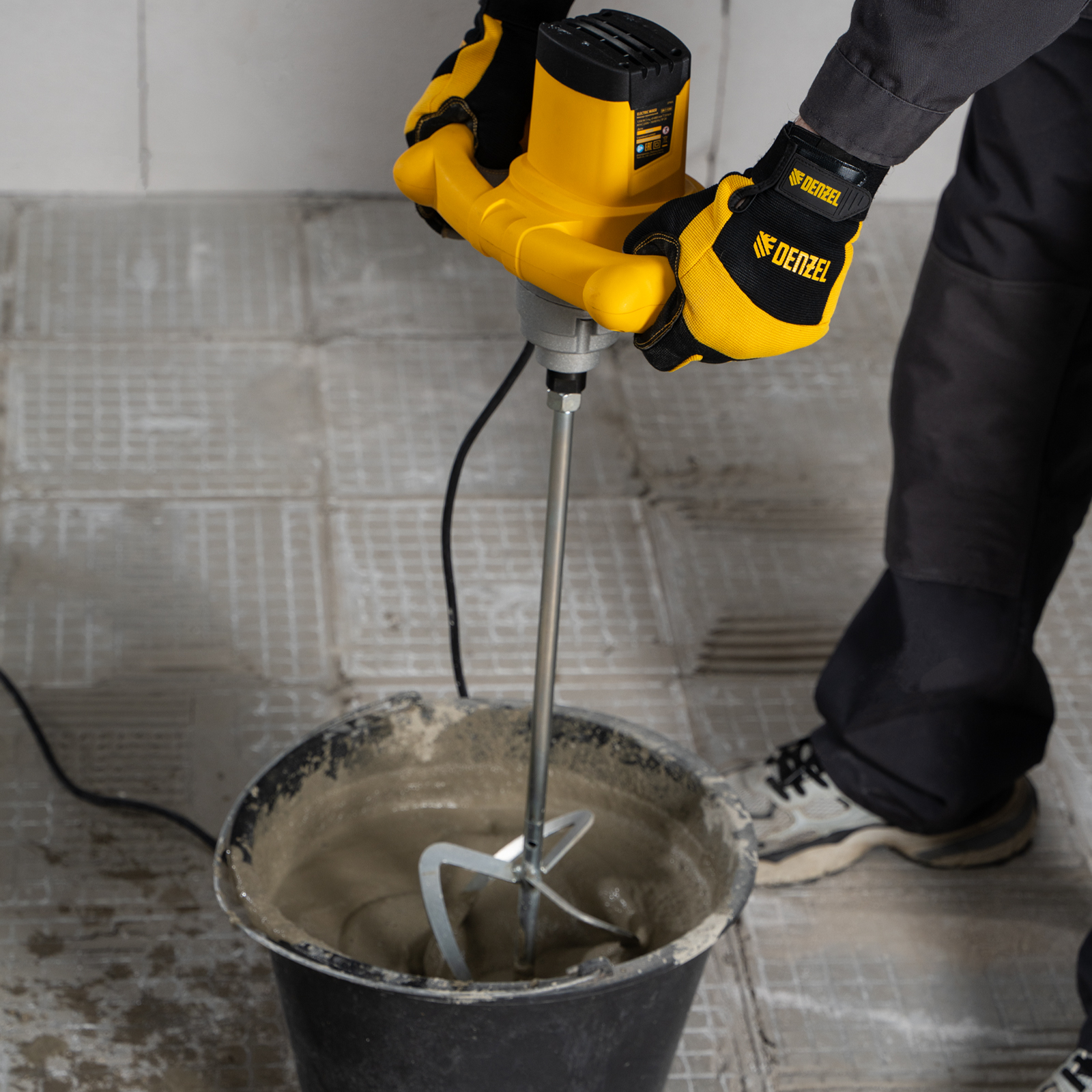 Строительный миксер Denzel EM-1-1200 27905 мощностью 1200 Вт используется для замешивания легких и средних бетонных смесей, штукатурных, шпатлевочных и других строительных растворов, а также плиточных и обойных клеев и лакокрасочных материалов. Имеет частоту вращения шпинделя 0-680 об/мин. Максимальный крутящий момент 70 Н·м позволяет эффективно решать поставленные задачи.