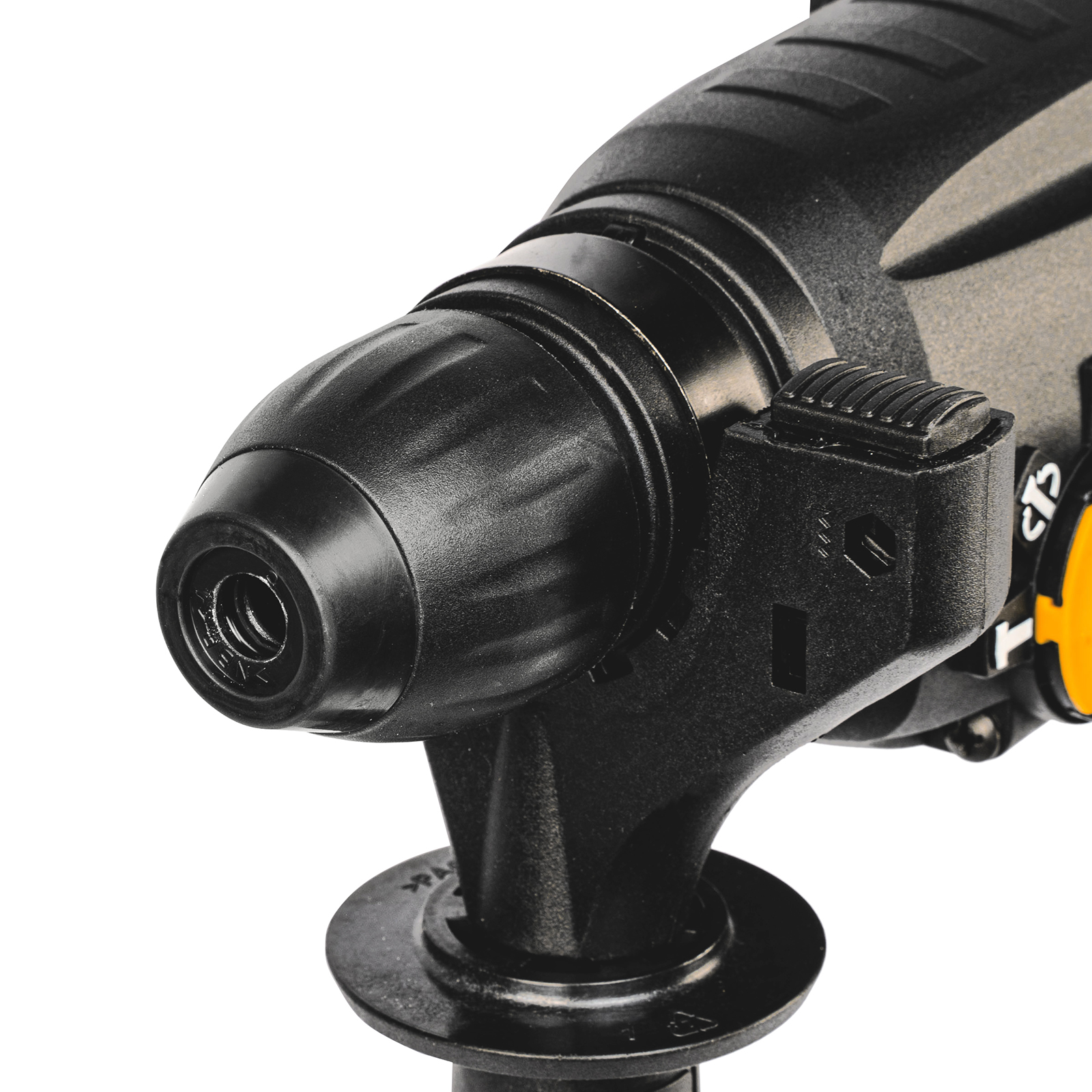- Быстрая подготовка к работе — хвостовик оснастки надежно фиксируется в патроне SDS-plus.