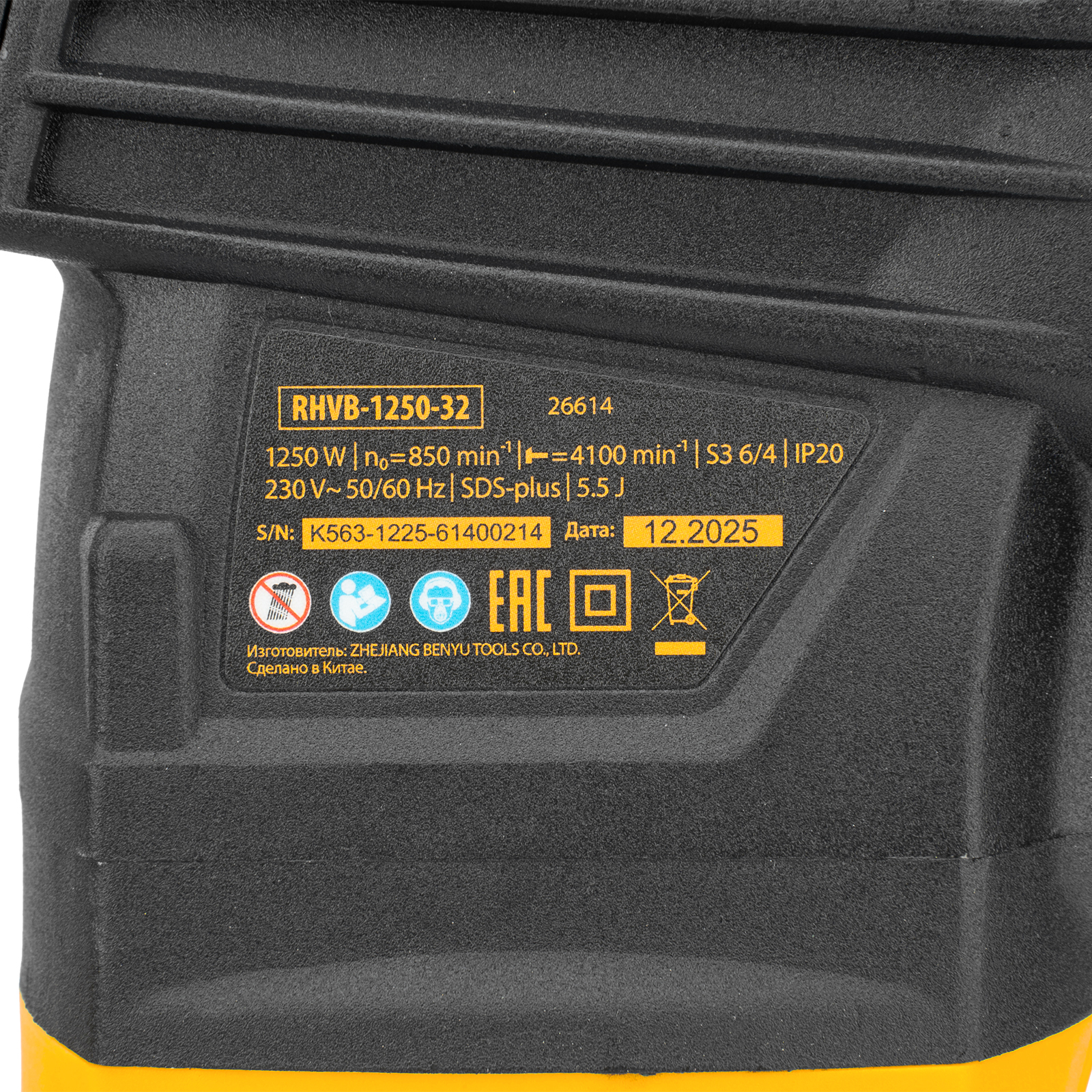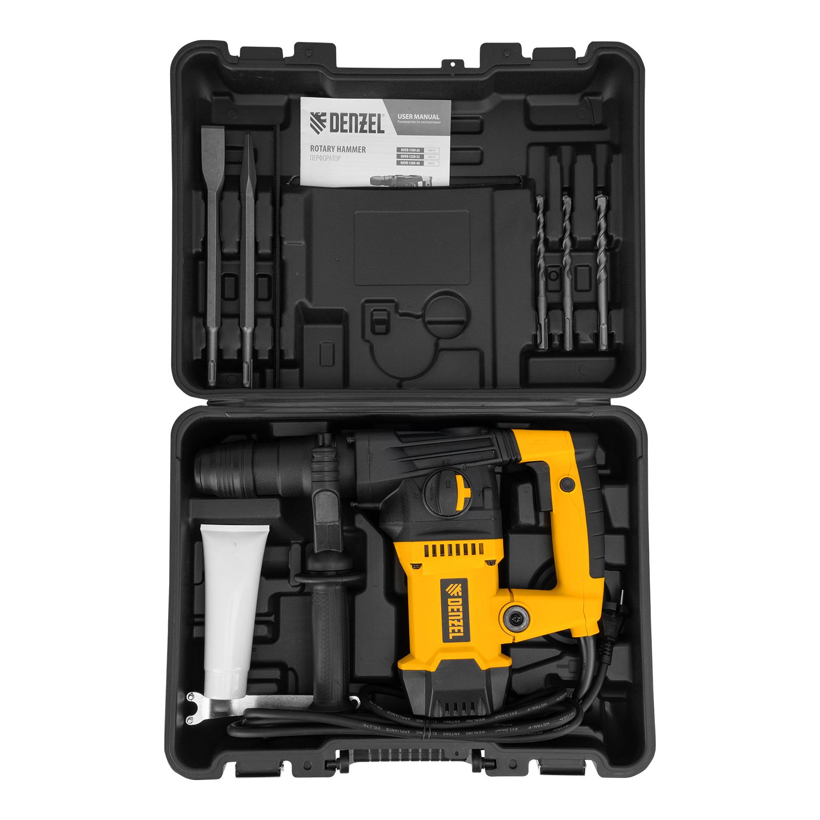 Электрический перфоратор Denzel RHVB-1100-26 26613 мощностью 1100 Вт, с патроном под хвостовик SDS Plus, имеет энергию удара 4 Дж и работает в режиме сверления, сверления с ударом и долбления, также предусмотрена функция изменения позиции оснастки. Предназначен для проведения демонтажных работ, получения отверстий в различных конструкционных материалах, прокладывания штроб и т.д. Максимальный диаметр сверления в бетоне составляет 26 мм, в древесине — 30 мм, в стали — 13 мм. Шпиндель вращается со скоростью 870 об/мин, частота ударов составляет 4400 уд/мин, что позволяет эффективно решать поставленные задачи во время проведения ремонтных и строительных работ.