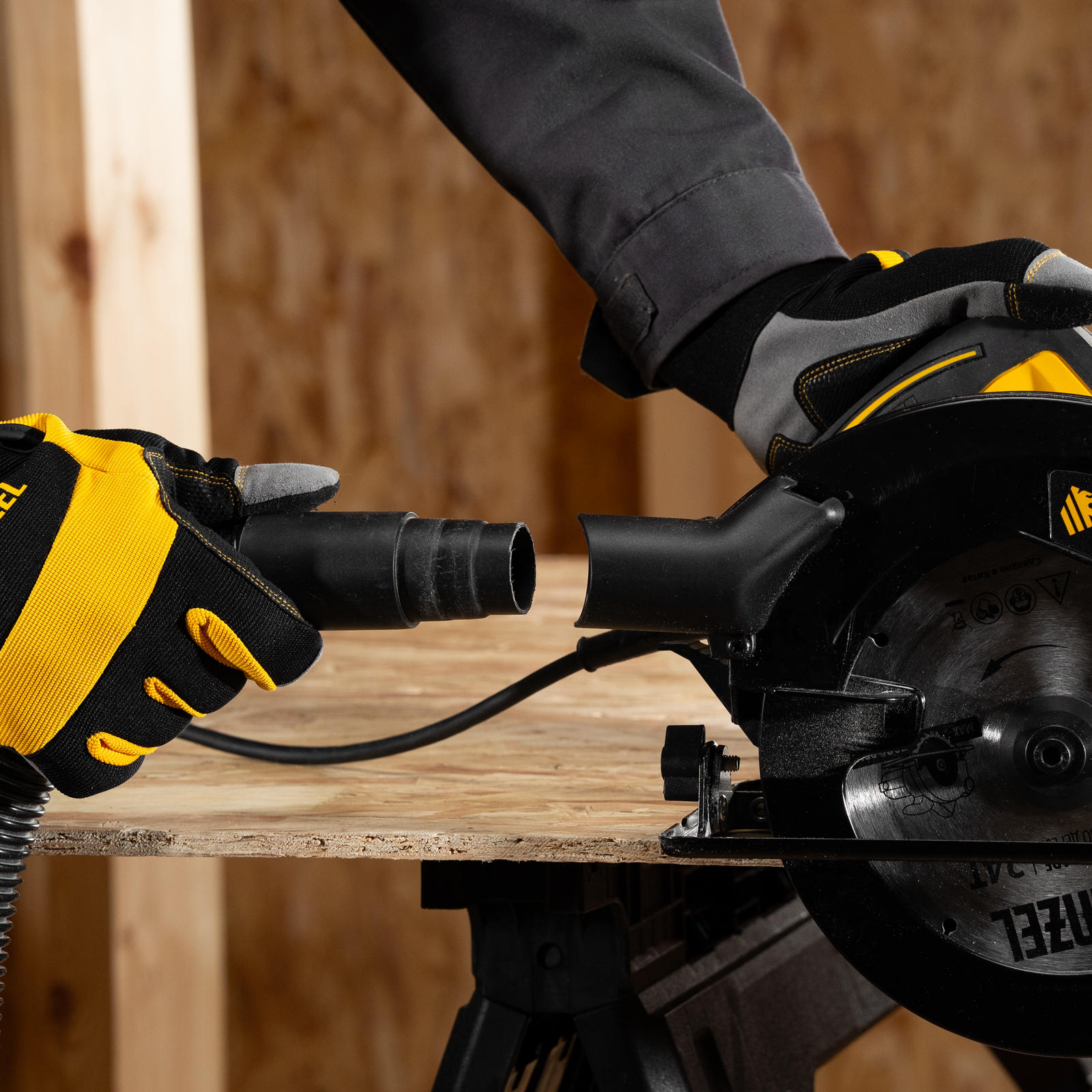 - Эффективное удаление опилок — конструкцией предусмотрен патрубок для подключения пылесоса (внешний 39 мм, внутренний 35 мм).