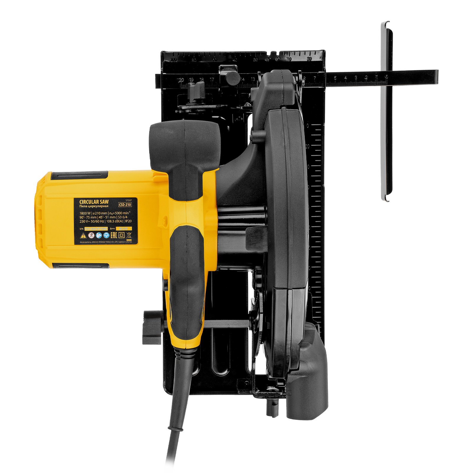 Циркулярная пила Denzel CSD-210 27307 мощностью 1800 Вт используется для продольного и поперечного распиливания древесины. Совместима с пильными дисками диаметром 210 мм. Шарнирное крепление режущего узла позволяет регулировать глубину пропила, а также угол наклона в диапазоне 0-45°. Максимальная глубина пропила под углом 90° составляет 75 мм, под углом 45° — 51 мм, быстрая регулировка глубины пропила повышает эффективность работы. Пила оптимальна для бытового использования.
