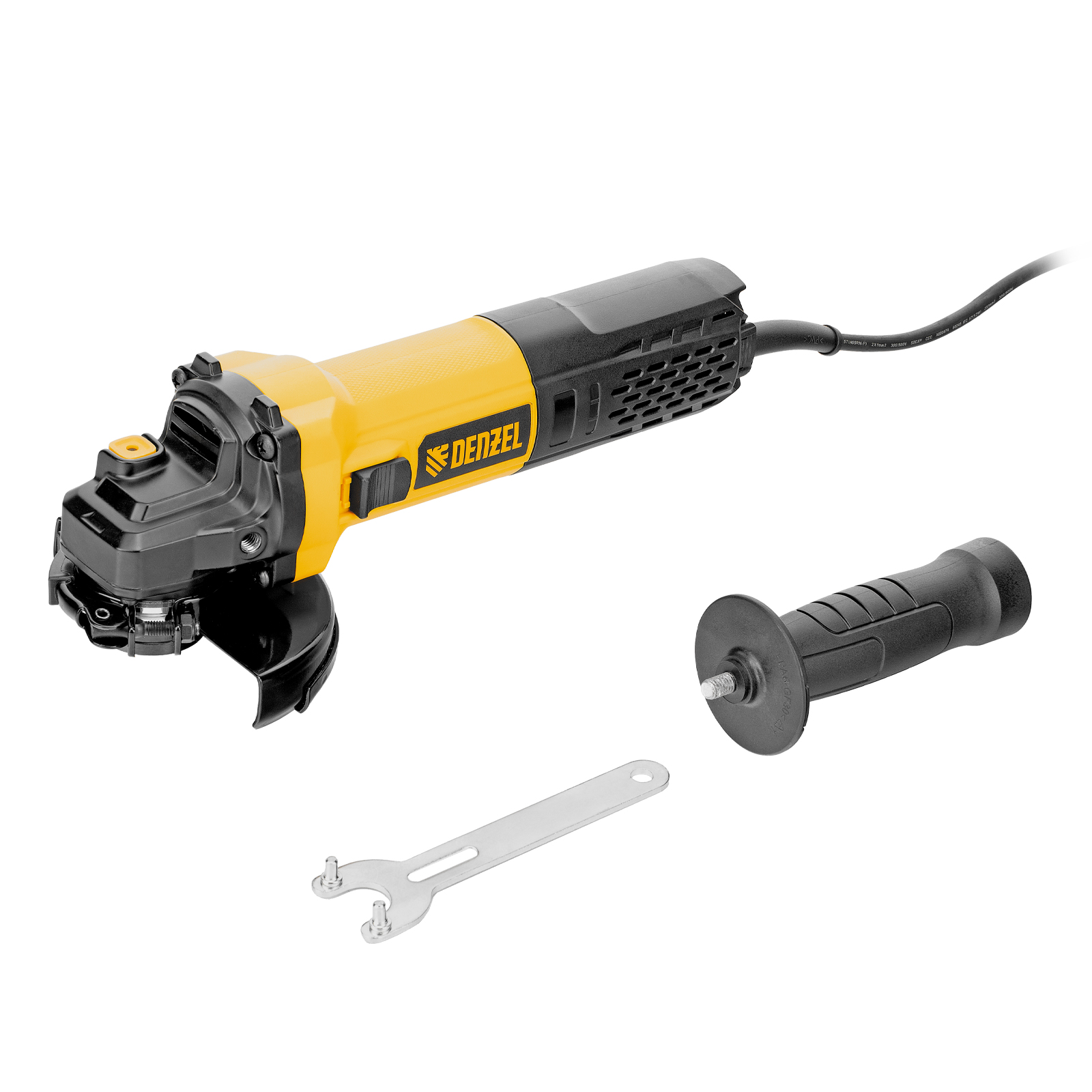 - Все необходимое в комплекте — УШМ поставляется с боковой рукояткой, защитным кожухом, ключом для фиксации оснастки и запасными угольными щетками.