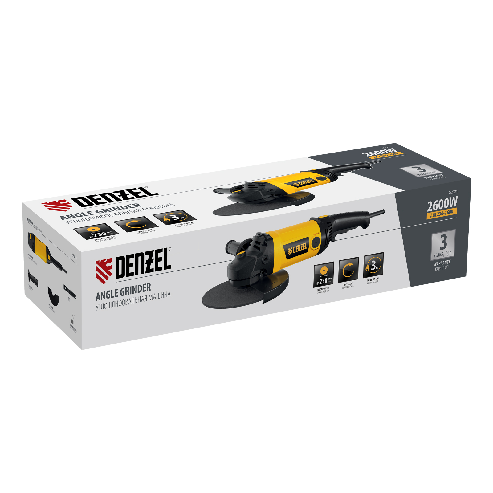 Угловая шлифовальная машина Denzel AGL230-2600 26921 мощностью 2600 Вт совместима с оснасткой диаметром 230 мм и имеет частоту вращения шпинделя 6600 об/мин. Предназначена для обработки металлических заготовок при помощи шлифовальных и отрезных кругов, а также проволочных щеток. Благодаря функции плавного пуска машина включается без рывка и перегрузки электросети. Эффективная система пылезащиты продлевает срок службы инструмента. Углошлифовальная машина оптимальна для выполнения бытовых работ.