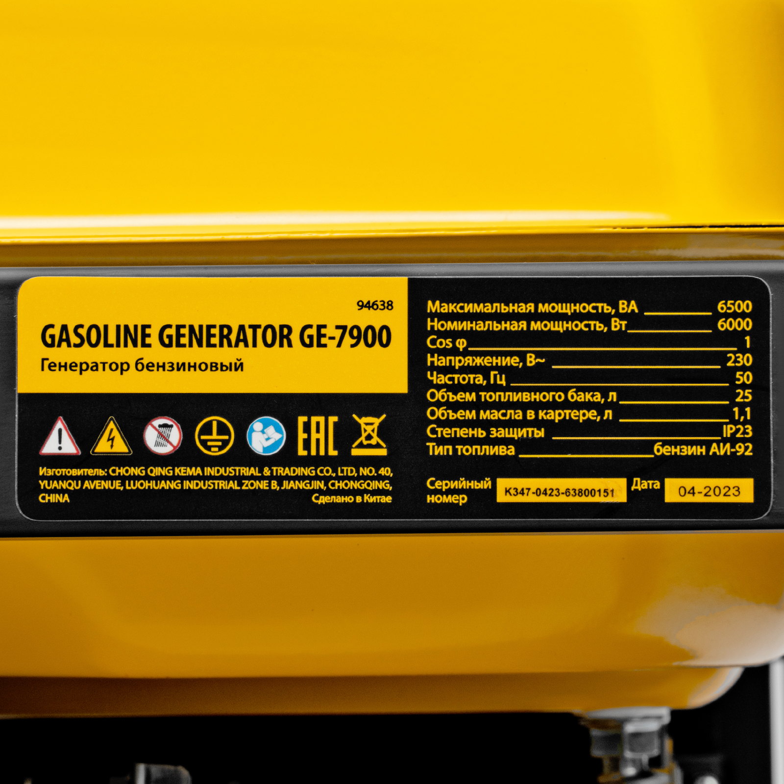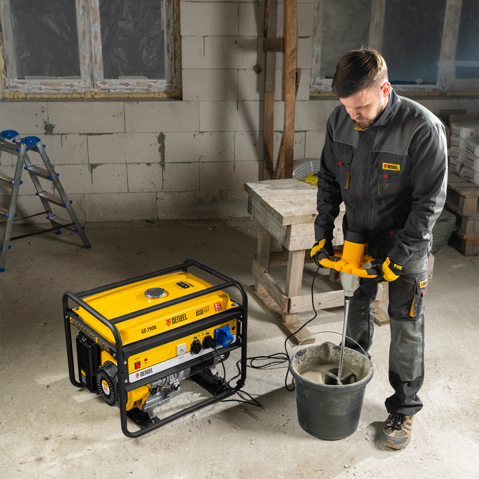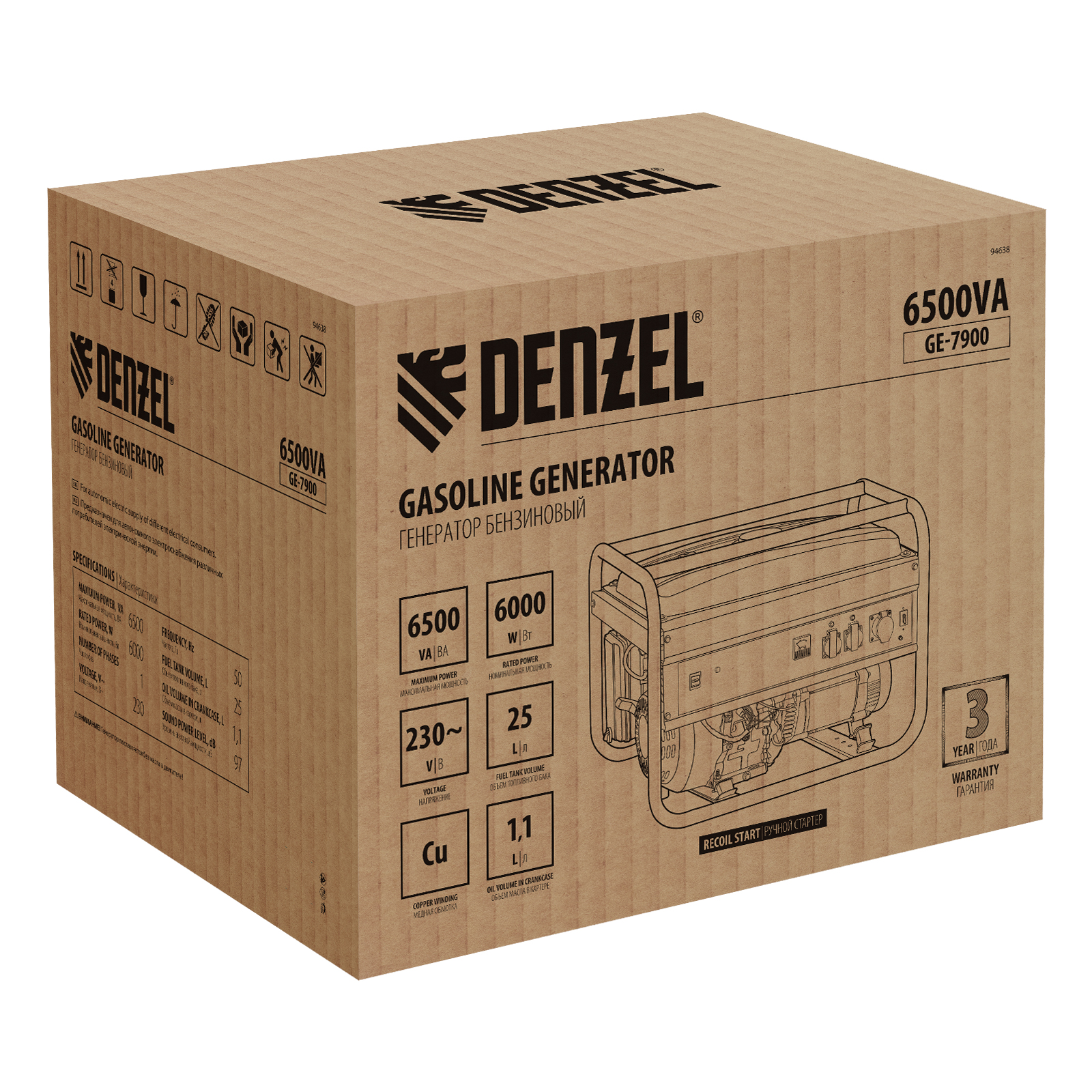 Генератор Denzel GE 7900 94638, 220 В / 50 Гц, мощностью 6,5 кВт, с ручным стартом и объемом бака 25 л, выдерживает большие нагрузки и подходит для питания мощного оборудования на даче, строительной площадке, в торговой точке. Генератор оснащен 3 розетками, одна из которых силовая, что позволяет подключать промышленное оборудование. Полного бака хватает на 8,5 ч работы без дозаправки.
