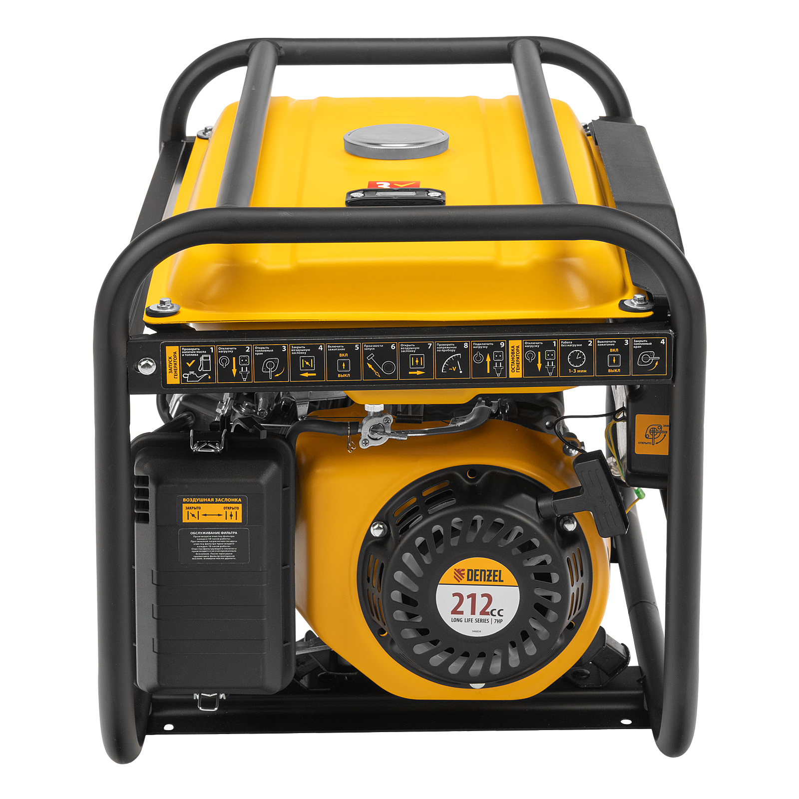 - Долгое функционирование — благодаря увеличенному бензобаку генератор способен работать более 12 часов без дозаправки.