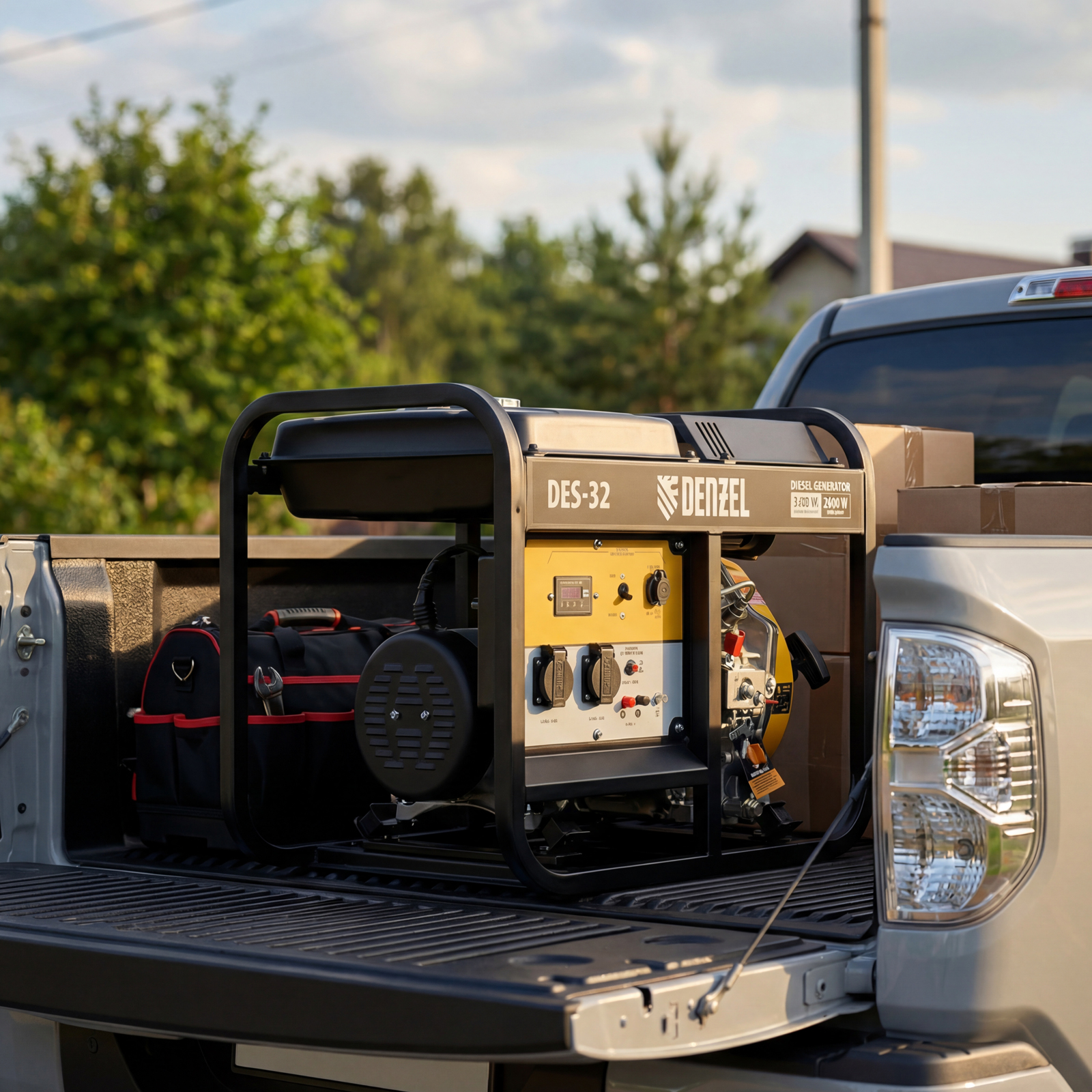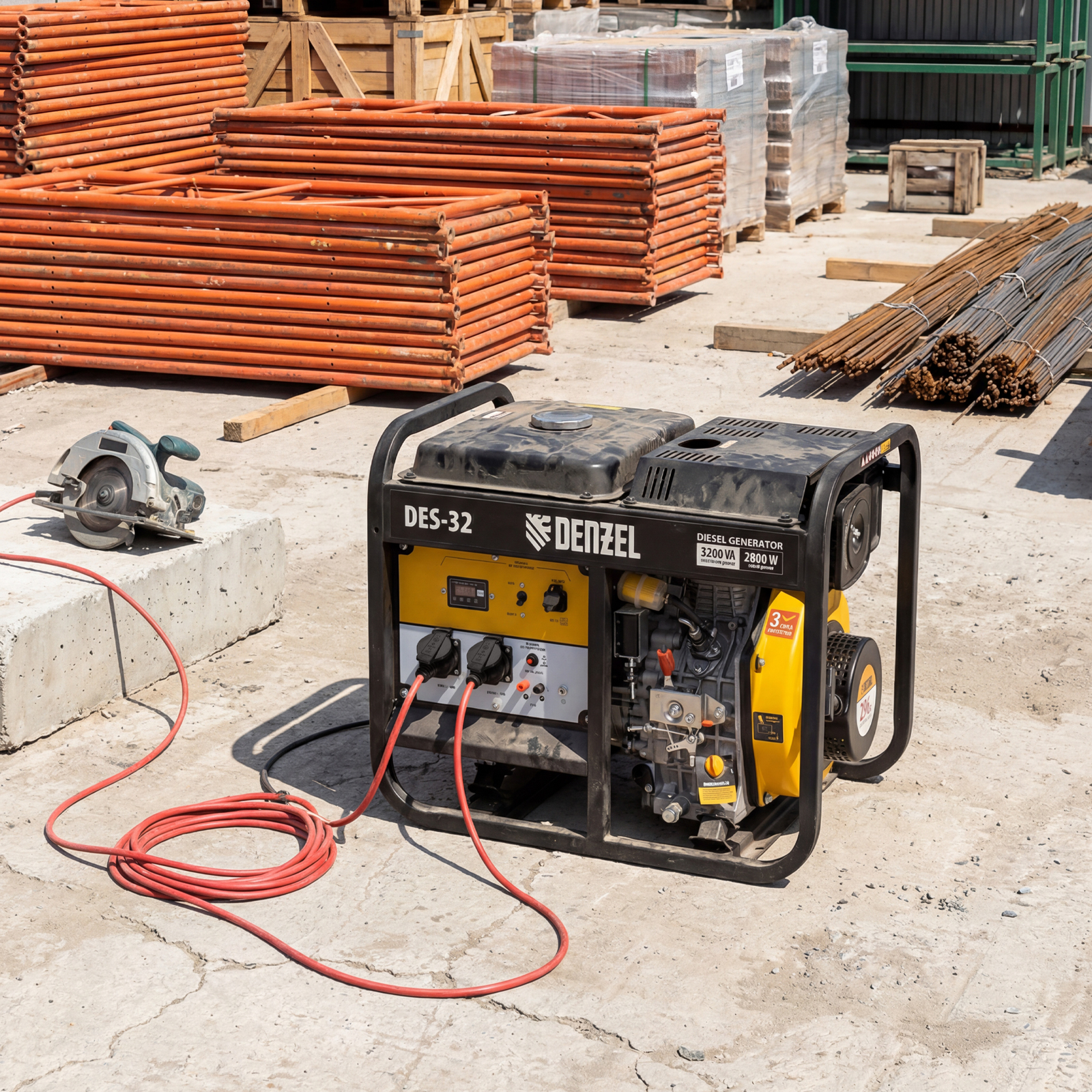 Генератор дизельный Denzel DES-32 94411 с объемом топливного бака 11 л, с ручным стартером, имеет максимальную выходную мощность 3,2 кВт и поддерживает напряжение в сети 230 В. Используется для снабжения энергией потребителей однофазного тока (осветительных приборов, бытовой техники, электроинструмента) при отсутствии доступа к стационарному источнику питания. Для подключения электроприборов служат 2 розетки 230 В/16 А. Клеммы постоянного тока 12 В позволяют заряжать автомобильные аккумуляторы, а двойной выход USB 5 В предназначен для подключения мобильных устройств (планшетов, смартфонов и т. д.). Генератор пригодится в загородном доме.