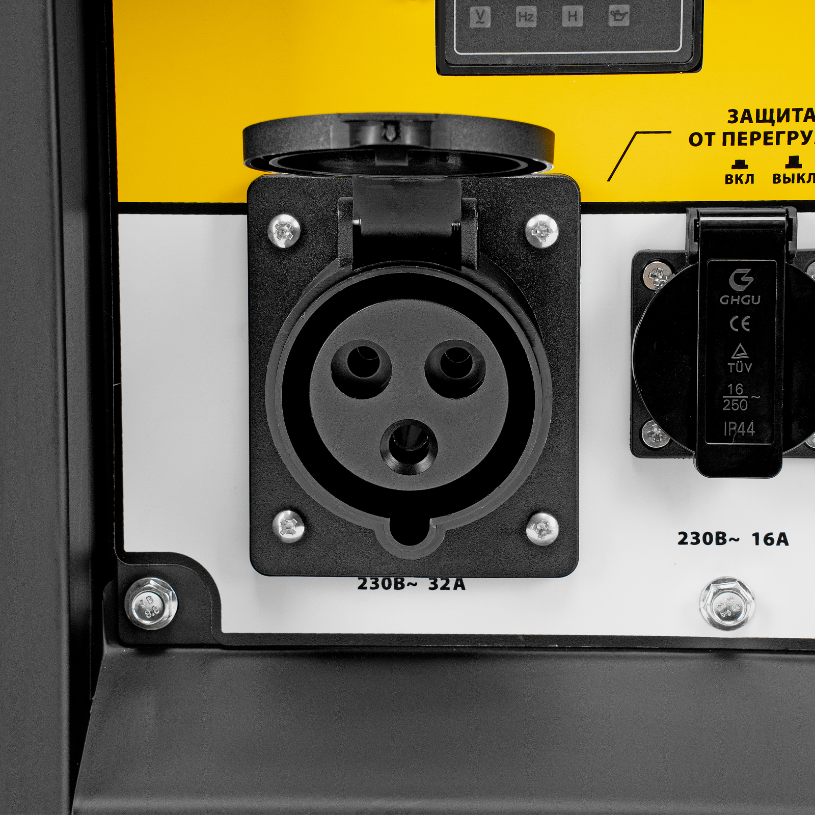 - Степень защиты IP23 — внутренние компоненты изолированы от сильных водяных струй и крупных частиц размером не менее 12,5 мм.