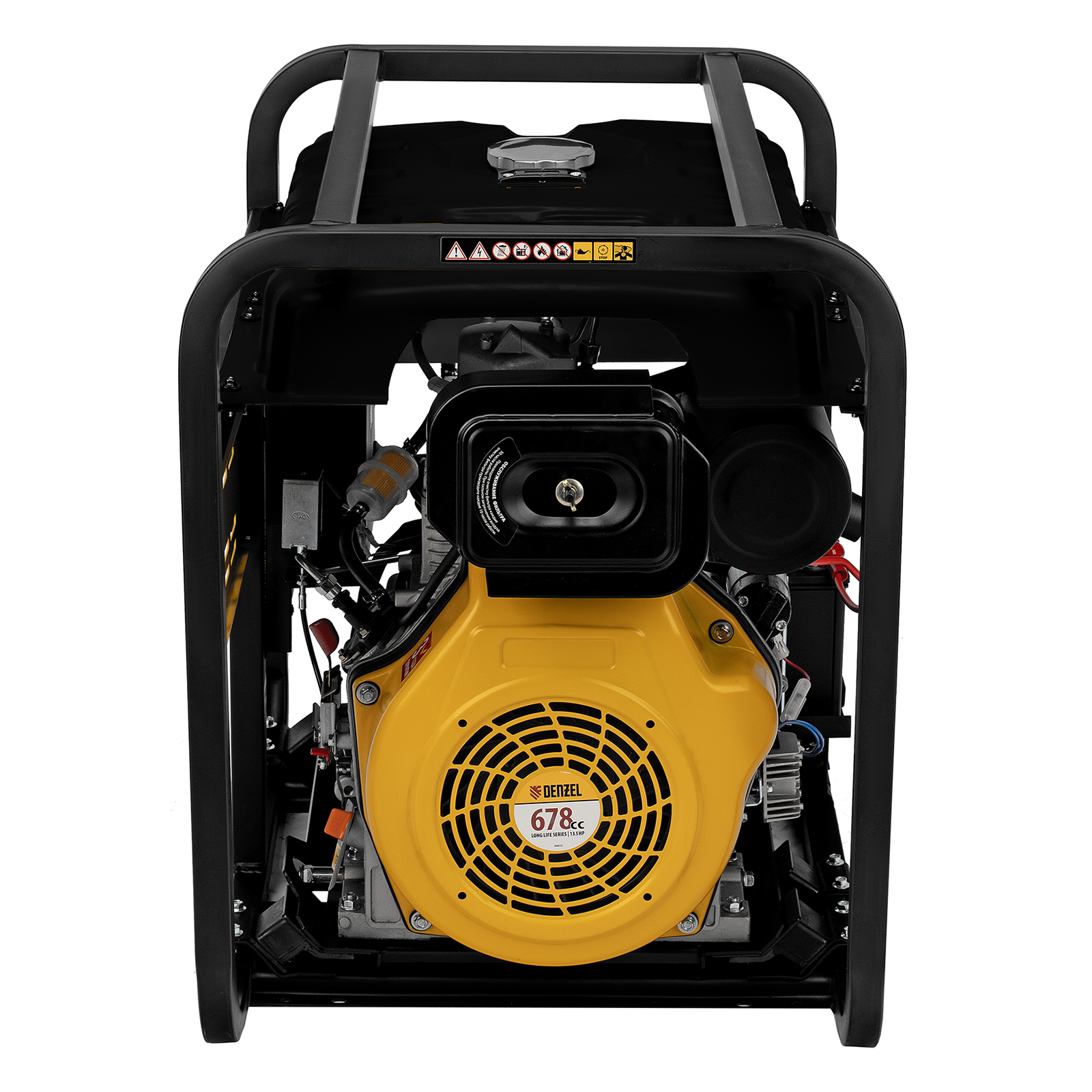 Генератор дизельный Denzel DES-85E 94415 с объемом топливного бака 16 л, с электростартером, имеет максимальную выходную мощность 8,5 кВт и поддерживает напряжение в сети 230 В. Используется для снабжения энергией потребителей однофазного тока (осветительных приборов, бытовой техники, электроинструмента) при отсутствии доступа к стационарному источнику питания. Для подключения электроприборов служат 2 розетки 230 В/16 А. Силовые клеммы позволяют снять полную мощность. Клеммы постоянного тока 12 В позволяют заряжать автомобильные аккумуляторы, а двойной выход USB 5 В предназначен для подключения мобильных устройств (планшетов, смартфонов и т. д.). Генератор пригодится в загородном доме.