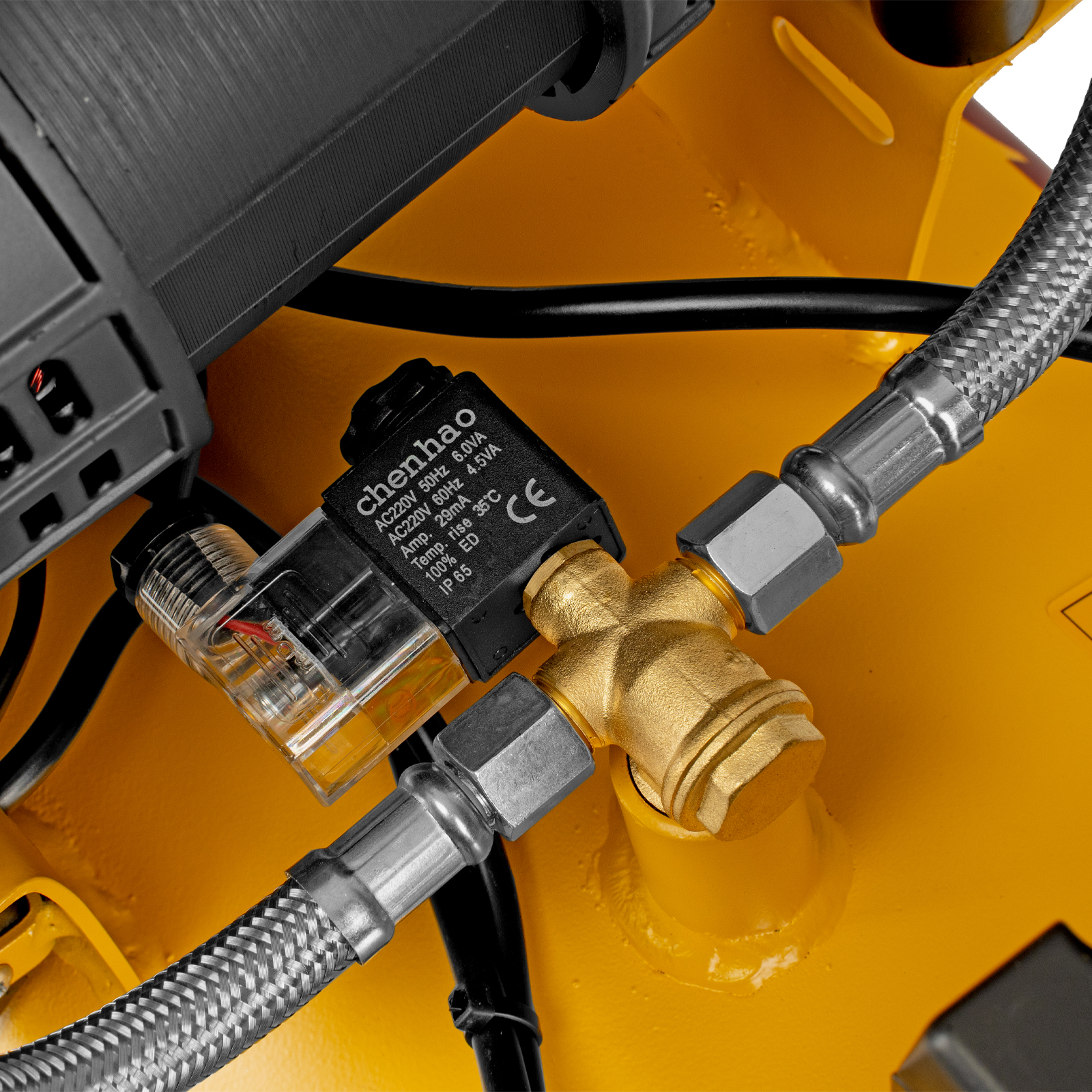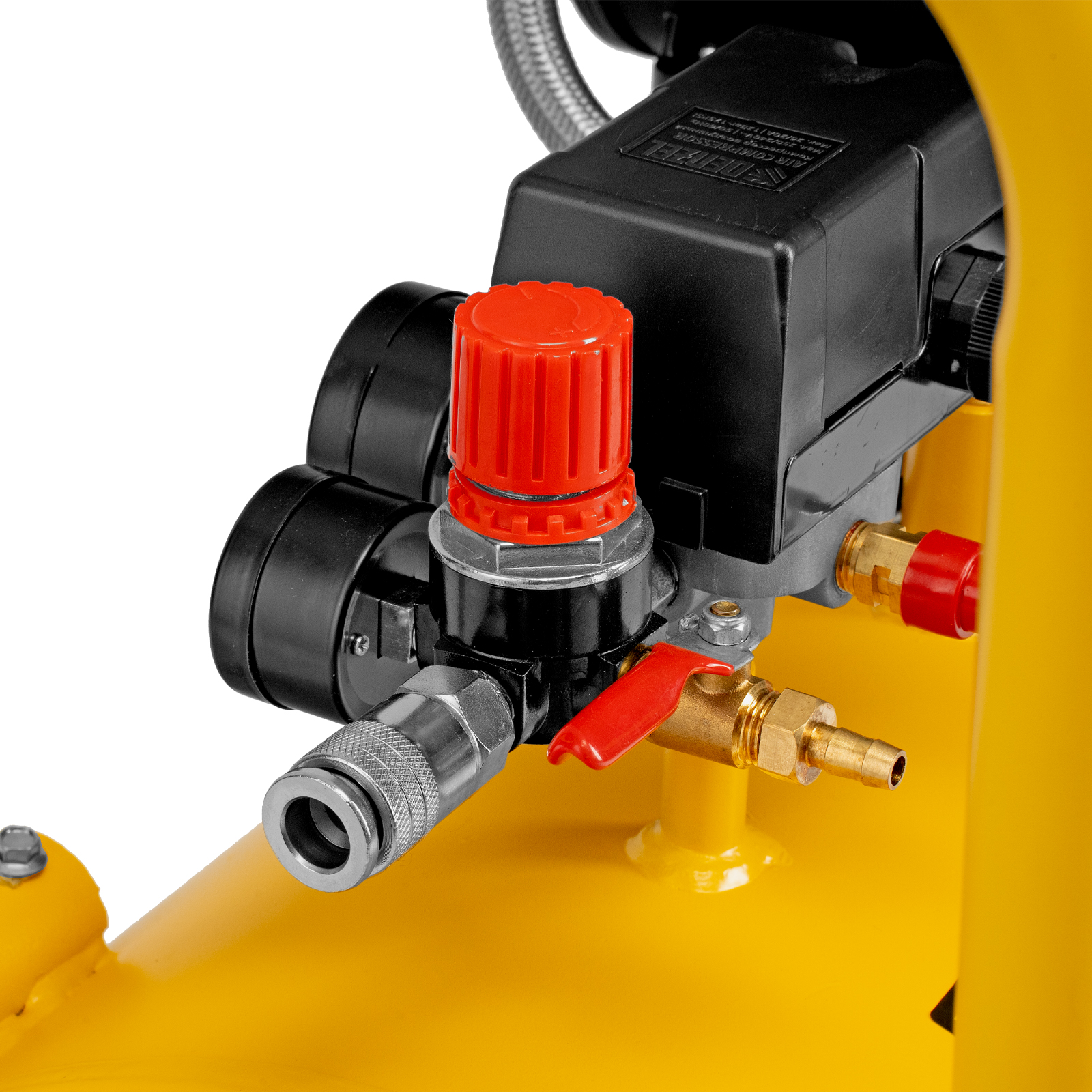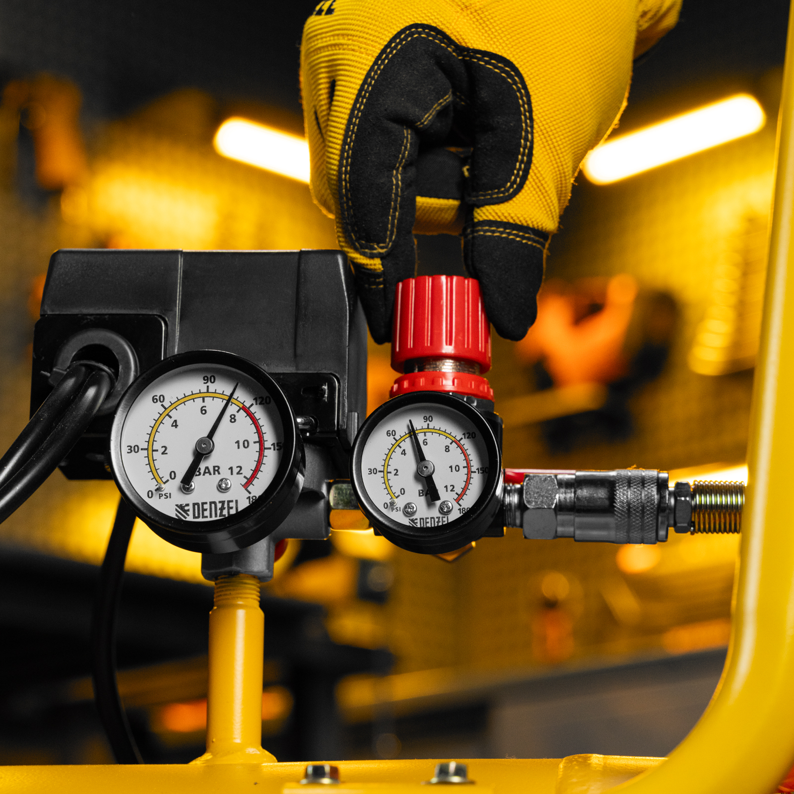 - Удобный контроль работы — компрессор оснащен 2 манометрами для отслеживания давления в ресивере и пневмолинии
