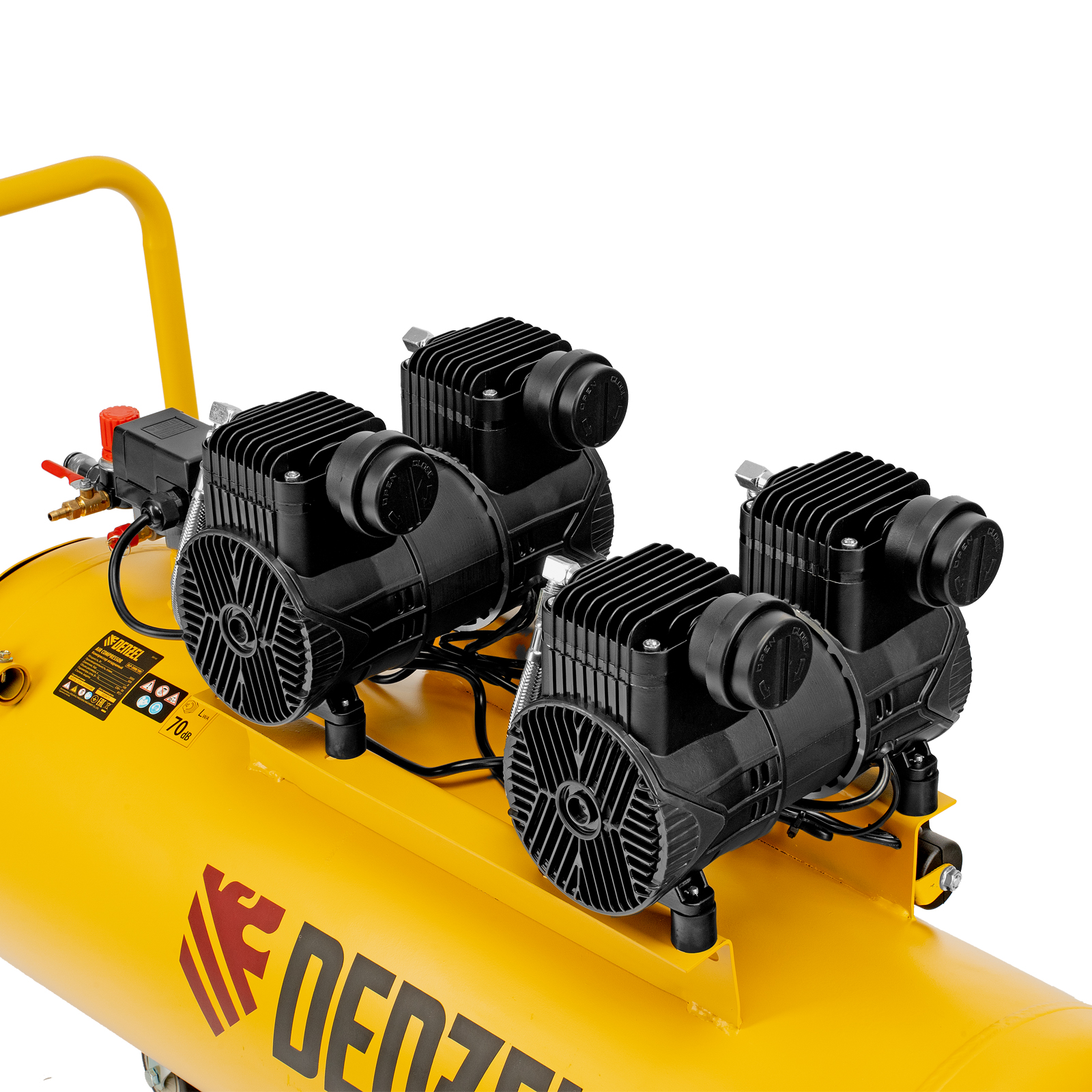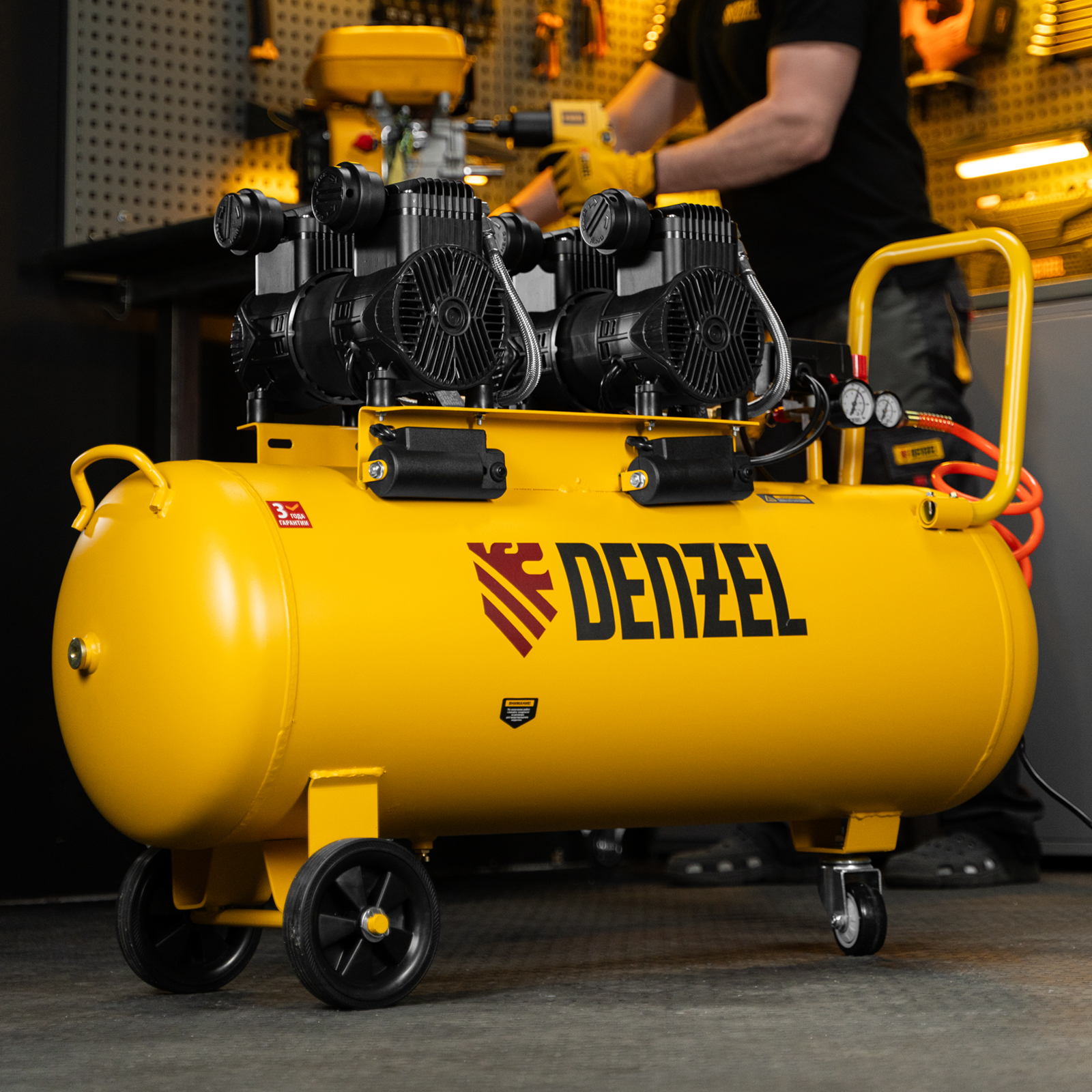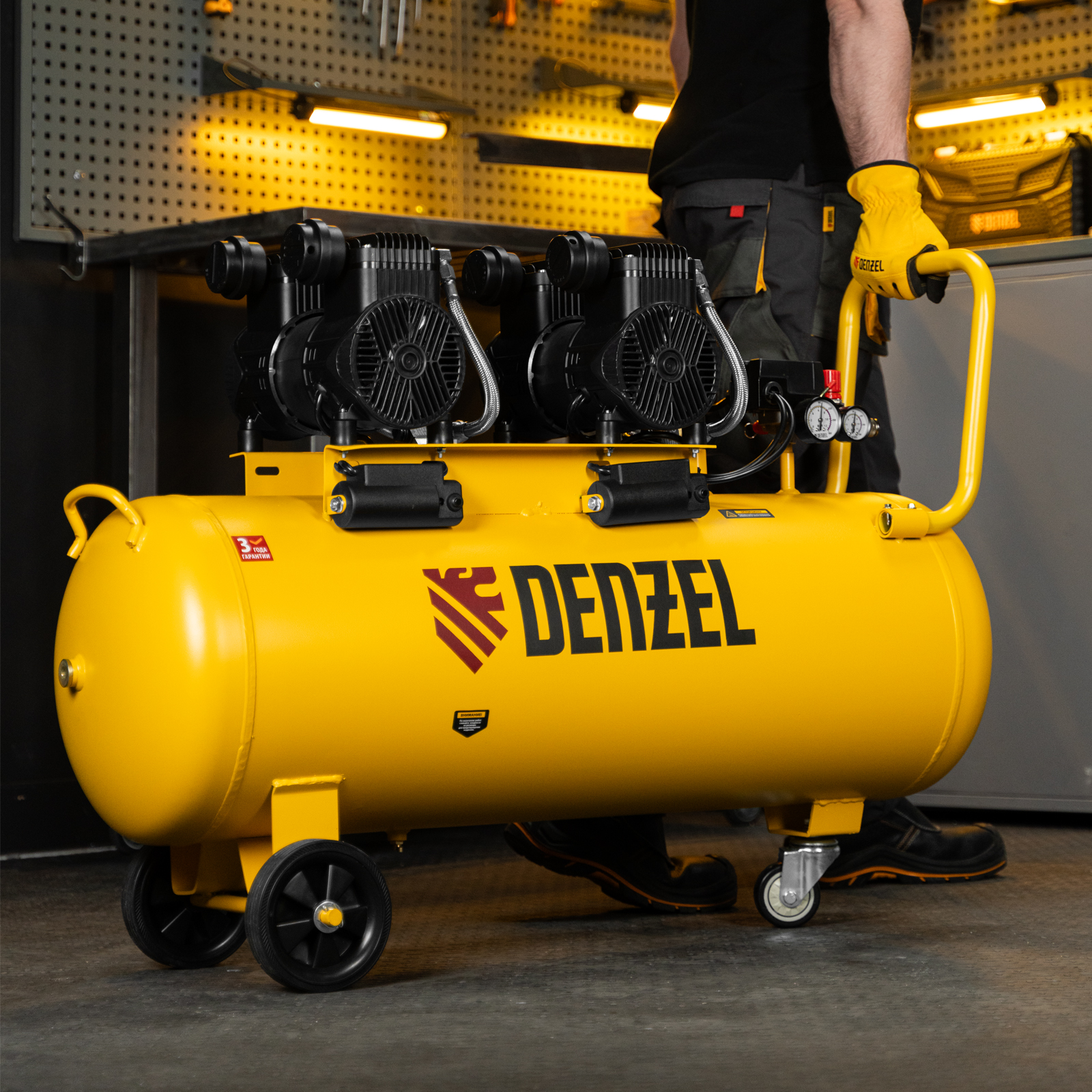 Безмасляный малошумный компрессор Denzel DLP-3000/100 58145 мощностью 3 кВт (2 x 1,5 кВт) и производительностью 500 л/мин, с ресивером объемом 100 л, оснащен двигателем со скоростью вращения 2850 об/мин. Предназначен для обеспечения пневмоинструмента сжатым воздухом. Для работы компрессора не требуется масло, поэтому он подходит для проведения покрасочных работ и продувки электронных компонентов. Прямой привод обеспечивает максимально эффективную работу и высокую производительность. Благодаря низкому уровню шума эксплуатация компрессора не вызывает ощущение дискомфорта.
