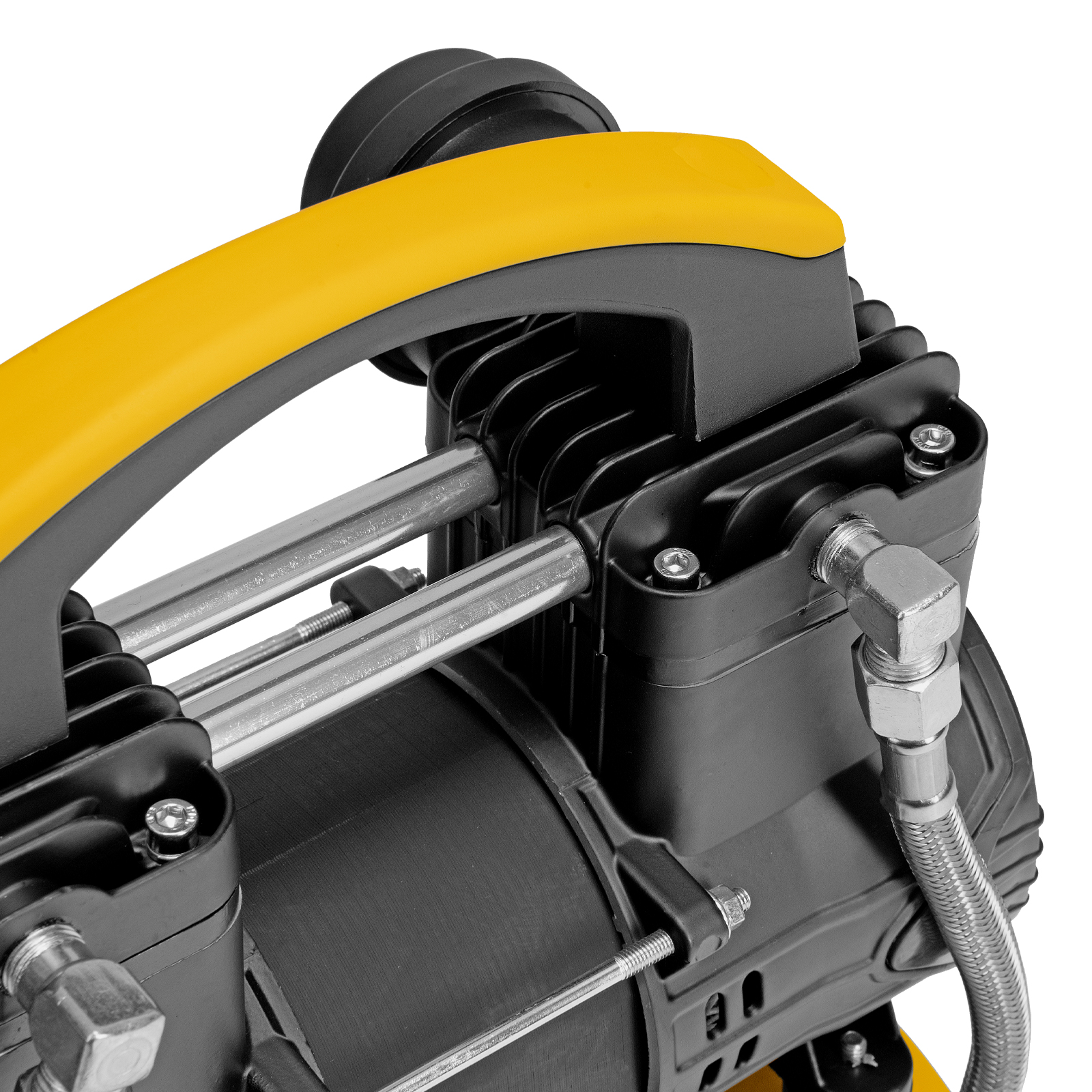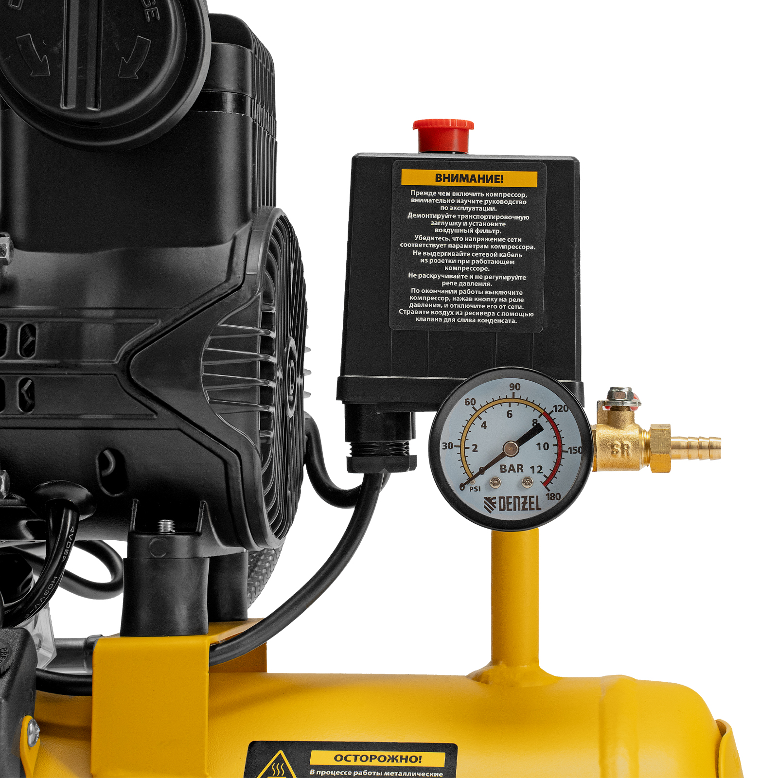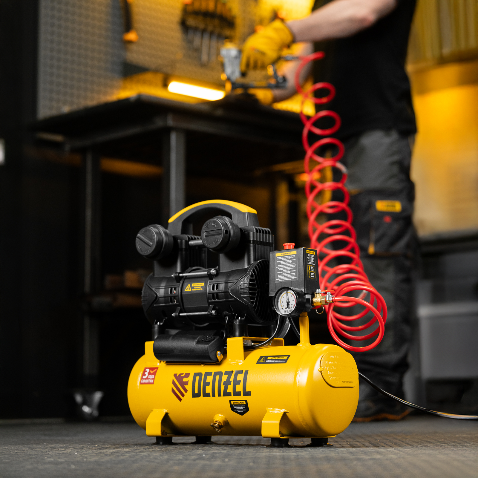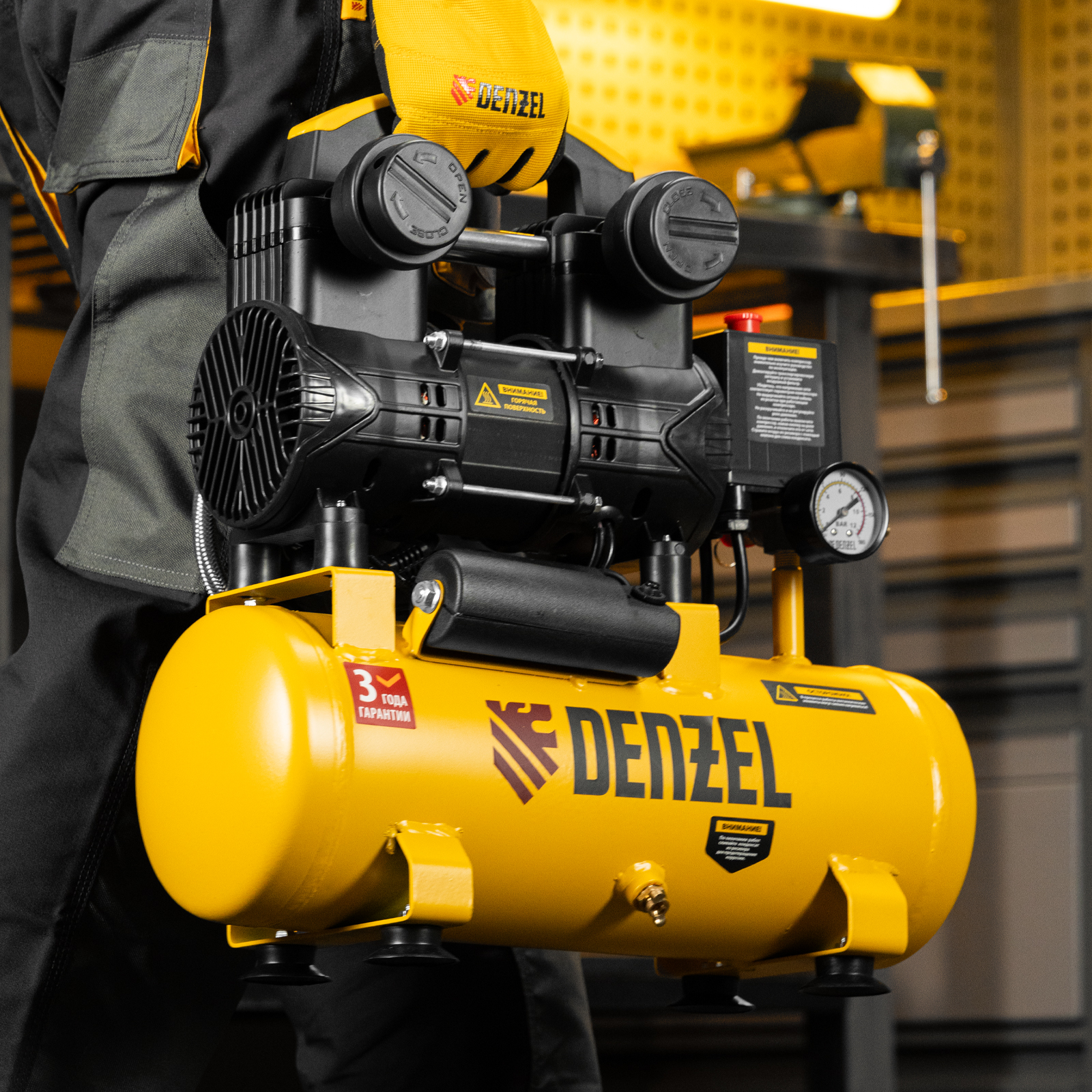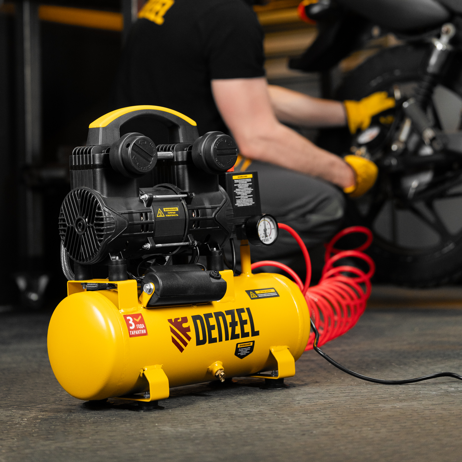 Безмасляный малошумный компрессор Denzel DLP-950/10 58141 мощностью 950 Вт и производительностью 170 л/мин, с ресивером объемом 10 л, оснащен двигателем со скоростью вращения 2850 об/мин. Предназначен для обеспечения пневмоинструмента сжатым воздухом. Для работы компрессора не требуется масло, поэтому он подходит для проведения покрасочных работ и продувки электронных компонентов. Прямой привод обеспечивает максимально эффективную работу и высокую производительность. Благодаря низкому уровню шума эксплуатация компрессора не вызывает ощущение дискомфорта. Для подключения шланга пневмомагистрали или пневматического инструмента используется штуцер елка.