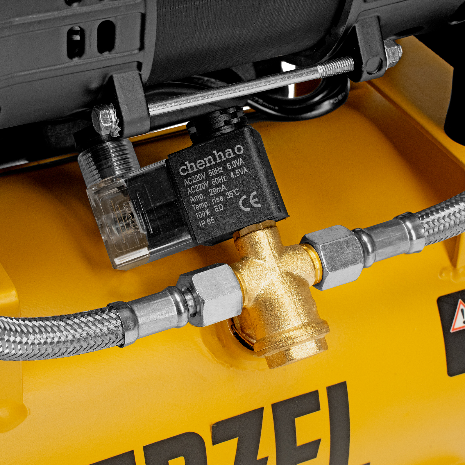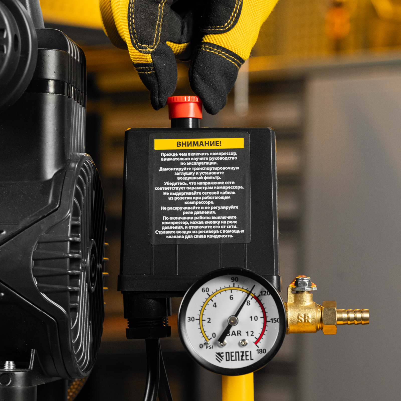 - Безопасность — в случае превышения максимального давления в ресивере срабатывает предохранительный клапан, что позволяет избежать аварийных ситуаций.