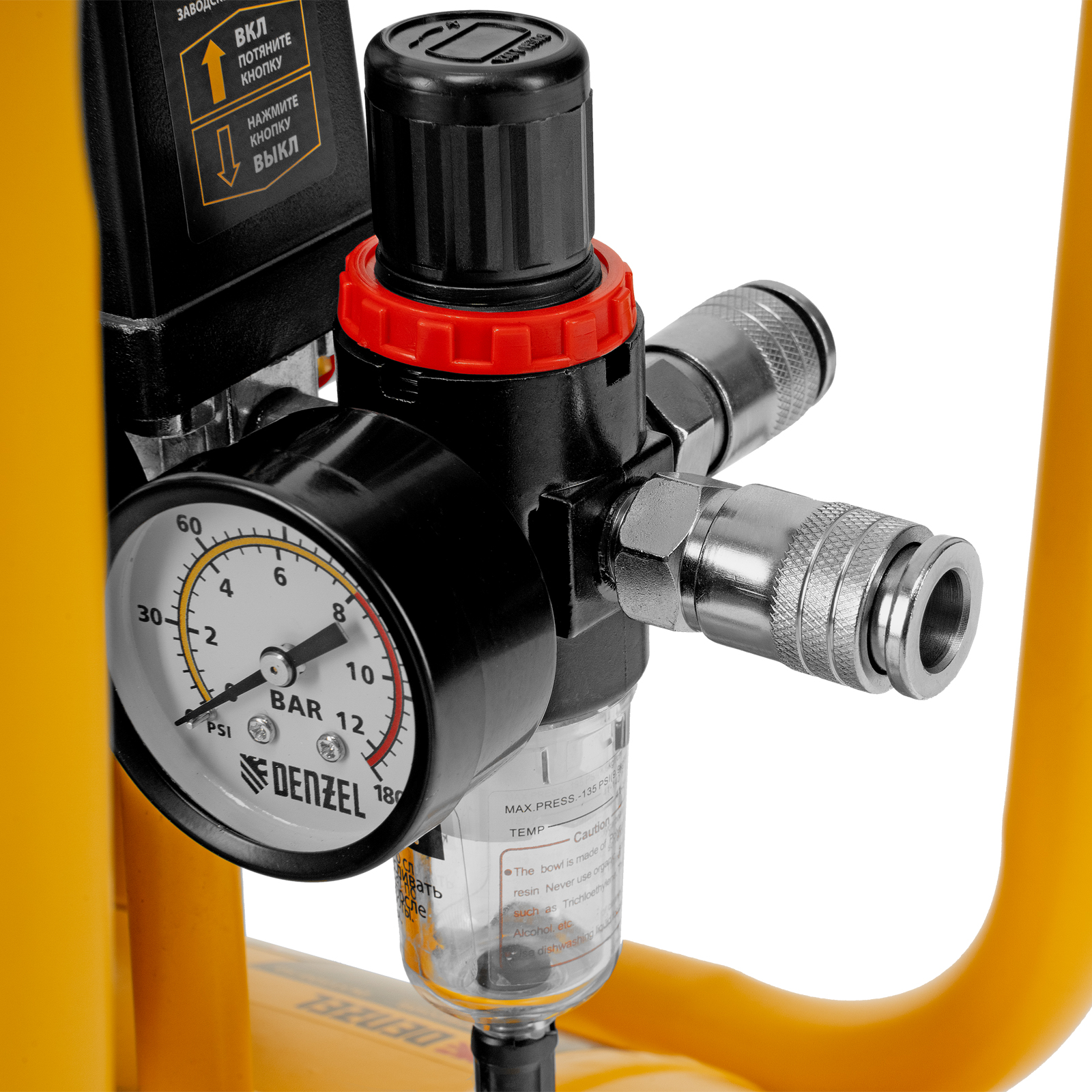 - Высокое качество очистки воздуха — фильтры надежно задерживают посторонние частицы, а влагоотделитель препятствует попаданию конденсата в пневмомагистраль.