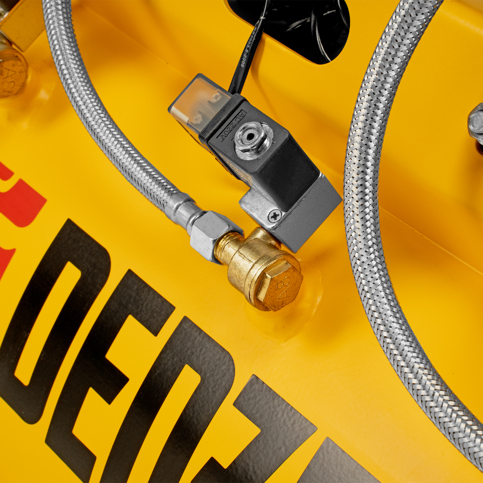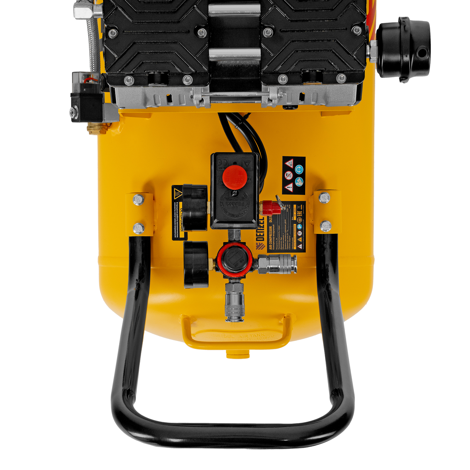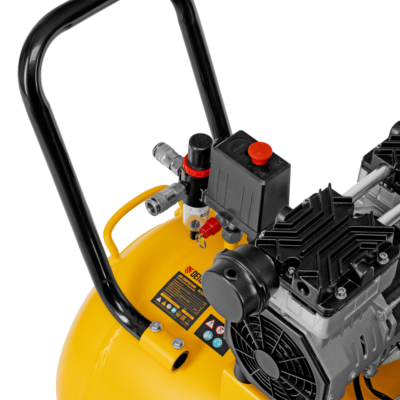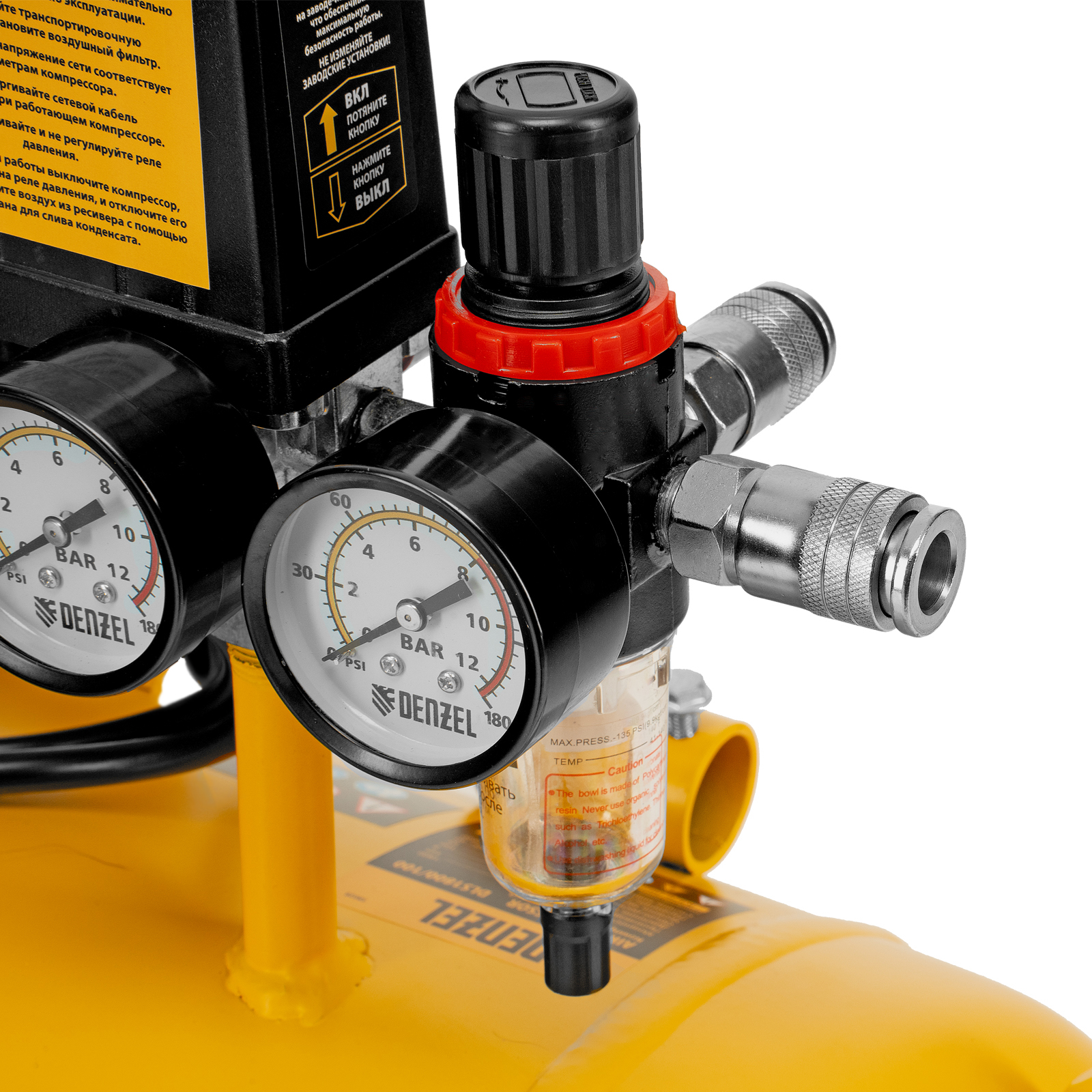 Безмасляный малошумный компрессор Denzel DLS 2550/100 58029 с блоком управления, мощностью 2250 (3 х 750) Вт, объемом ресивера 100 л и производительностью 410 л/мин предназначен для обеспечения пневмоинструмента сжатым воздухом, подаваемым под давлением до 8 бар. Позволяет подключить пневматический заклепочник, дрель, шлифмашину и т.д. Оптимален для работы с краскопультом и для продувки электронных компонентов, т. к. в сжатом воздухе отсутствуют частицы масла. Компрессор пригодится в мастерской, гараже, на строительной площадке.