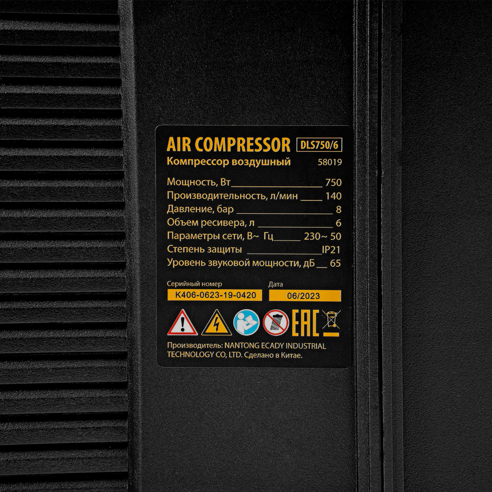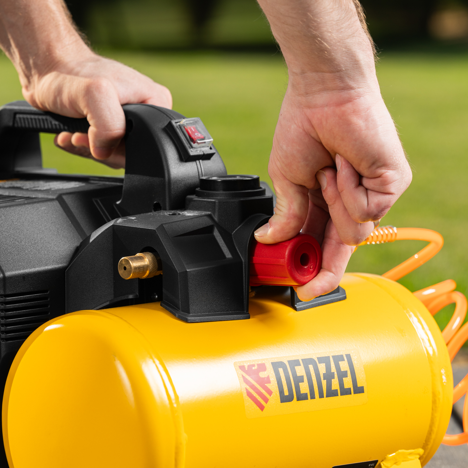 Компрессор безмасляный малошумный Denzel DLS750/6 58019 мощностью 750 Вт, с ресивером объемом 6 л, имеет производительность на входе 140 л/мин и предназначен для обеспечения пневмоинструмента сжатым воздухом. Оптимален для работы с краскораспылителем и продувочным пистолетом, т.к. воздух на выходе не содержит частиц масла. Рабочий узел закрыт сплошным кожухом, благодаря чему уровень шума во время работы не превышает 65 дБ. Компрессор можно использовать в жилом помещении и на дачном участке.
