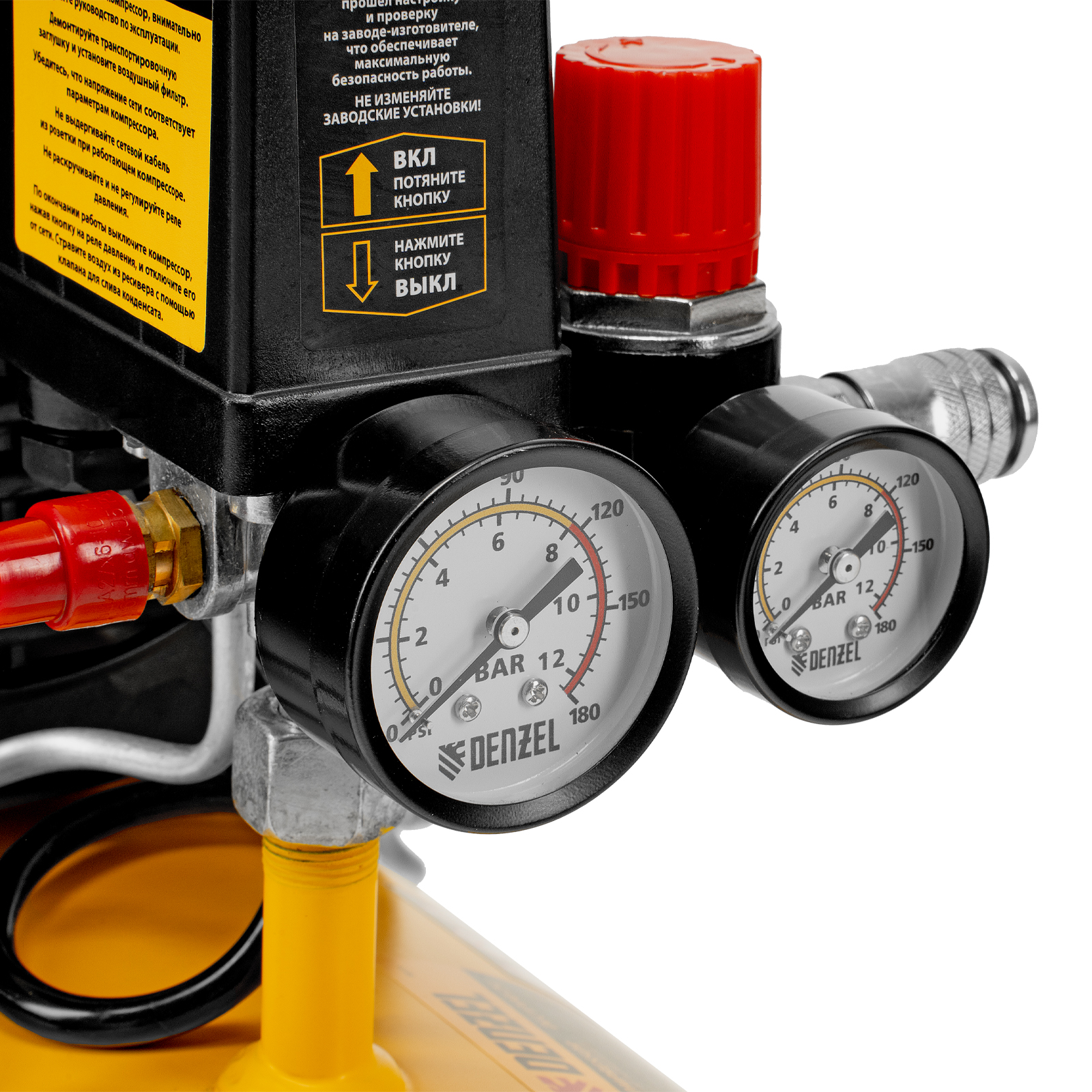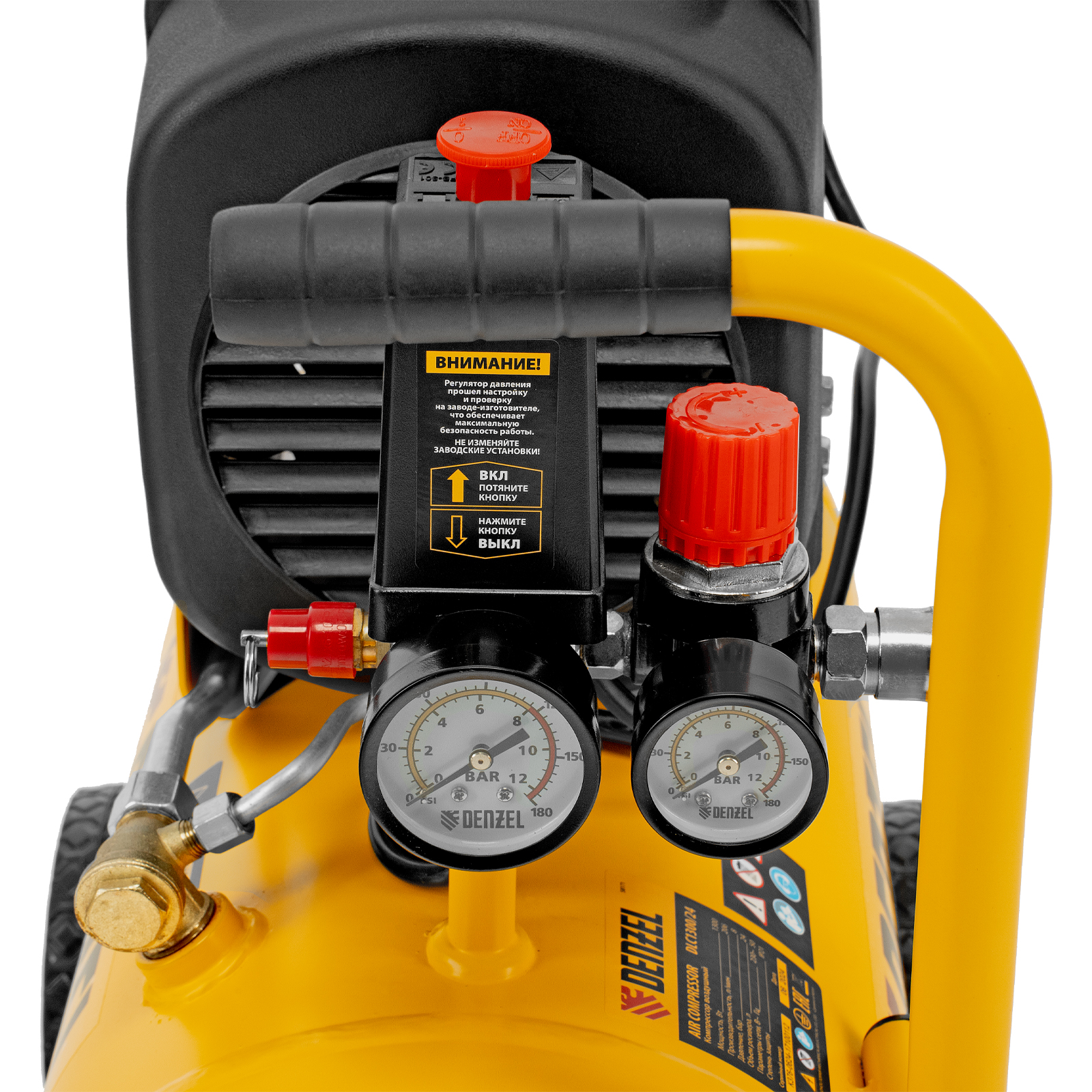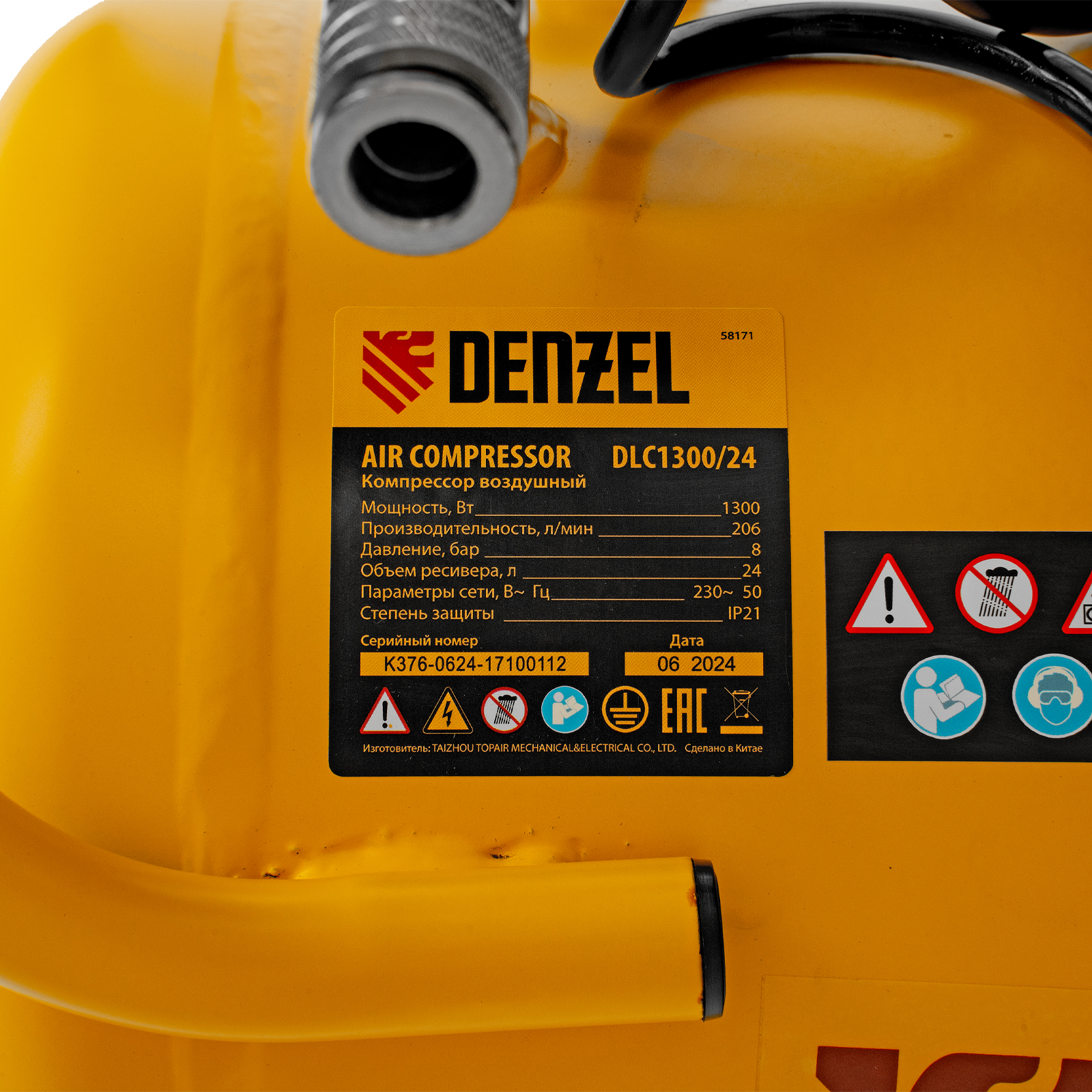Безмасляный воздушный компрессор Denzel DLC1300/24 58171 мощностью 1,3 кВт, с объемом ресивера 24 л и производительностью на входе 206 л/мин, обеспечивает на выходе чистый сжатый воздух без примесей масла, что позволяет использовать его при окрашивании, креплении паркета и вагонки, продувке электронной техники, накачке шин. Подходит для обеспечения длительной работы пневмоаэрографа, пневмогравера, пневмошуруповерта, пневмодрели и пневмонейлера, а также другого пневмоинструмента. Быстроразъемный коннектор Euro (Rapid) упрощает подключение пневмомагистрали.