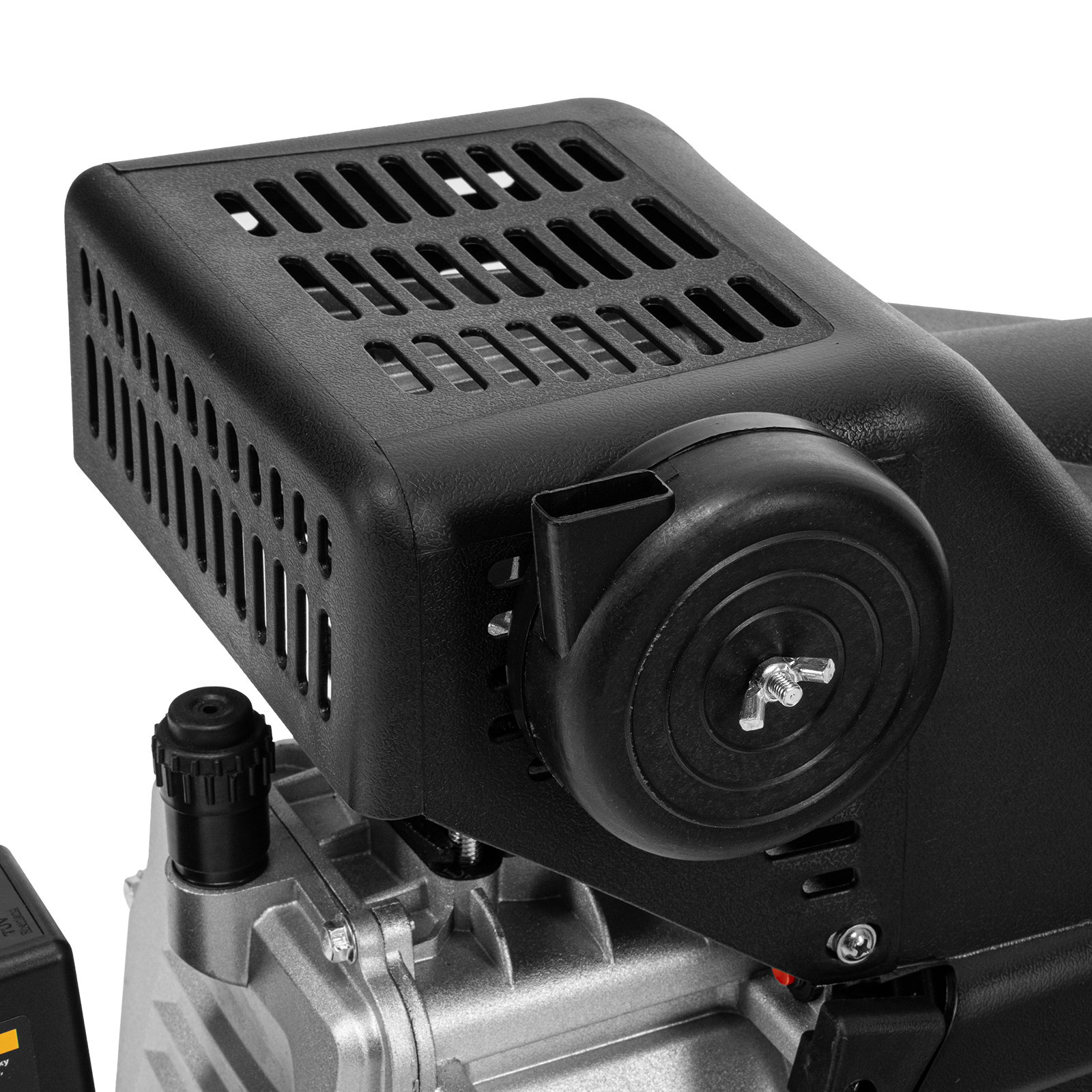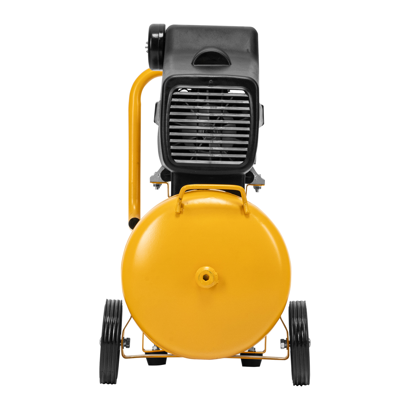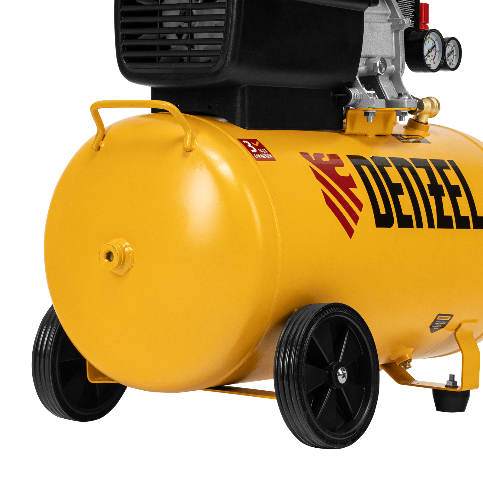 - Мобильность — ручка и колеса облегчают перемещение компрессора по рабочей площадке.