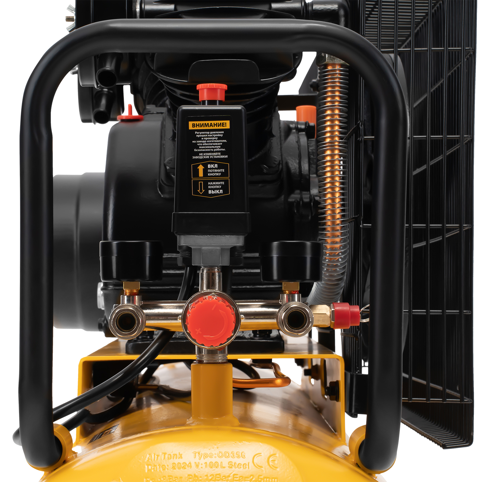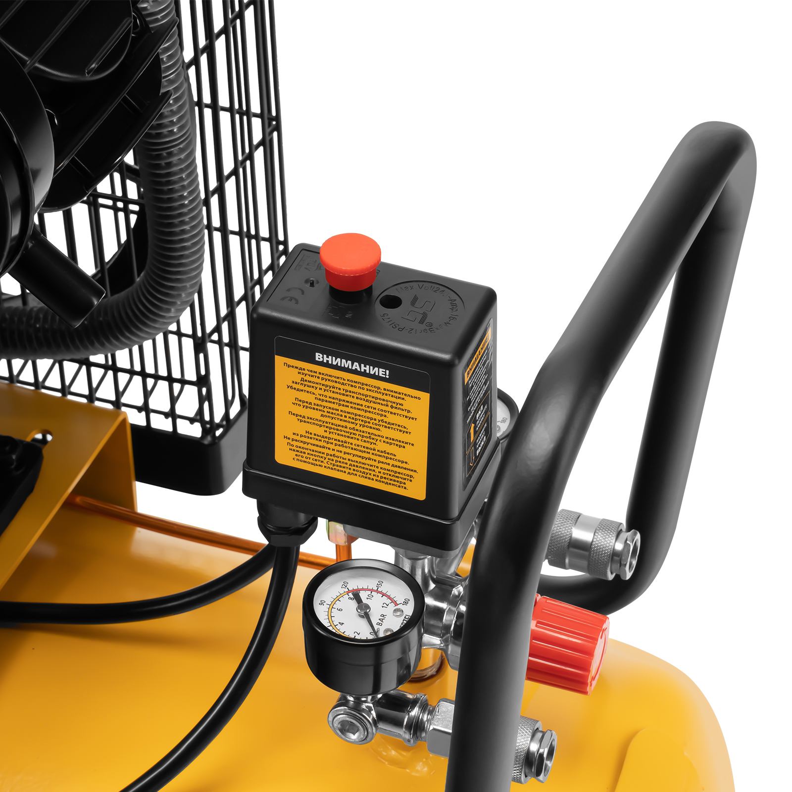 - Автоматизация работы — реле FBANG самостоятельно останавливает и повторно запускает двигатель для поддержания давления в диапазоне 6,5-8 бар.