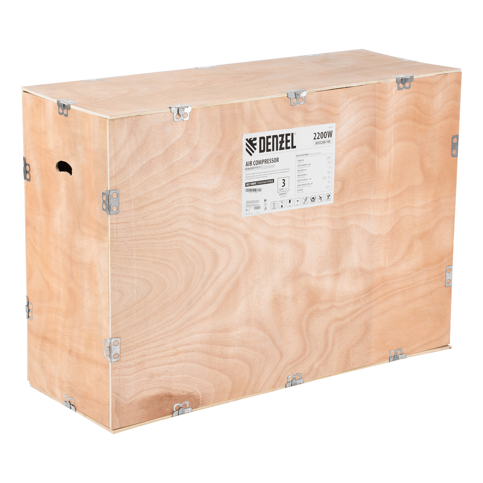 Компрессор Denzel BCV2200/100 58110 мощностью 2,2 кВт и производительностью 370 л/мин, с ресивером на 100 литров, предназначен для работ в мастерских, автосервисах, на производствах или в быту. К нему можно подключать сразу 2 пневмоинструмента, например, дрель, долото, заклепочный или продувочный пистолет, краскопульт, очиститель окалины и пр.,Высокий ресурс чугунных цилиндров, надежная ременная передача и объемный ресивер на 100 л позволяют использовать компрессор длительное время. При необходимости можно напрямую подключать второй накопитель или пневмомагистраль через дополнительный порт.