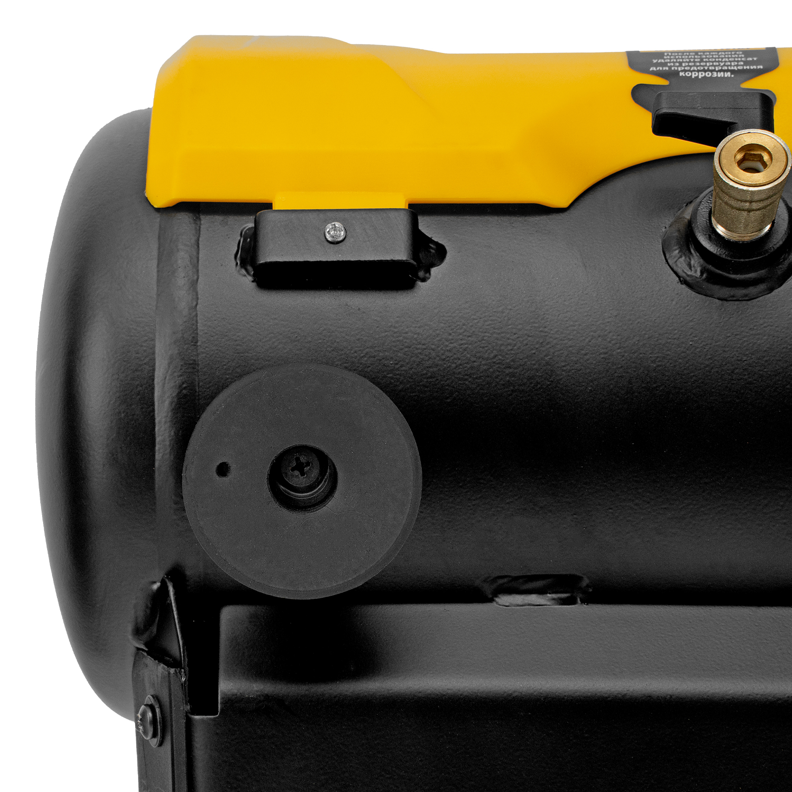 - Предохранительный клапан — изделие надежно защищено от превышения давления в ресивере, что упрощает работу и продлевает срок службы.