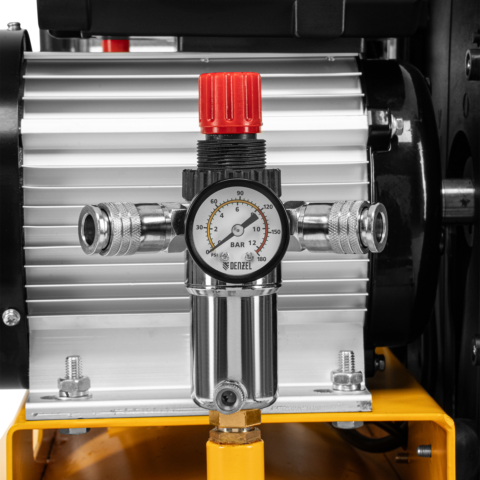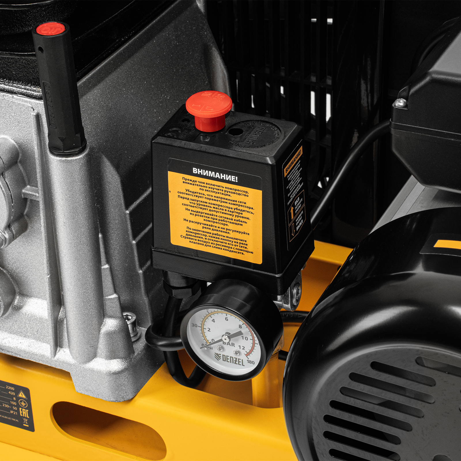 Воздушный компрессор Denzel BCI 2200/100 58116 с ременным приводом, мощностью 2,2 кВт и производительностью 420 л/мин, с ресивером объемом 100 л, — источник сжатого воздуха для работы с пневмогайковертом, пневмодрелью, краскопультом, углошлифовальной машиной или другим пневмоинструментом. Для подключения инструмента предусмотрено 2 быстросъемных коннектора Рапид (Евро). Специальный порт позволяет подключить напрямую дополнительный ресивер или пневмомагистраль. Компрессор будет полезен на строительной площадке и станции техобслуживания.