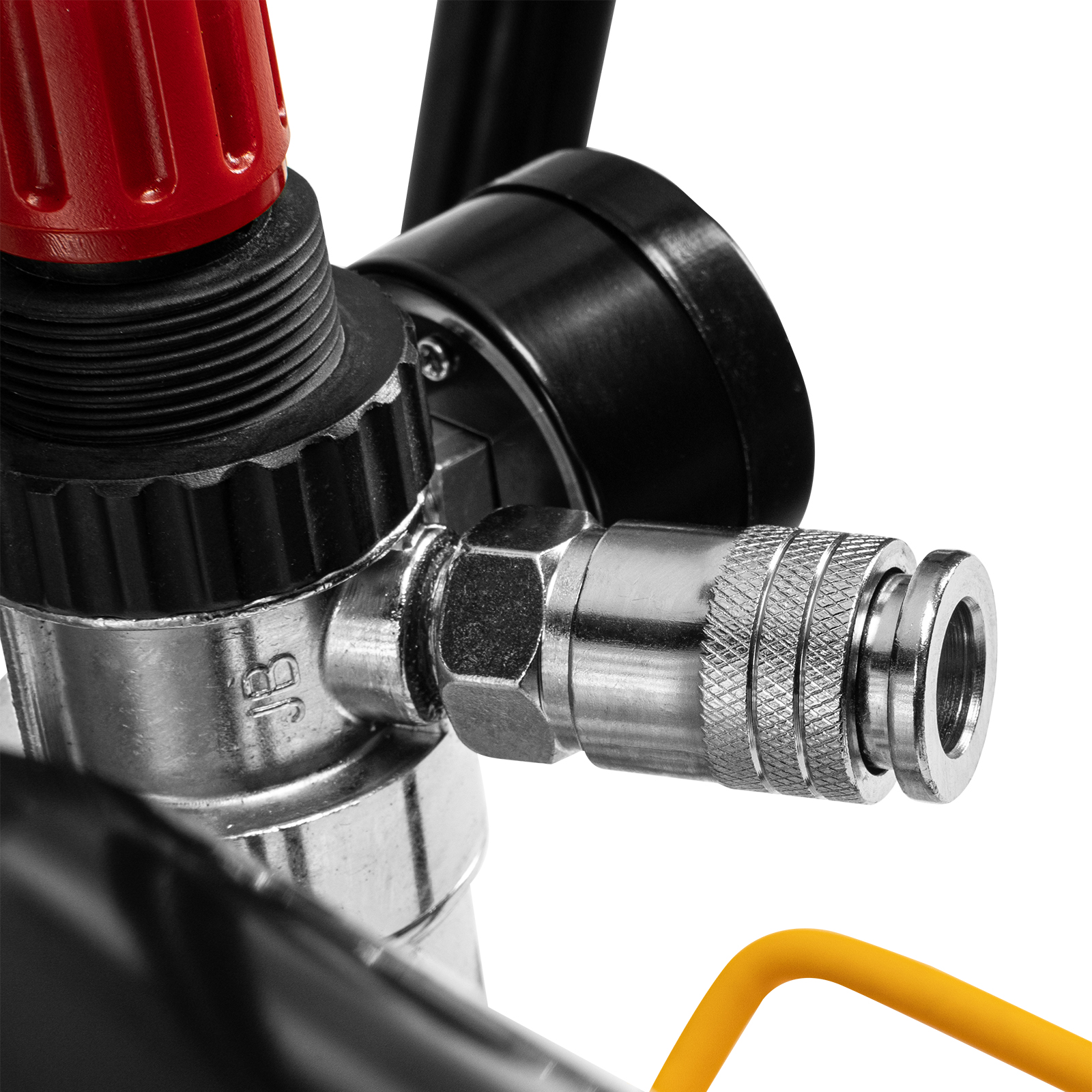 - Регулировка давления на выходе — можно установить оптимальное значение для подключения пневмоинструмента.
