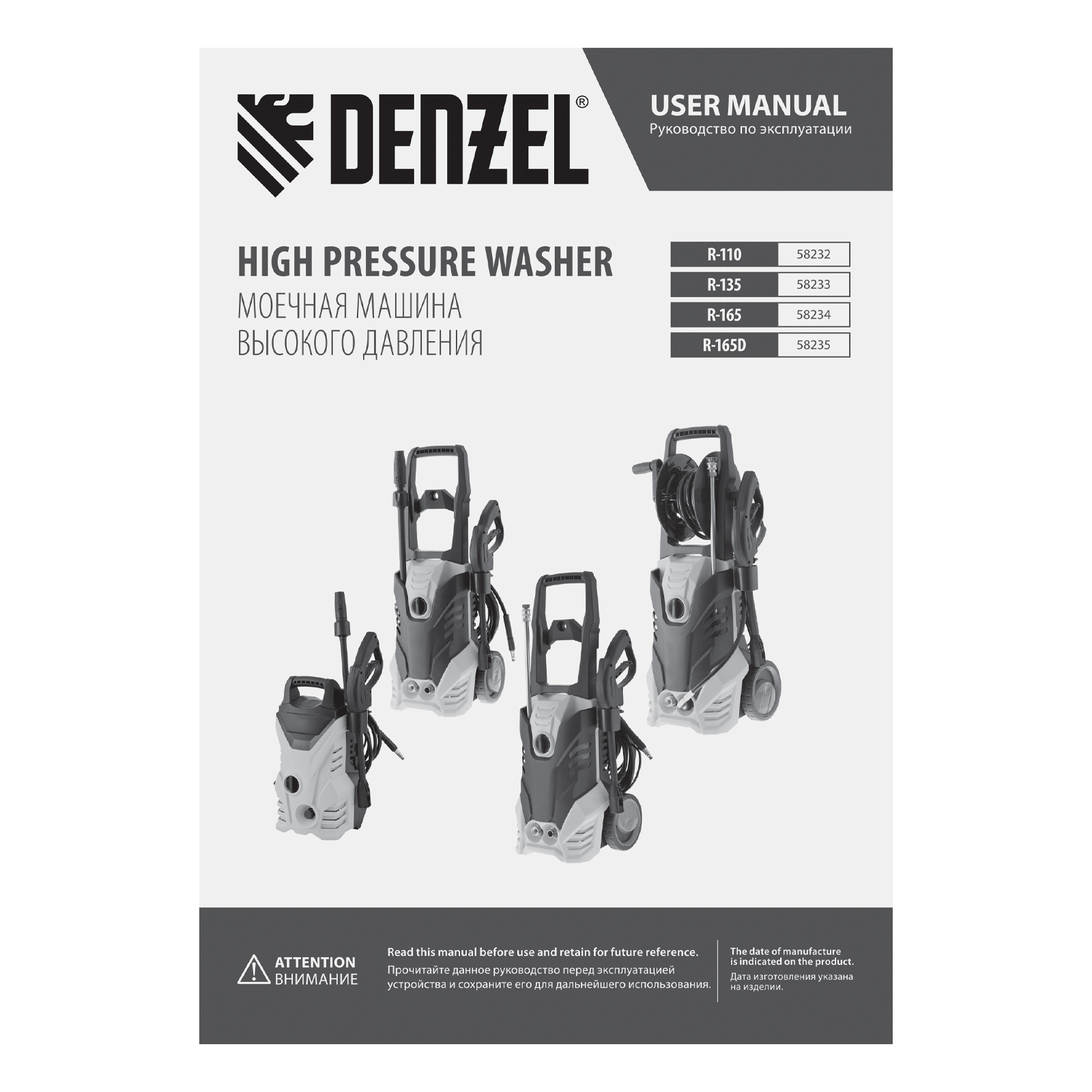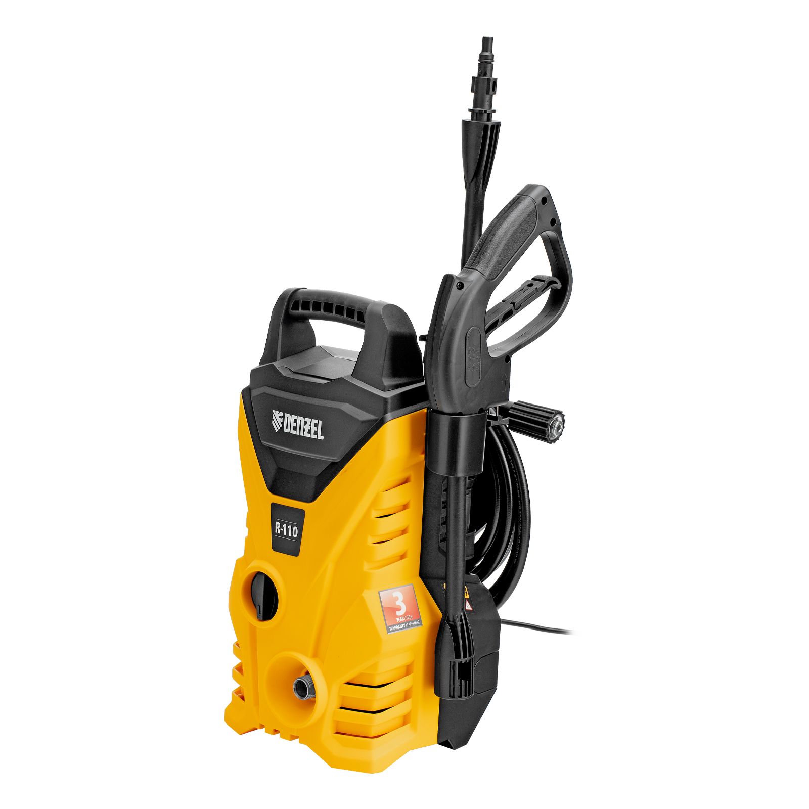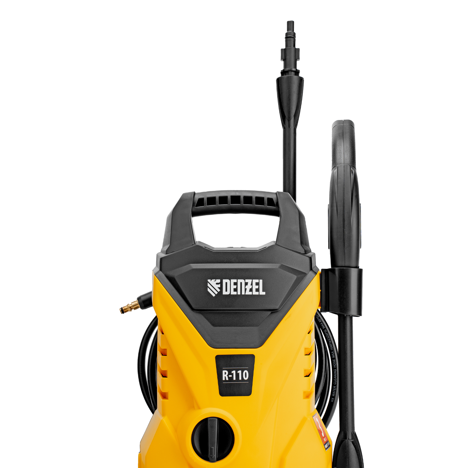 Переносная моечная машина высокого давления Denzel R-110 58232 производительностью 5,7 л/мин, мощностью 1500 Вт, с максимальным давлением 110 бар, используется для мытья автомобилей, садового инвентаря, велосипедов, дорожек и заборов. Мощный мотор и помпа высокой производительности позволяют быстро справляться даже с серьезными загрязнениями. Если нет доступа к водопроводу, мойка может осуществлять забор воды из резервуара в режиме самовсасывания, теряя при этом всего 5% давления.