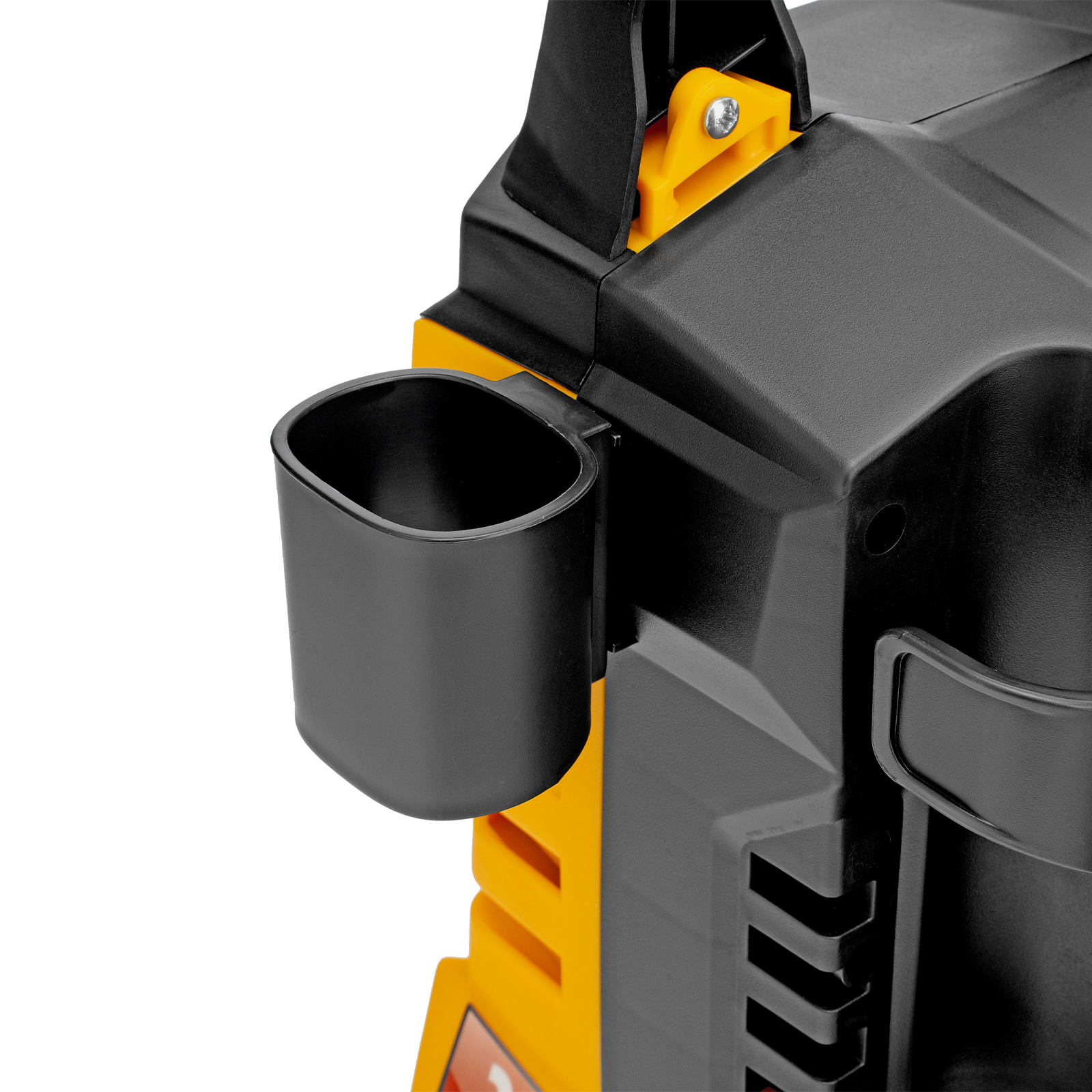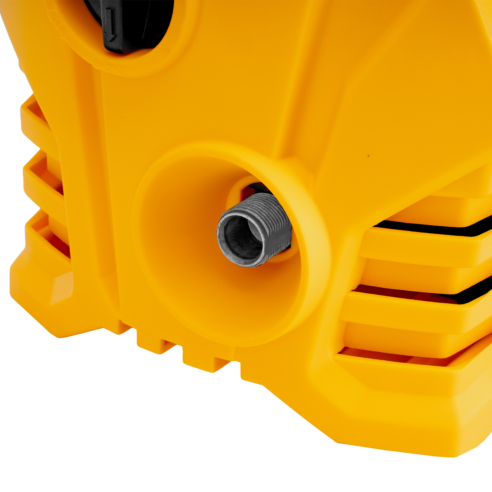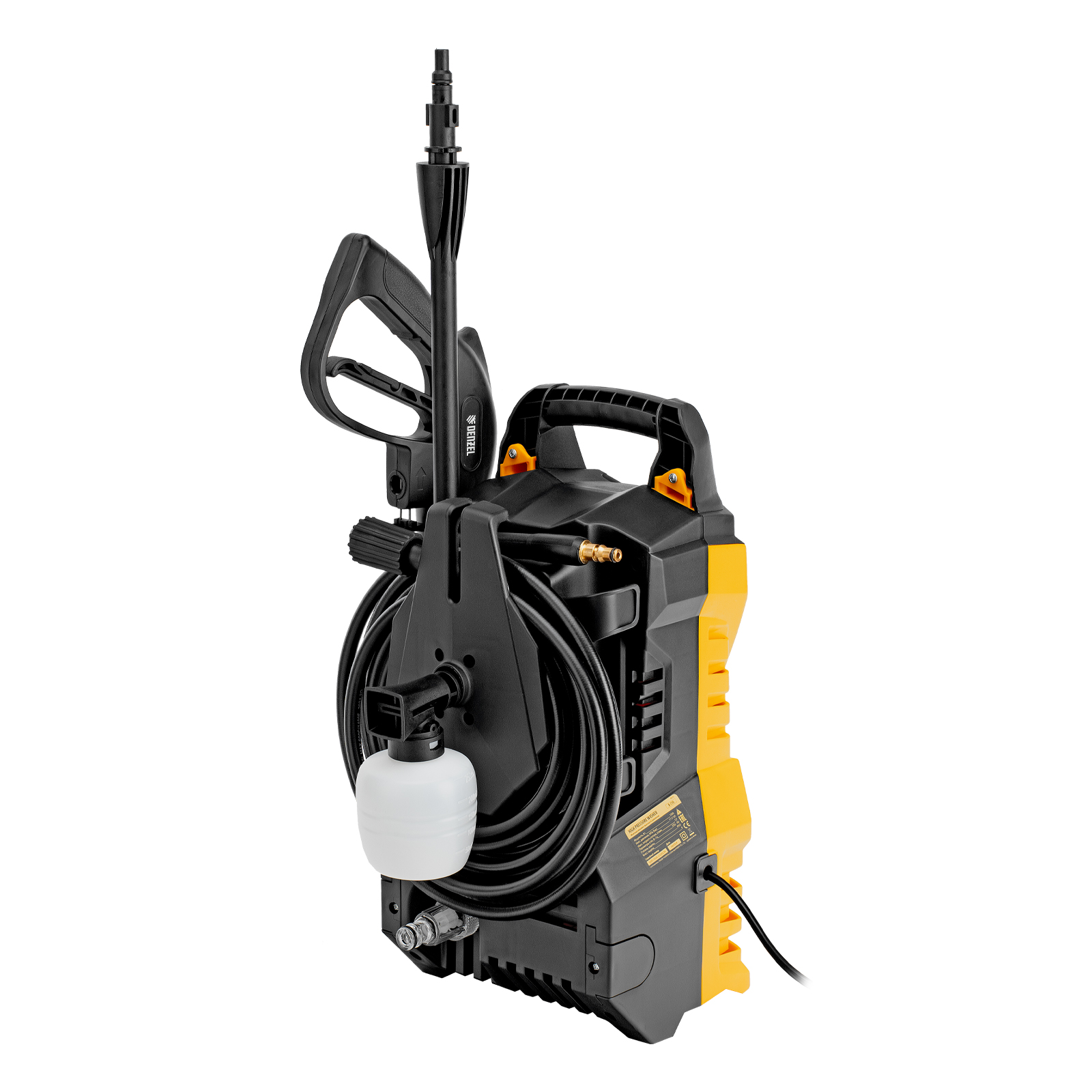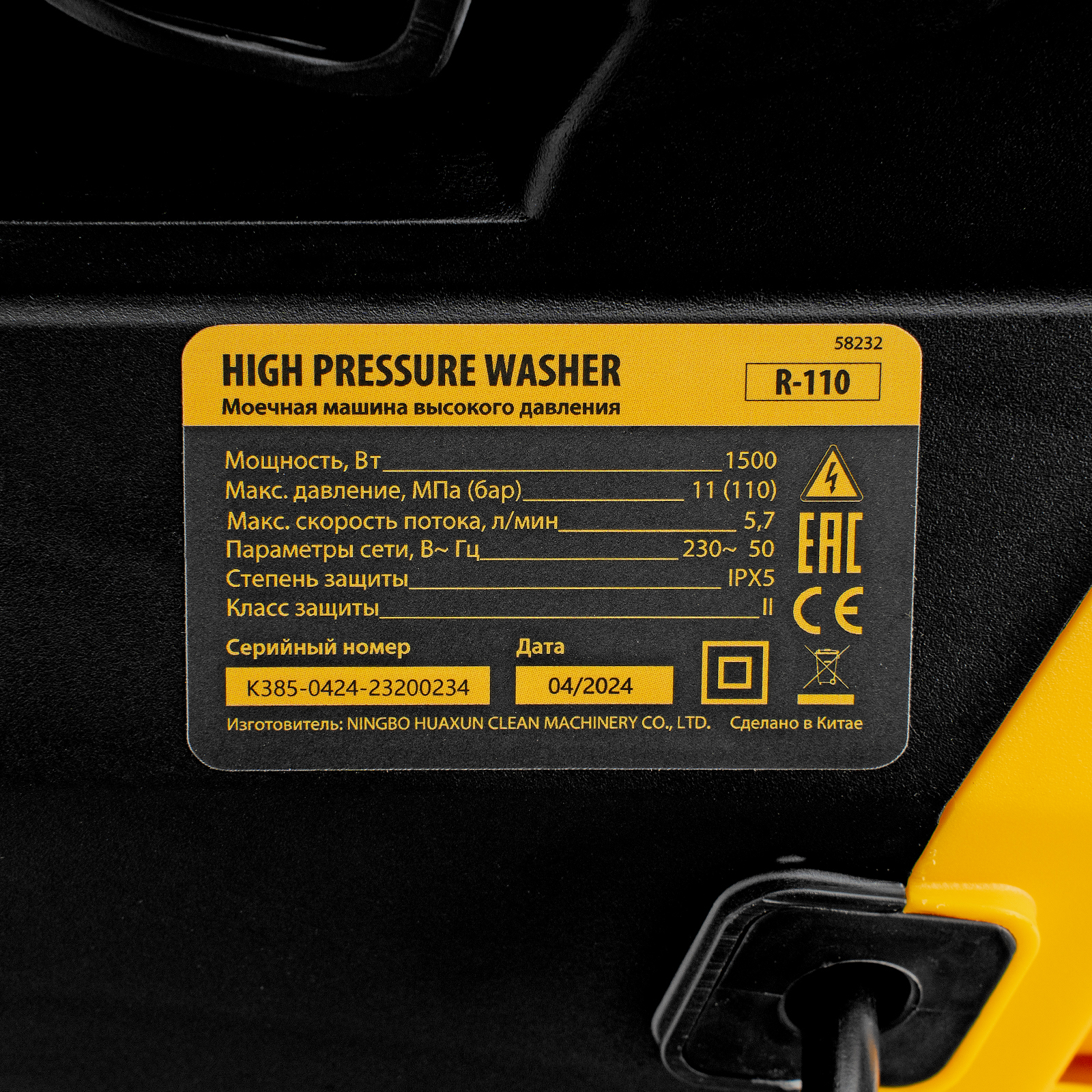Переносная моечная машина высокого давления Denzel R-110 58232 производительностью 5,7 л/мин, мощностью 1500 Вт, с максимальным давлением 110 бар, используется для мытья автомобилей, садового инвентаря, велосипедов, дорожек и заборов. Мощный мотор и помпа высокой производительности позволяют быстро справляться даже с серьезными загрязнениями. Если нет доступа к водопроводу, мойка может осуществлять забор воды из резервуара в режиме самовсасывания, теряя при этом всего 5% давления.