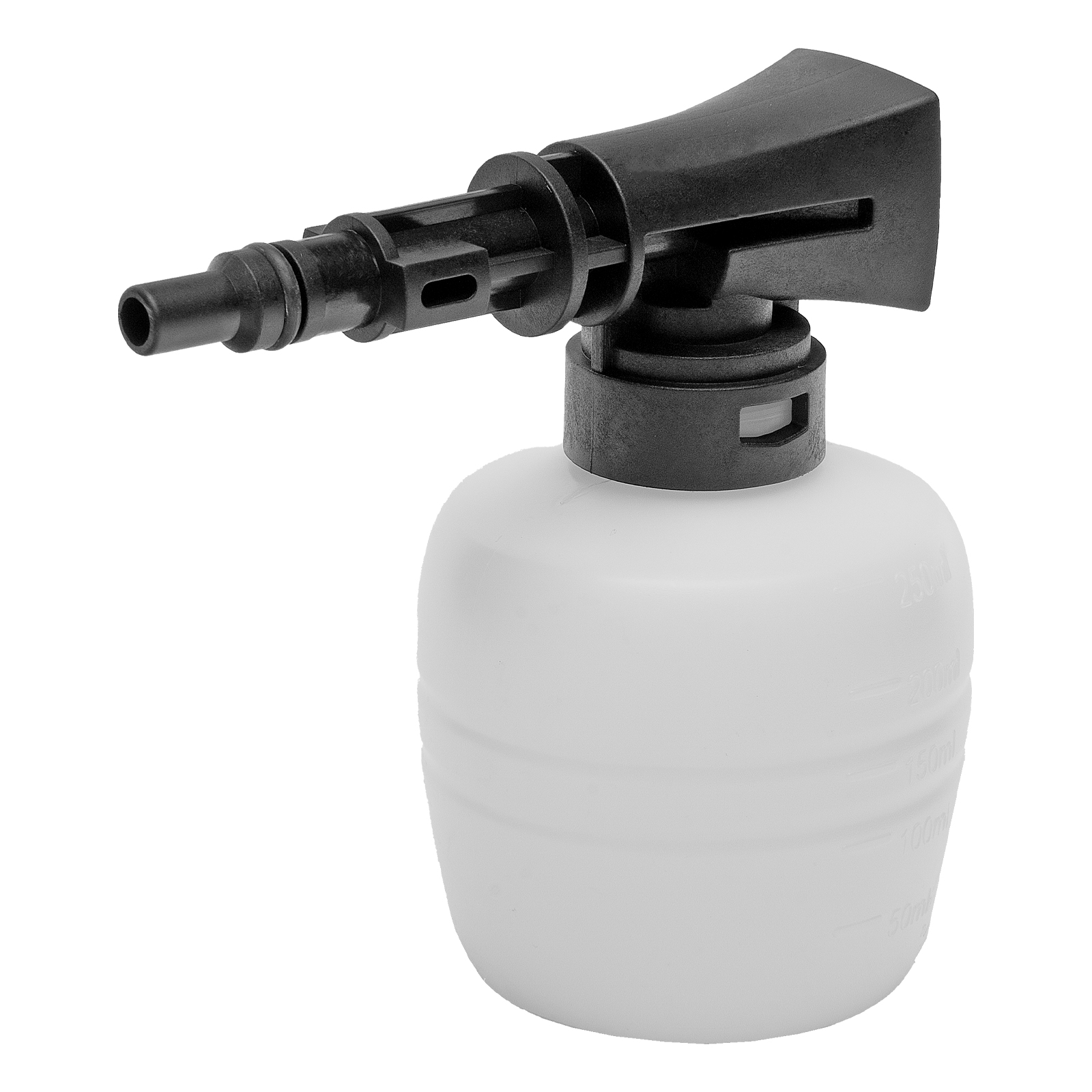 - Эффективная работа — входящий в комплект пеногенератор позволяет использовать моющие средства для очистки поверхностей.