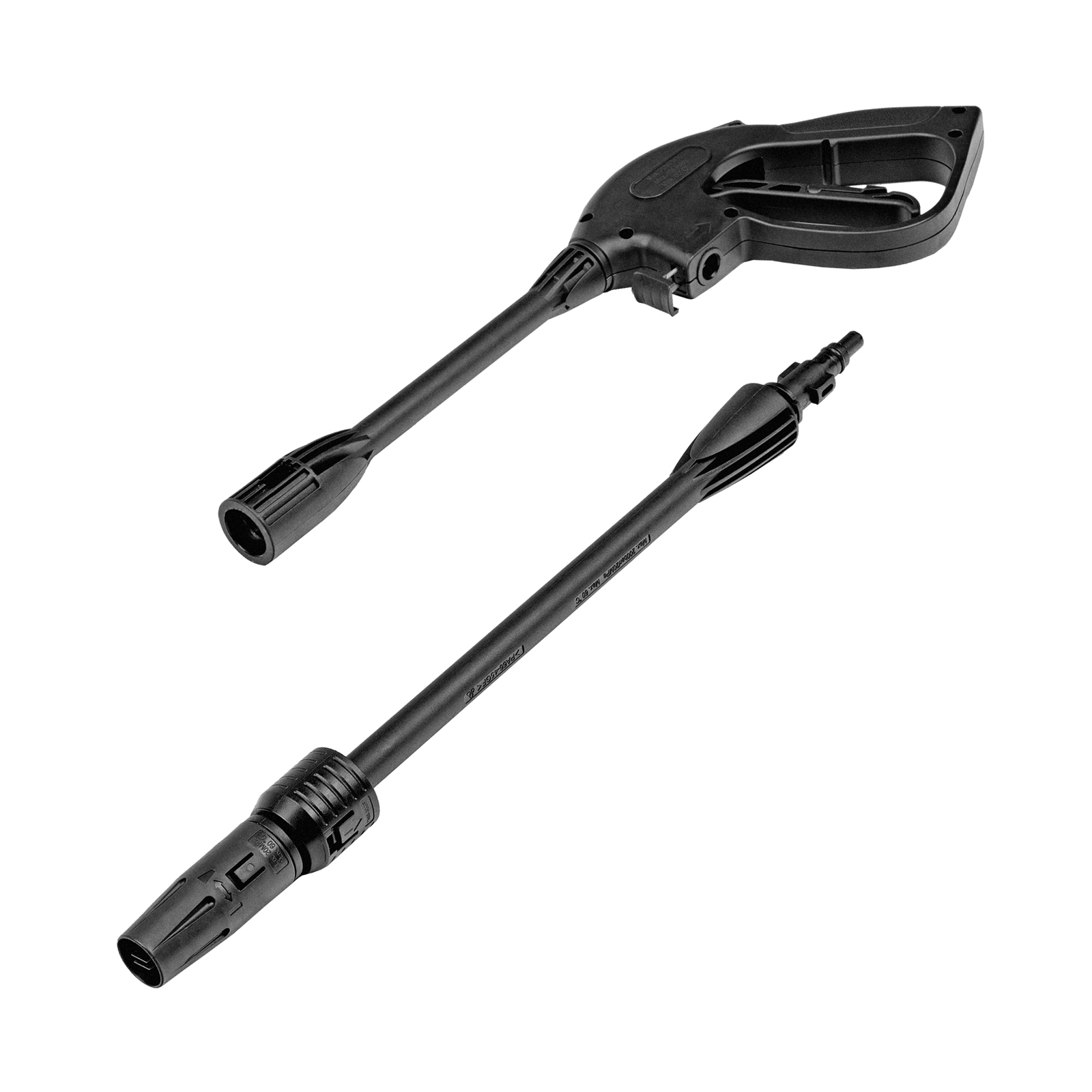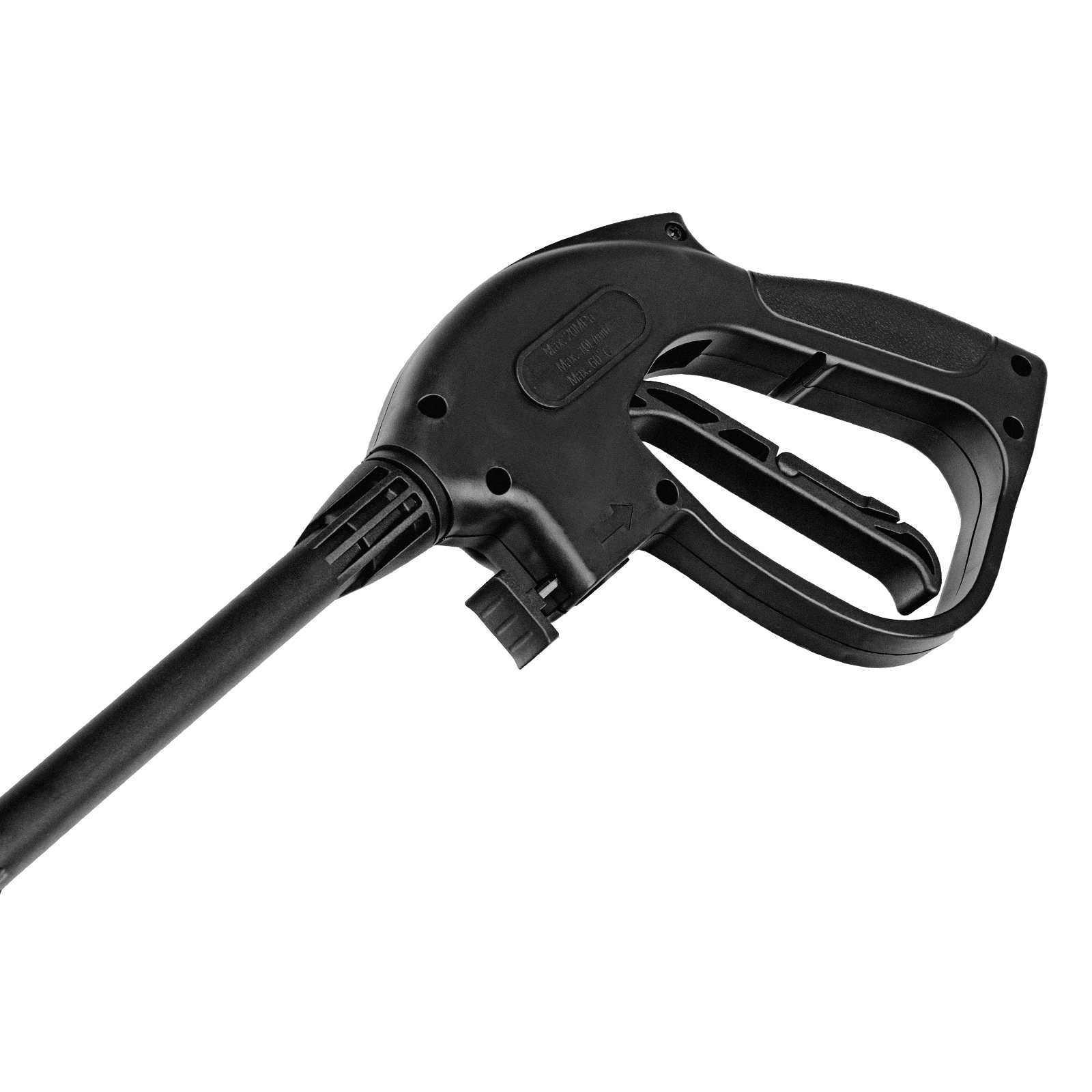 - Защита от случайного пуска — перед началом работы необходимо разблокировать рычаг моечного пистолета.