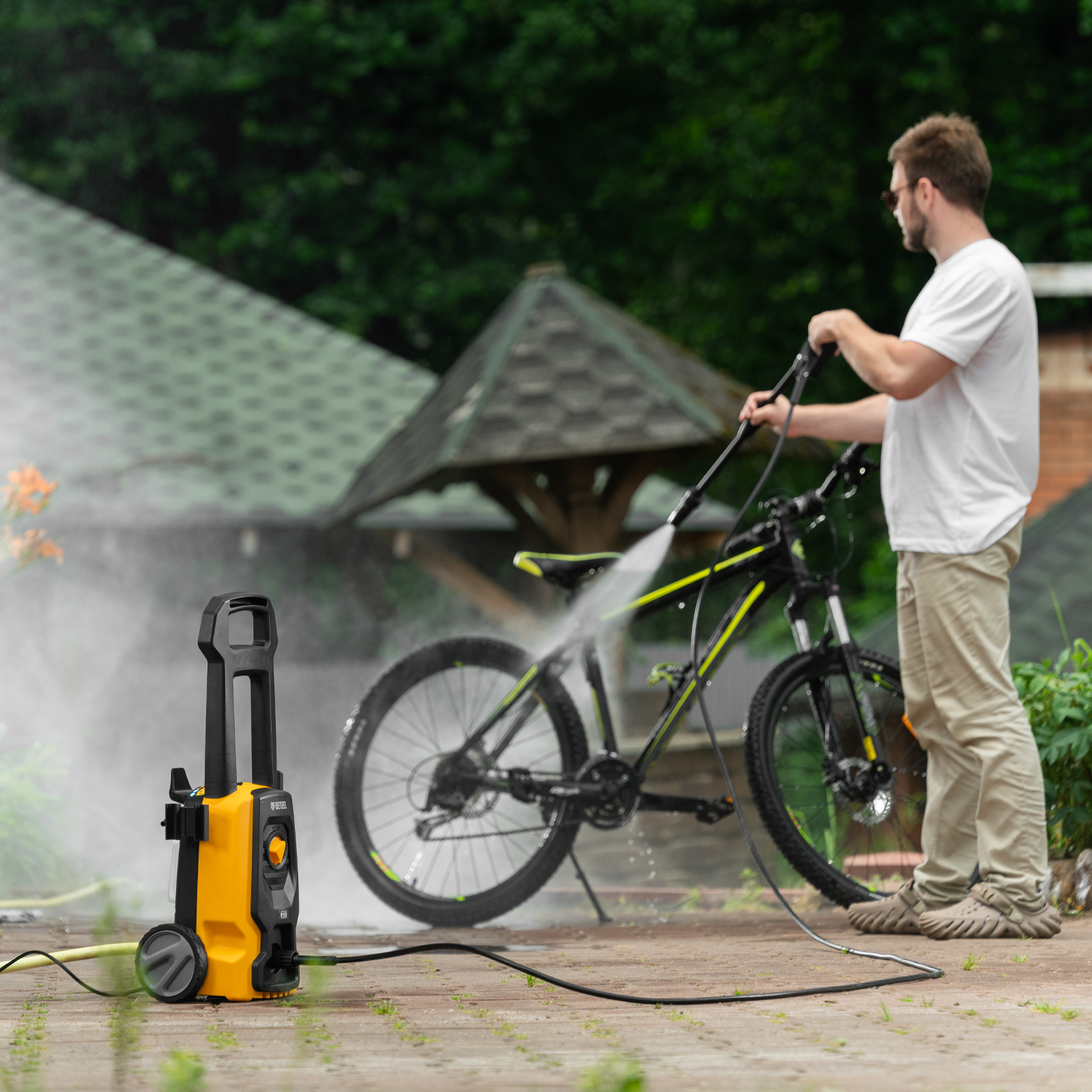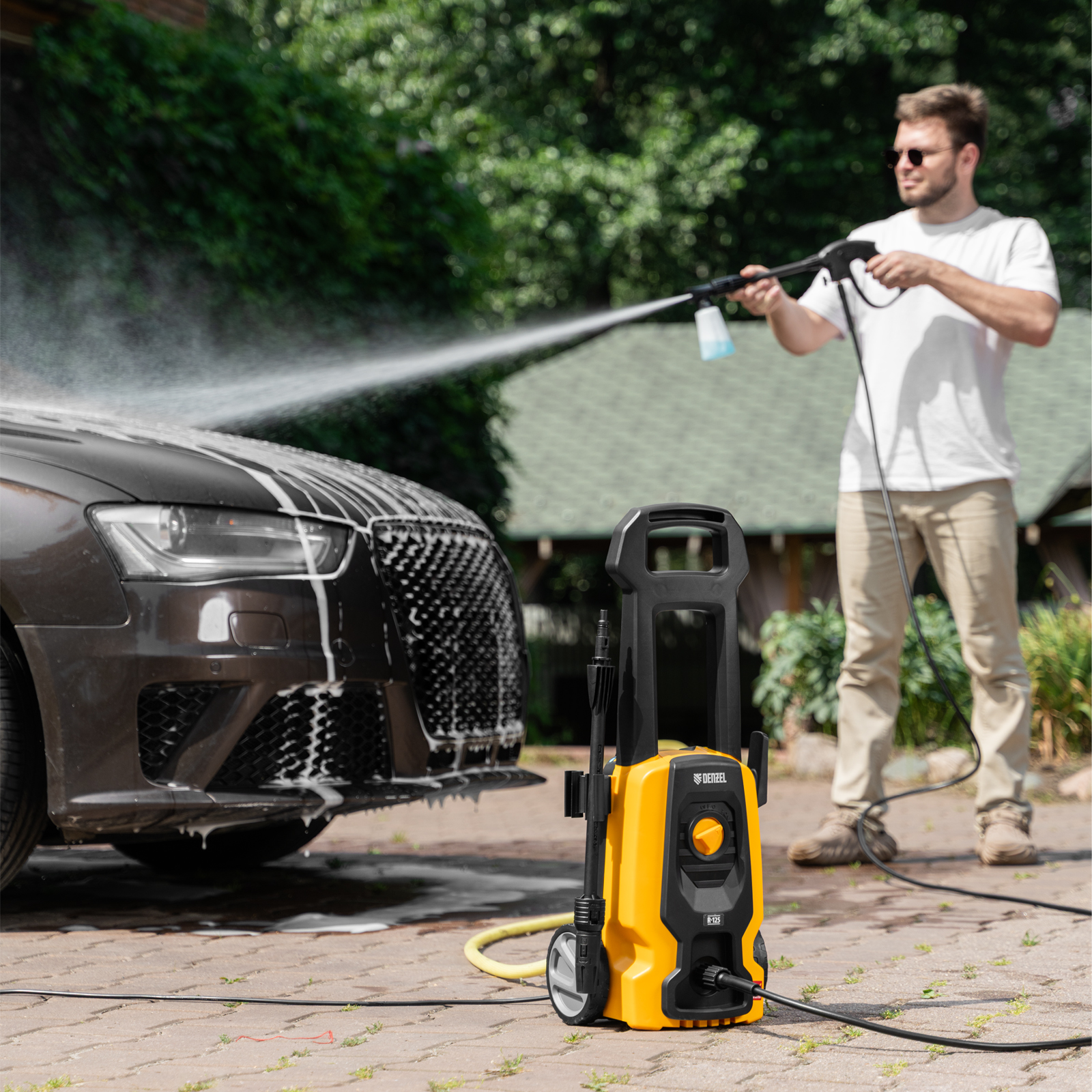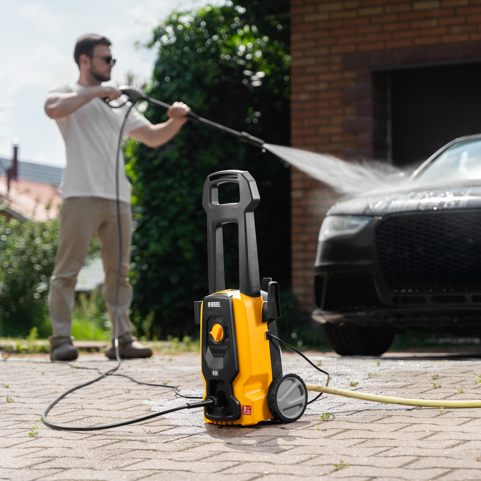 - Комфортное передвижение — длина кабеля и шланга высокого давления составляет 5 м.