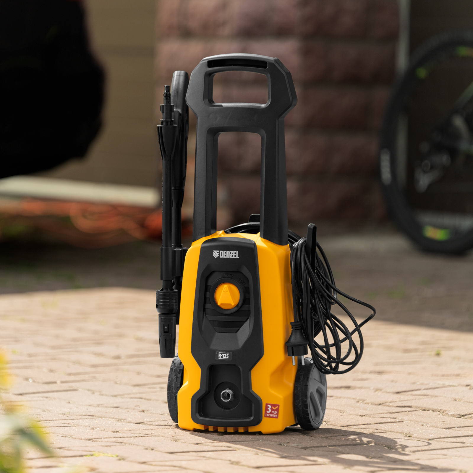 Моечная машина высокого давления Denzel R-125 58259 мощностью 1500 Вт предназначена для очищения различных поверхностей при помощи водяной струи под давлением. Максимальное давление составляет 125 бар, производительность — 350 л/ч. С помощью мойки можно быстро и эффективно очистить фасад дома, дорожки на дачном участке, кузов автомобиля, садовую мебель и инвентарь. Машина подключается к водопроводной сети, а в случае ее отсутствия может забирать воду из любого открытого резервуара, работая в режиме самовсасывания. Рекомендована для бытового применения.