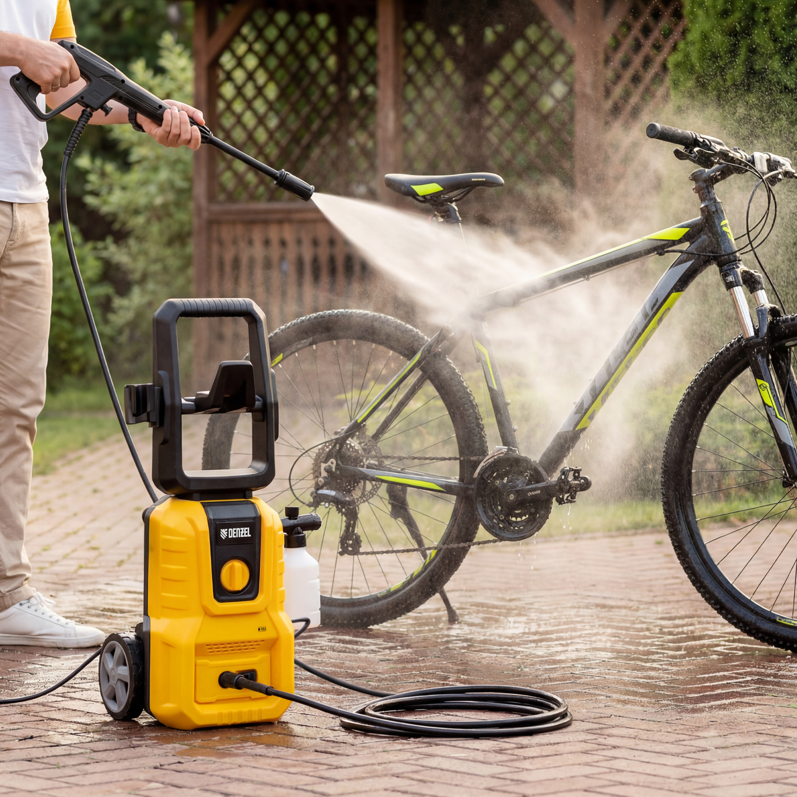 Моечная машина высокого давления Denzel R-135 58261 мощностью 1600 Вт поддерживает максимальное рабочее давление до 135 бар и обеспечивает объем подачи воды 390 л/ч. Позволяет быстро и эффективно очистить садовый инвентарь, фасад дома, дорожку, отмыть автомобиль и т.д. Оснащена самовсасывающим помпой, поэтому может работать даже без подключения к водопроводу — подойдет любой резервуар или емкость с водой. Машина оптимальна для бытового использования.