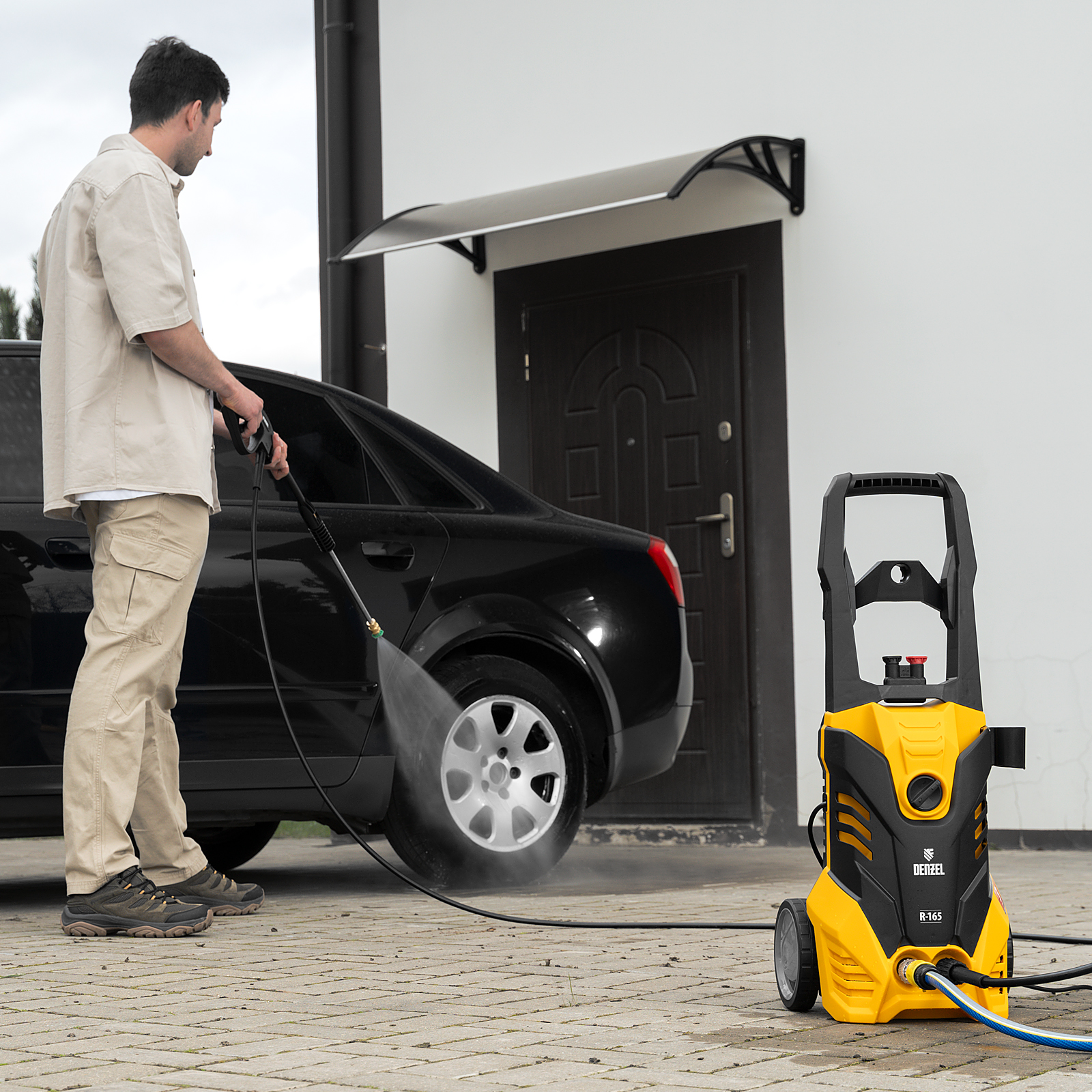 Колесная моечная машина высокого давления Denzel R-165 58234 мощностью 2200 Вт обеспечивает подачу воды под давлением 165 бар со скоростью 7 л/мин. Используется для эффективного очищения бесконтактным методом дорожек, заборов, небольших строений, садового инвентаря и автомобилей от серьезных загрязнений. При отсутствии доступа к водопроводу самовсасывающая система обеспечит забор воды из любой емкости, потеря давления при этом составит всего 5%.
