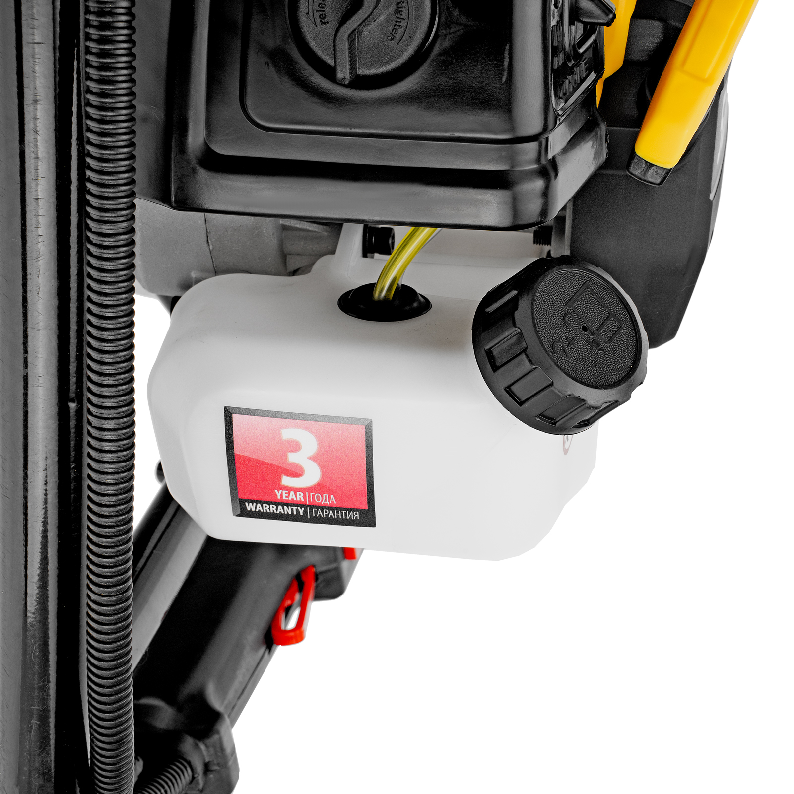- Быстрая подготовка к работе — мотобур поставляется в сборе, достаточно добавить смазку при необходимости, установить шнек и залить топливо в бак (шнек в комплект не входит).