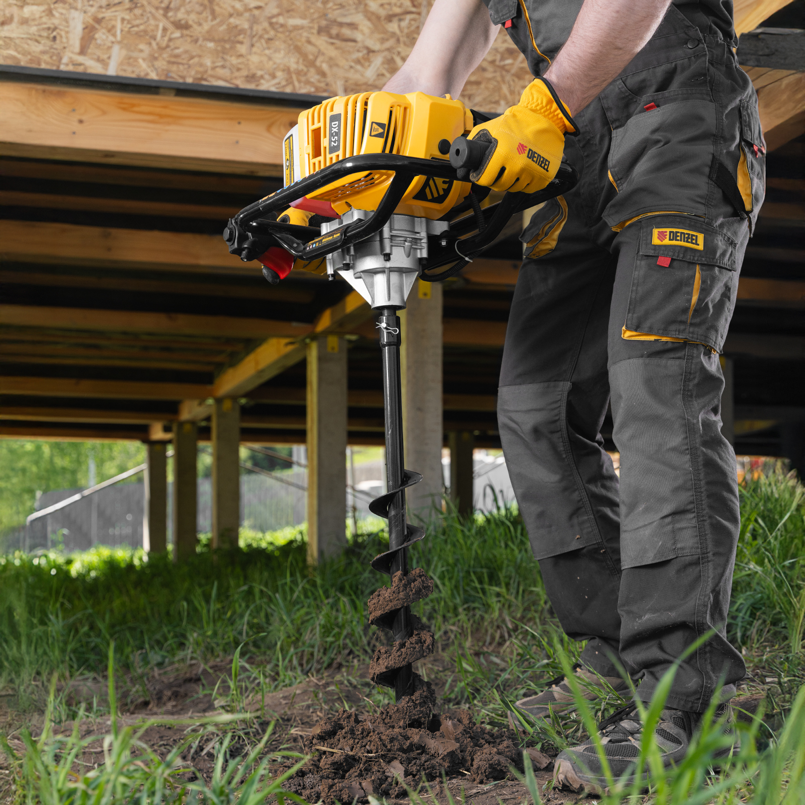 Мотобур Denzel DX-52 56001 с объемом двигателя 52 см3 и диаметром соединения 20 мм предназначен для получения отверстий и углублений во льду или в грунте максимальным диаметром 300 мм. Мощный и экономичный двигатель мощностью 3 л. с. позволяет эффективно решать поставленные задачи. Для бурения отверстий диаметром более 150 мм и глубиной более 1 м предусмотрена возможность управления мотобуром двумя пользователями. Устройство будет полезно на строительной площадке, загородном участке, пригодится также во время зимней рыбалки.