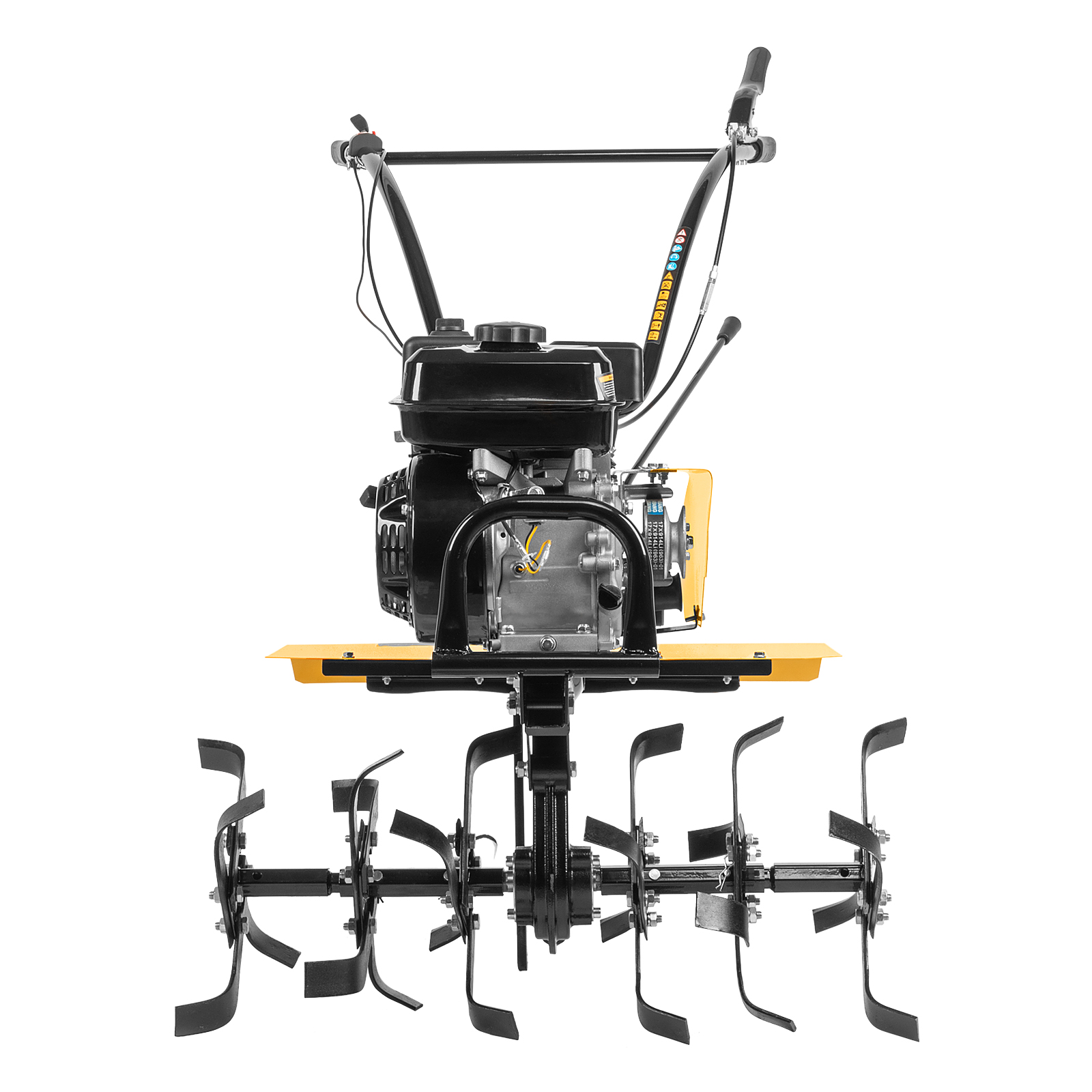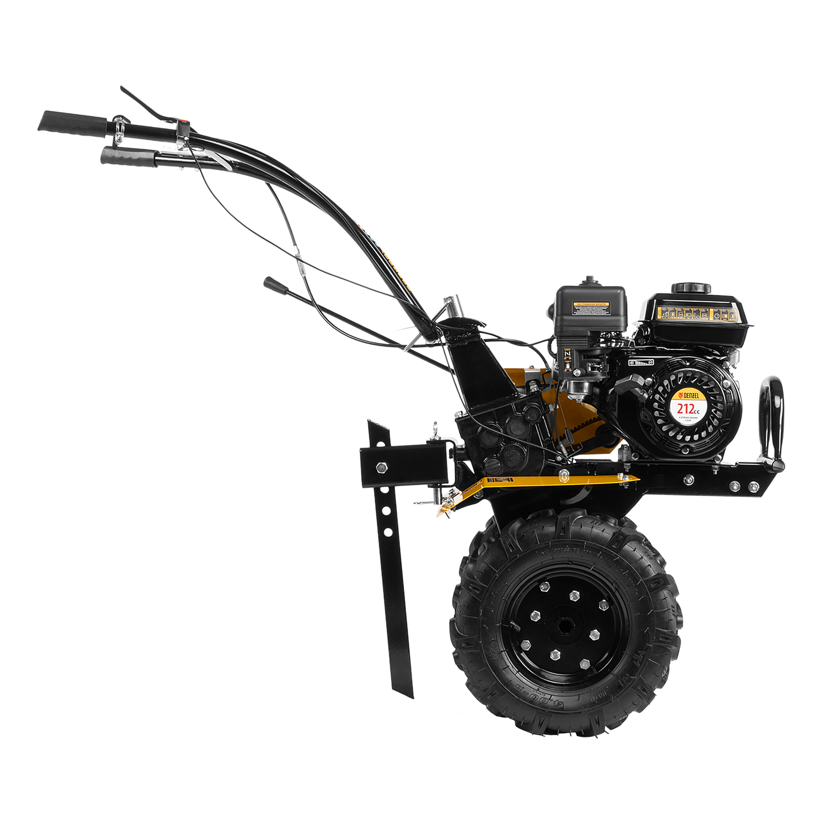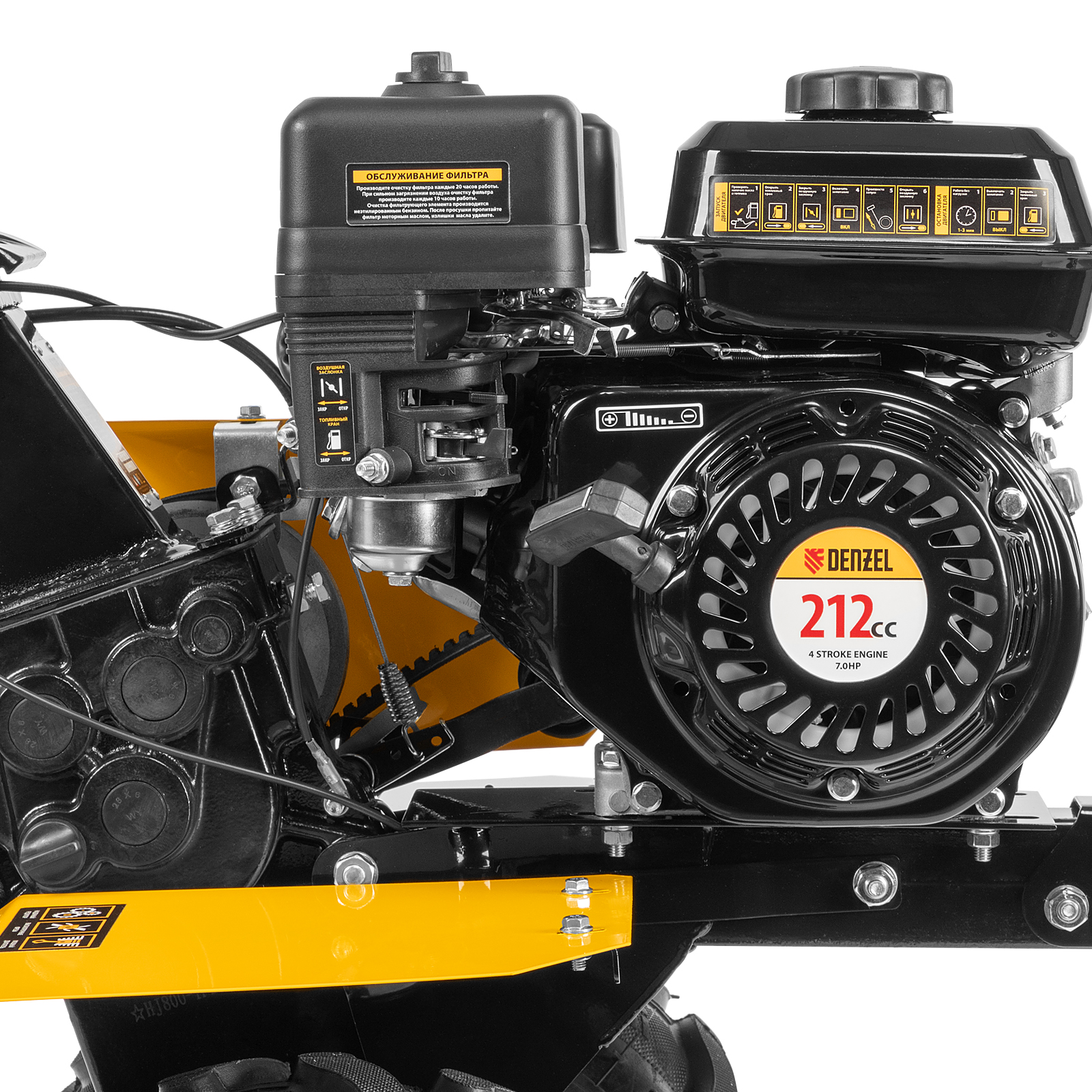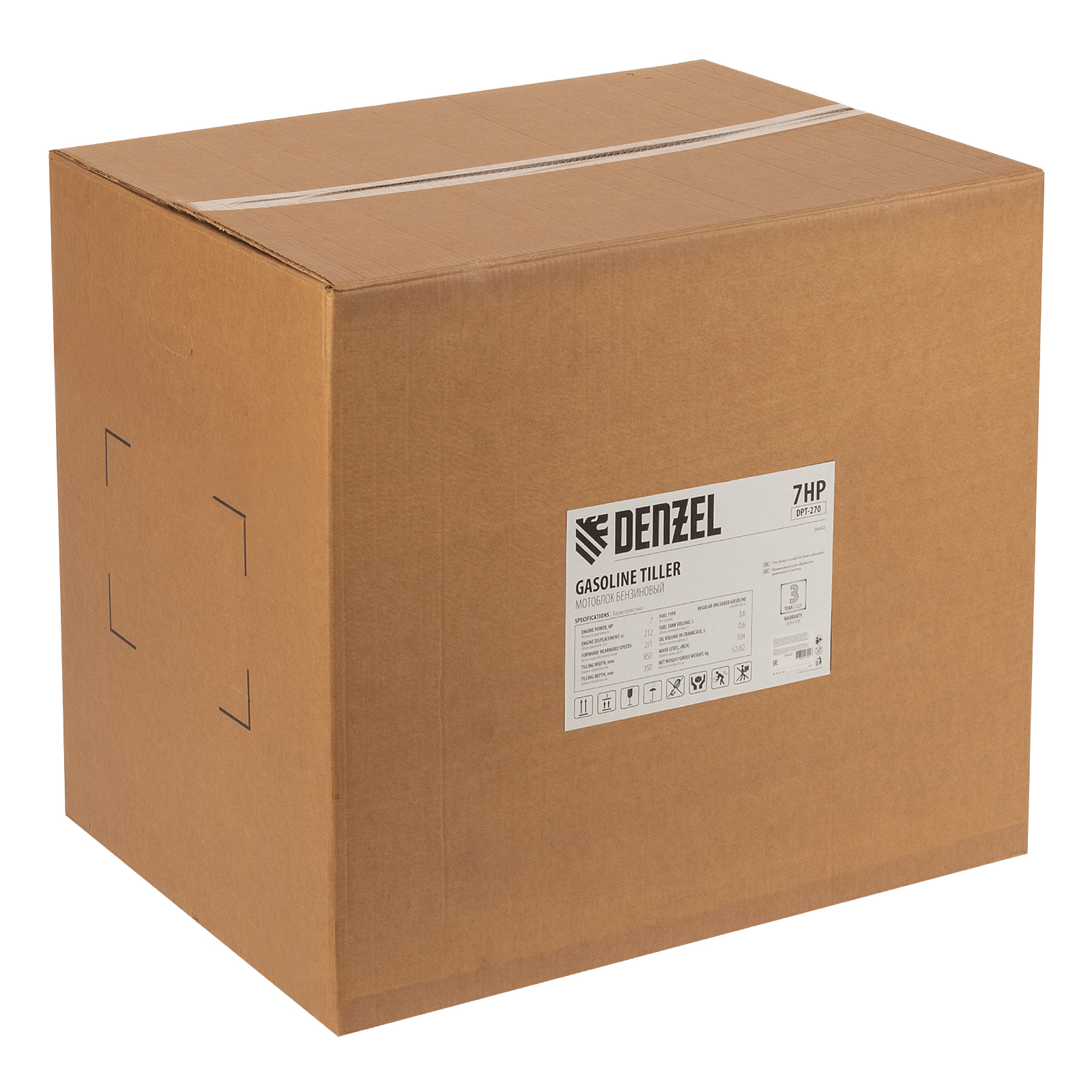 Мотоблок Denzel DPT-270 56432 с двигателем объемом 212 см3 и мощностью 7 л.с., ременным сцеплением, шкивом отбора мощности (ШОМ) и коробкой передач 2В/1Н используется для проведения различных сельскохозяйственных работ. Удобен для обработки участков большой площади: в комплект поставки входит 6 рядов высокопрочных фрез, обеспечивающих ширину вспахивания 85 см и и глубину 35 см. ,Возможность установки различного навесного оборудования, в том числе активного, значительно расширяет возможности мотоблока и позволяет снизить расходы на приобретение сельскохозяйственной техники. Техника совместима с удлинителями осей 59903, 59909, универсальной сцепкой 59904 и 59910, плугами 59905, 59911, окучниками 59906, 59912, 59907, картофелевыкапывателями 59908, 59913, грунтозацепами 59914, 59915, 59916, 59901, 59917, 59902. Установив прицеп Denzel 59950, мотоблок можно использовать в качестве транспортного средства.