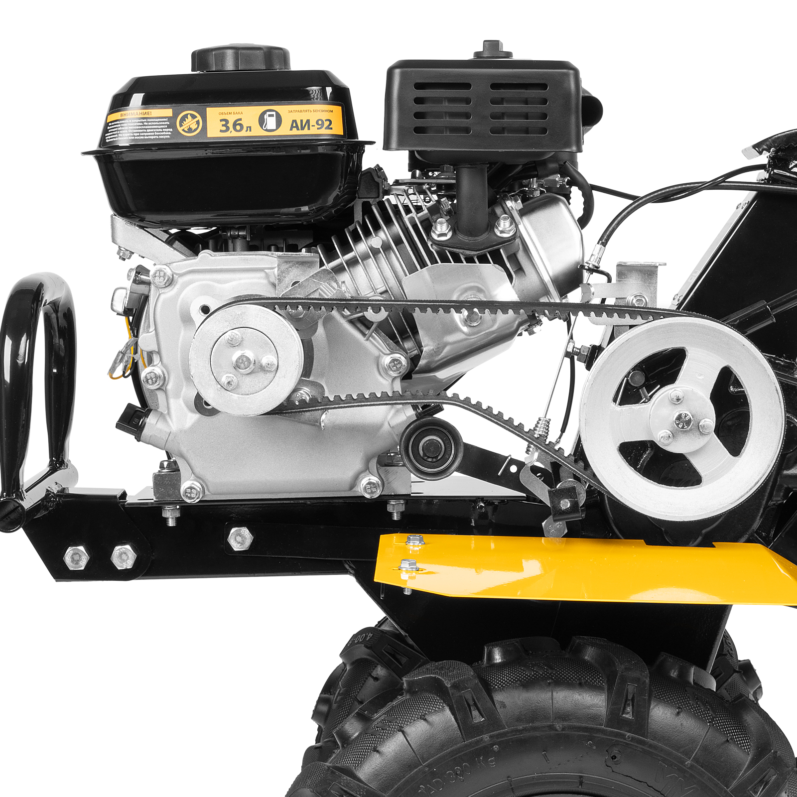 - Комфортная транспортировка — усиленная рукоятка-бампер упрощает перемещение мотоблока по участку.