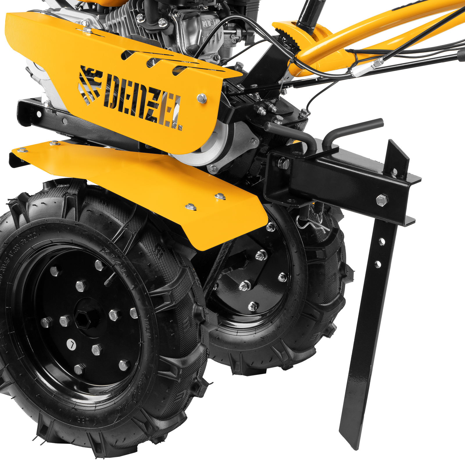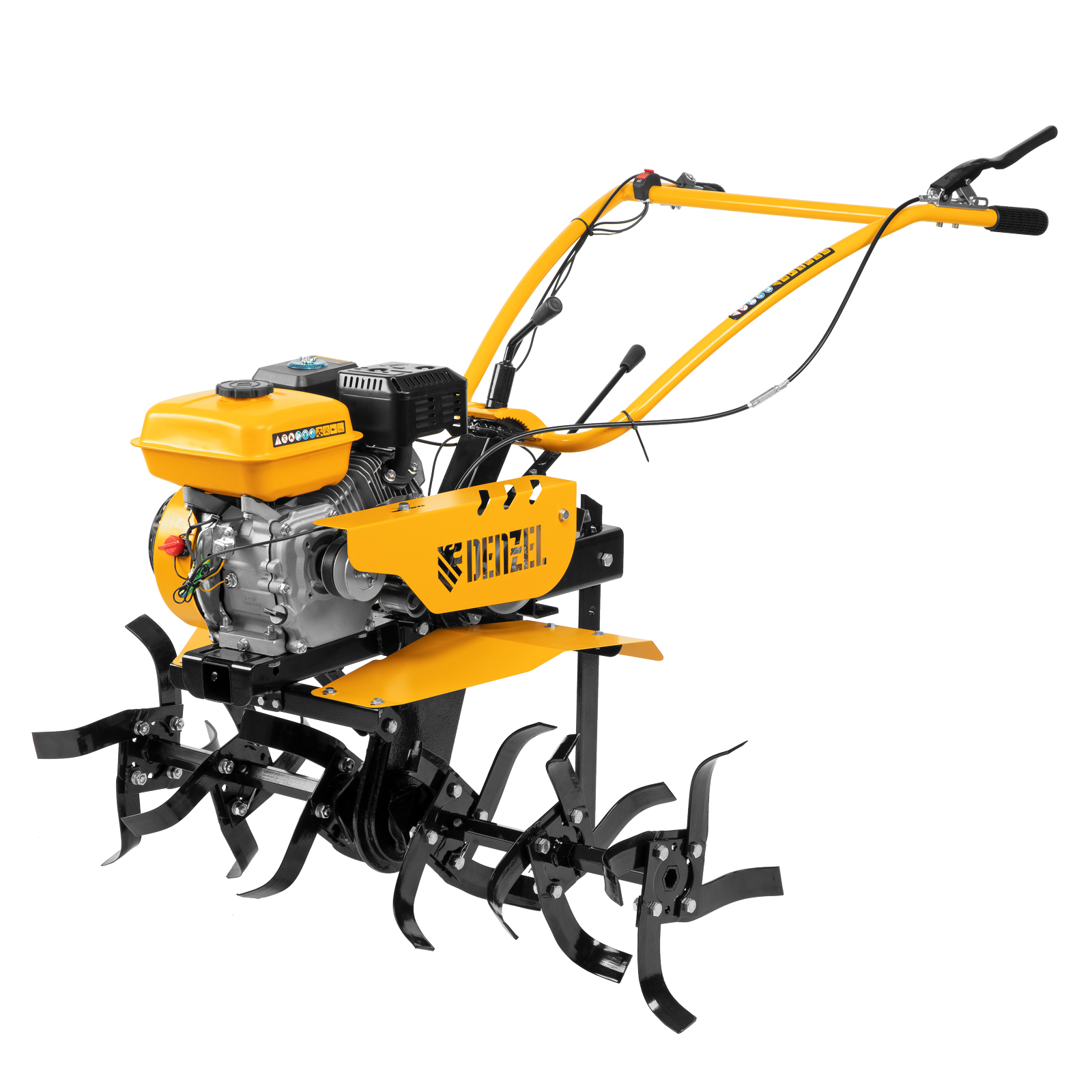 Мотоблок Denzel DPT-270 56402 предназначен для больших территорий площадью от 15 соток. Благодаря мощности 7 л.с. и острым фрезам он без труда вспашет целину, справится с глинистой почвой, обработает даже вязкий грунт. 3 скорости работы обеспечивают легкое переключение в процессе культивирования, а вес более 60 кг позволяет достигать глубины обработки до 35 см.,Модель отличается универсальным сцеплением, что делает возможным присоединение практически любого навесного оборудования, представленного на рынке: для уборки территории, скашивания травы, посадки и сбора урожая и т.д. Для крепления активного навесного оборудования предусмотрен шкив отбора мощности.