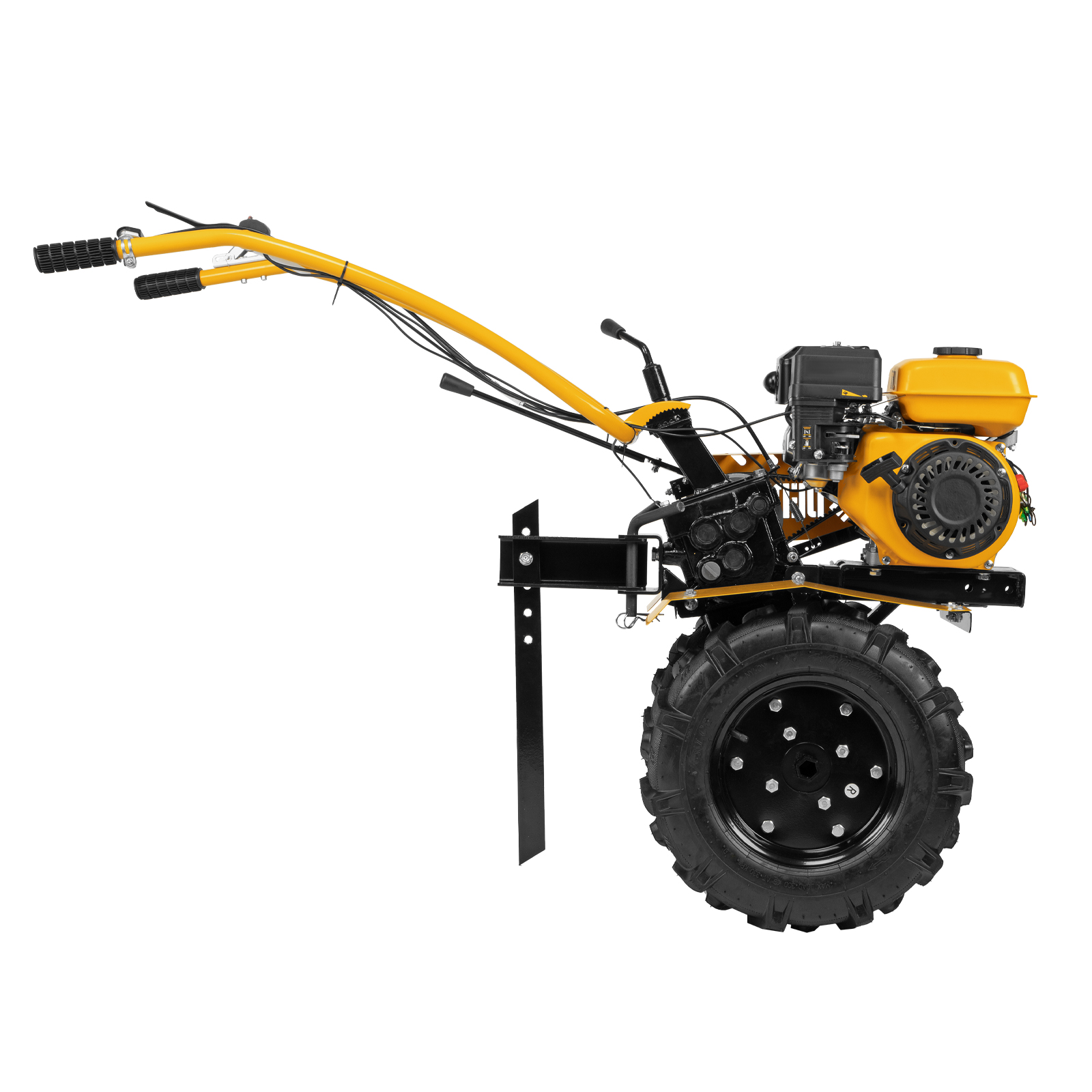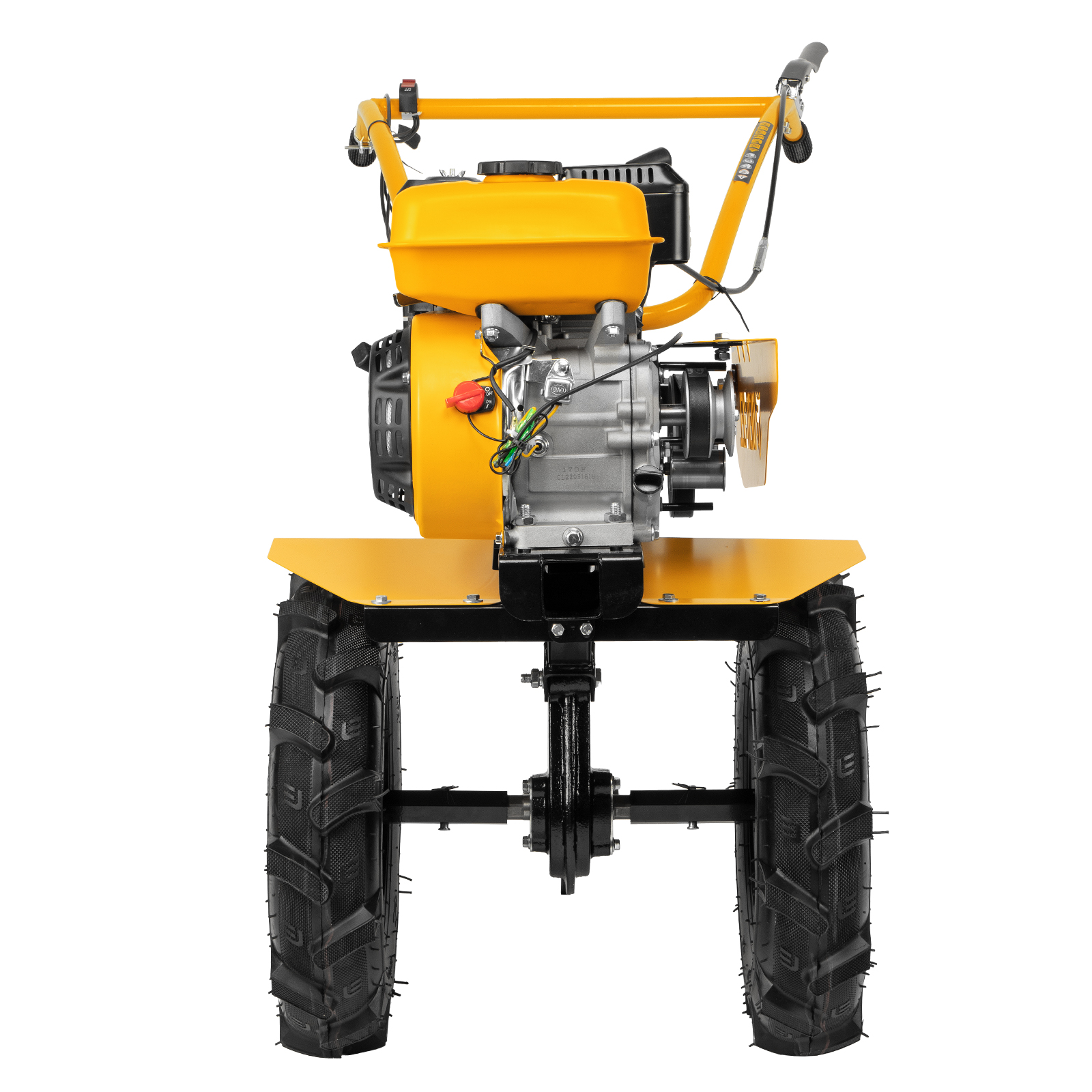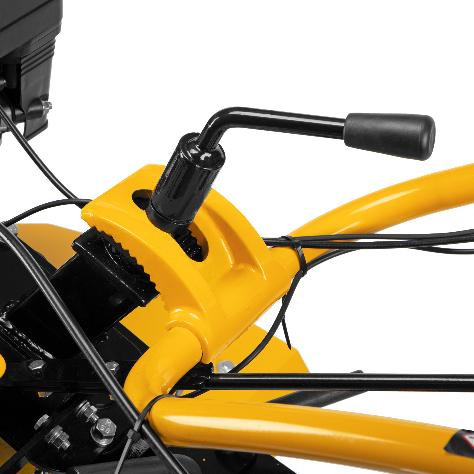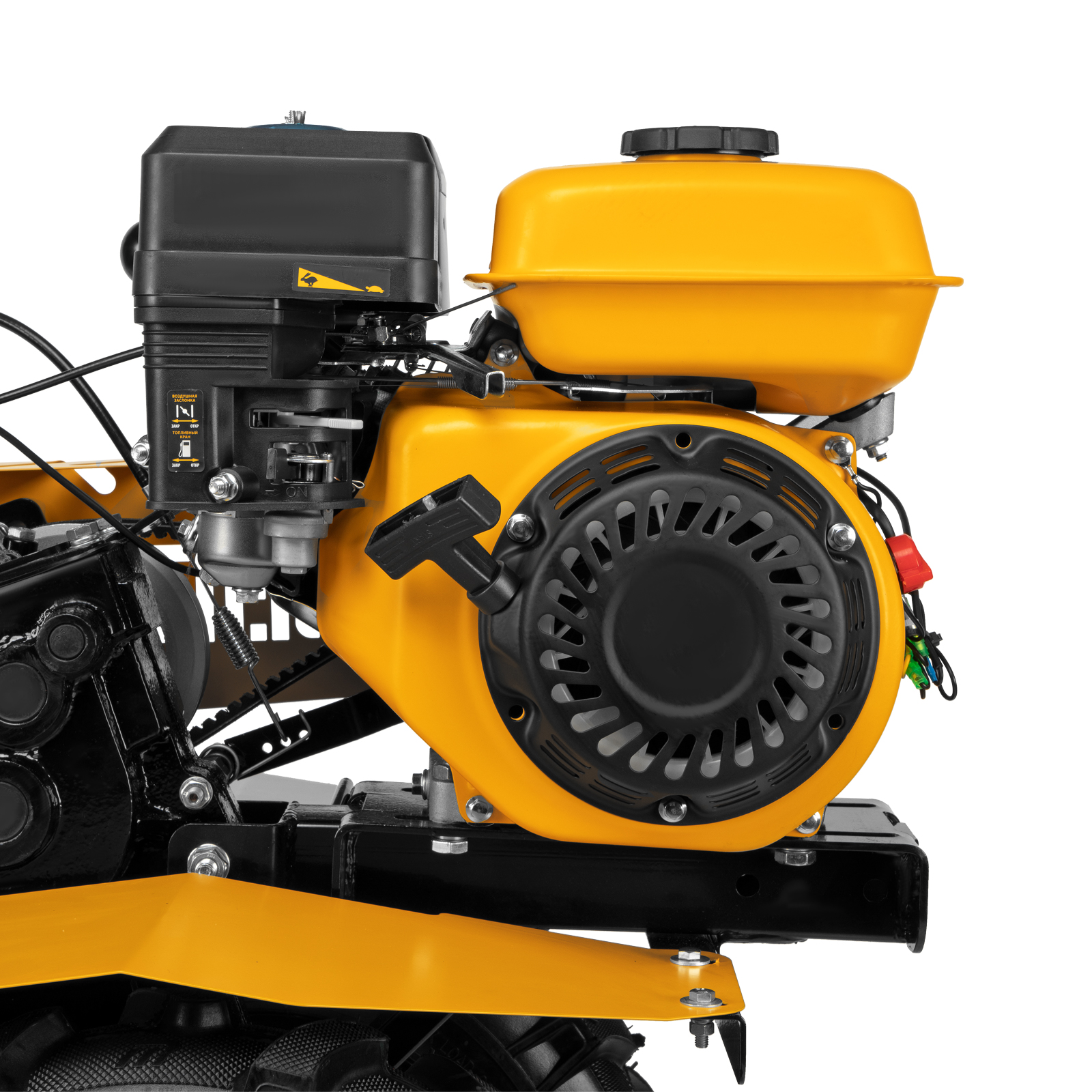- Защита двигателя — система LO-protection не позволит мотору включиться, если уровень масла будет ниже допустимого, что сохранит основные узлы мотоблока от поломки.