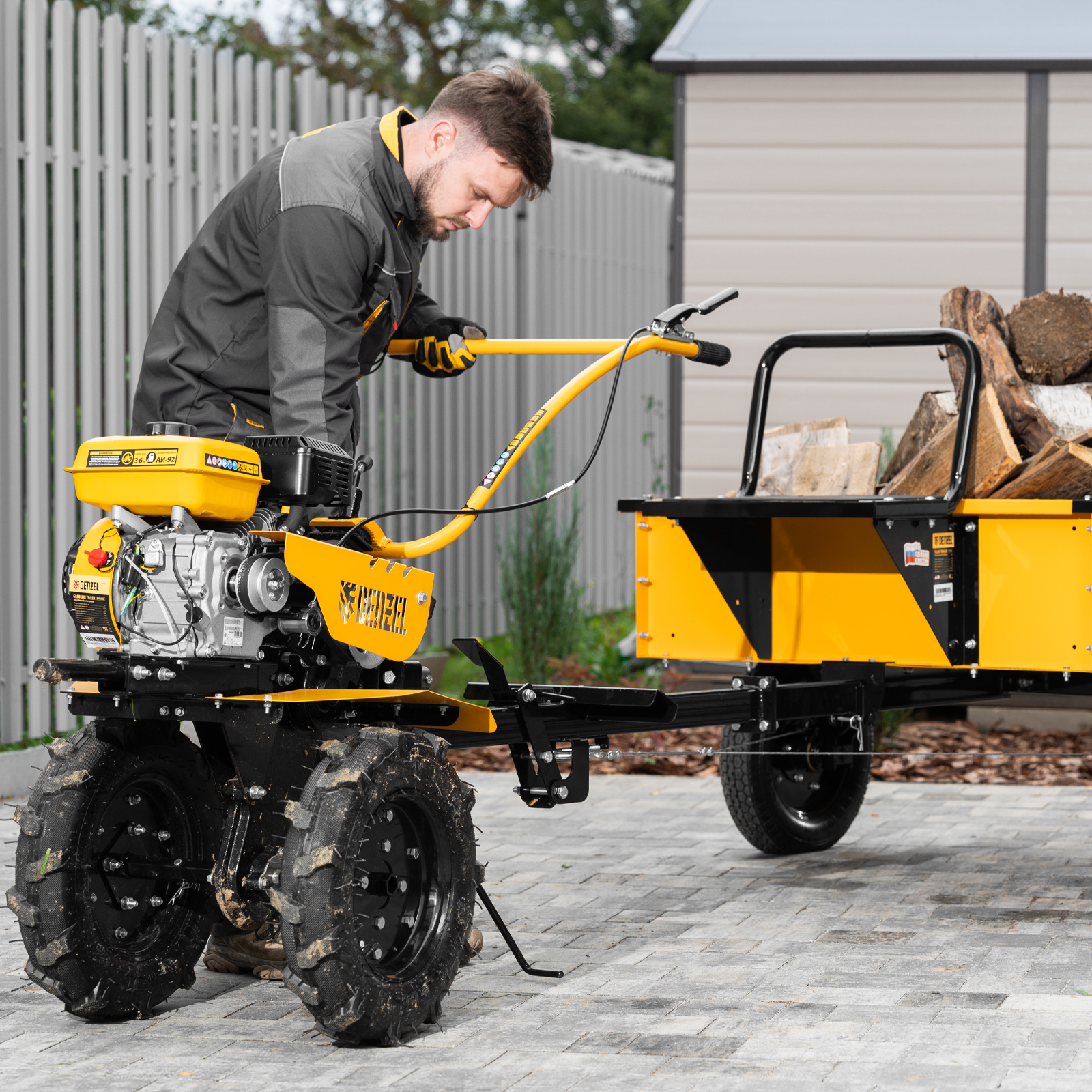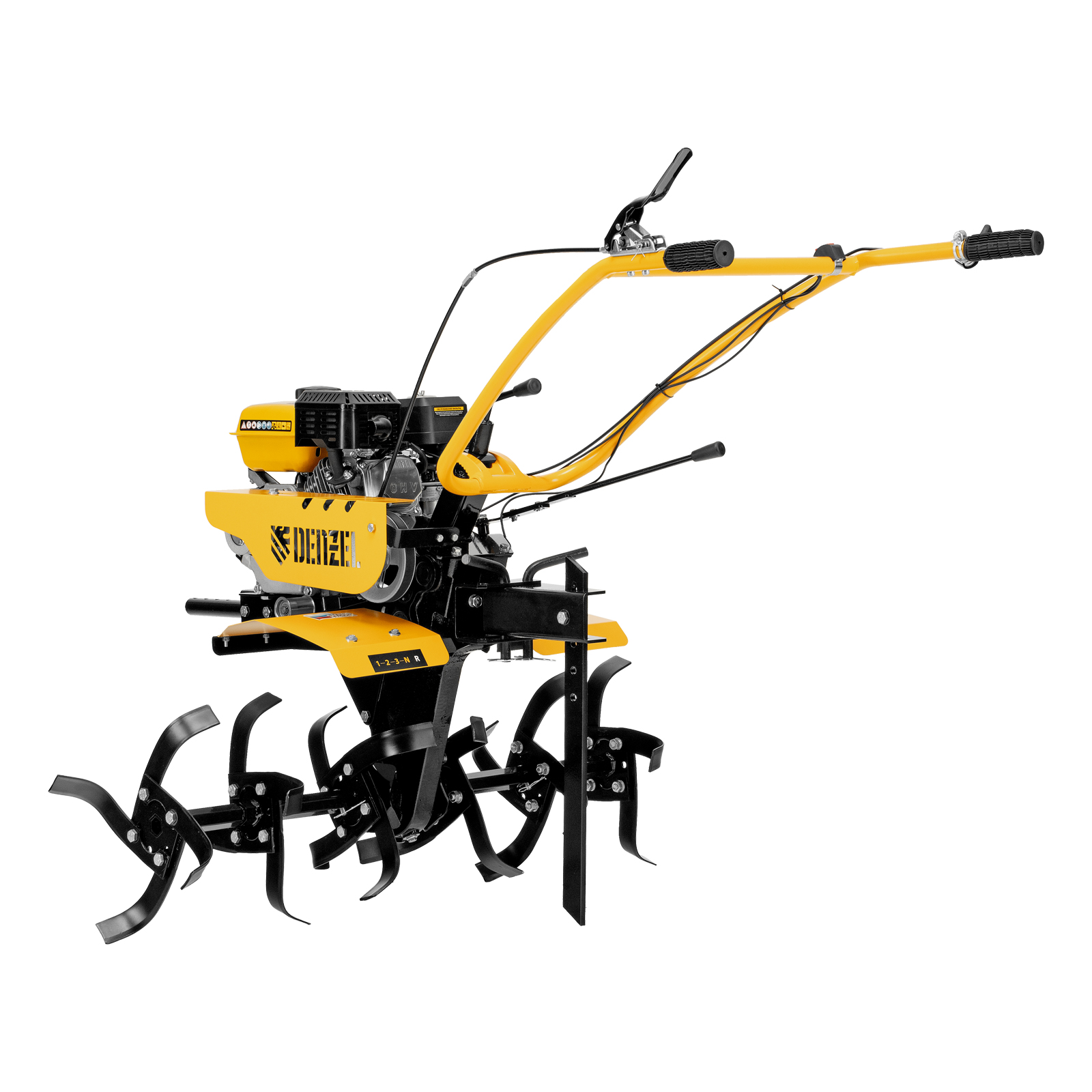 - Эффективная работа на любых типах грунта — мотоблок оснащен мощным и экономичным OHV-двигателем Denzel Long Life и стальными закаленными фрезами, не требующими заточки в течение всего срока эксплуатации.