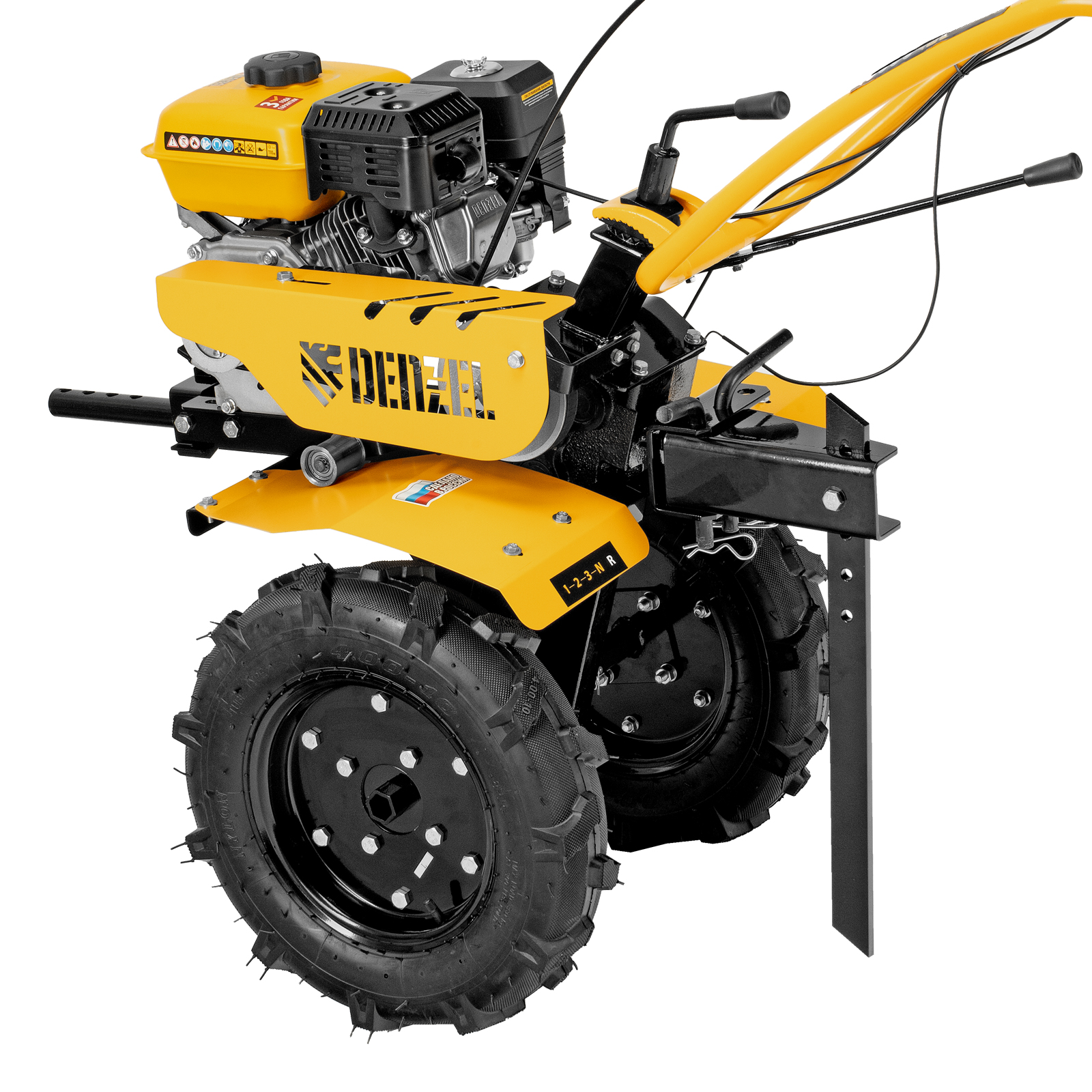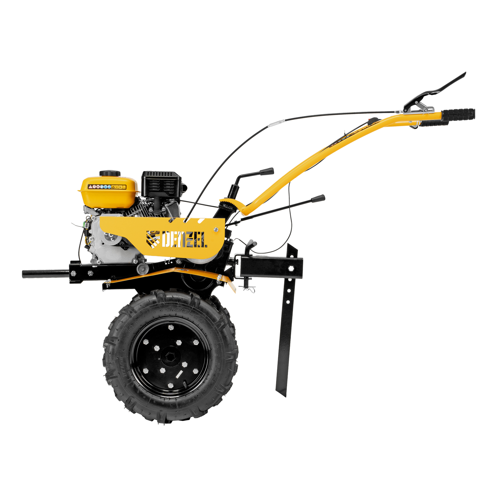 - Универсальность — мотоблок совместим со всеми моделями навесного оборудования, представленного в ассортименте Denzel (приобретается отдельно).