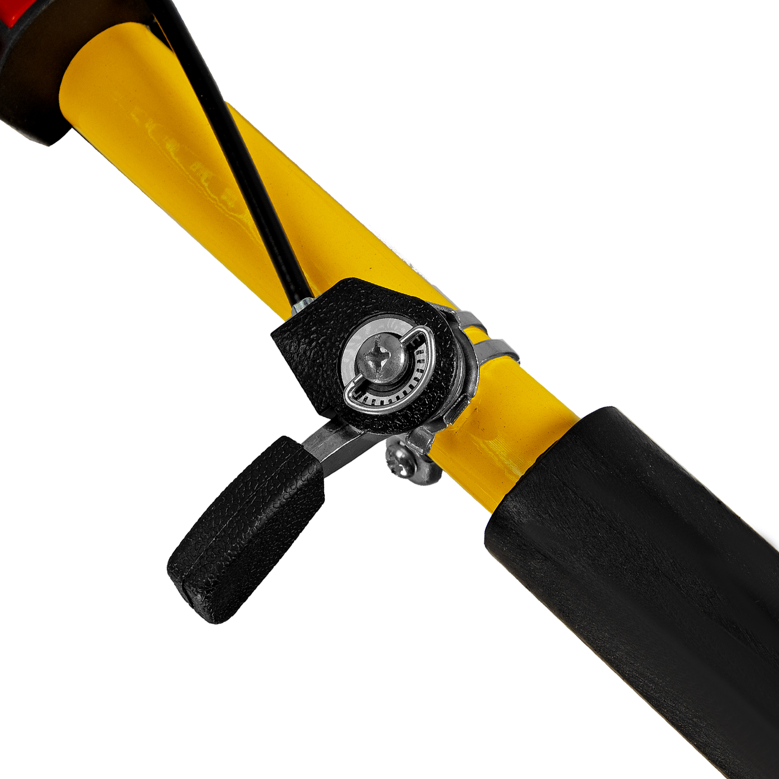 - Легкое управление — регулятор оборотов двигателя, выключатель зажигания и рычаг сцепления находятся на рукоятке перед пользователем.