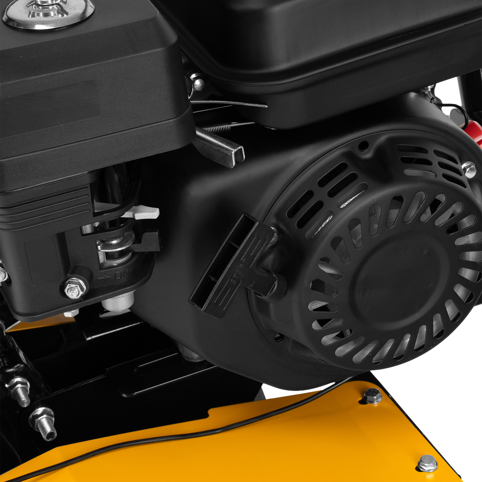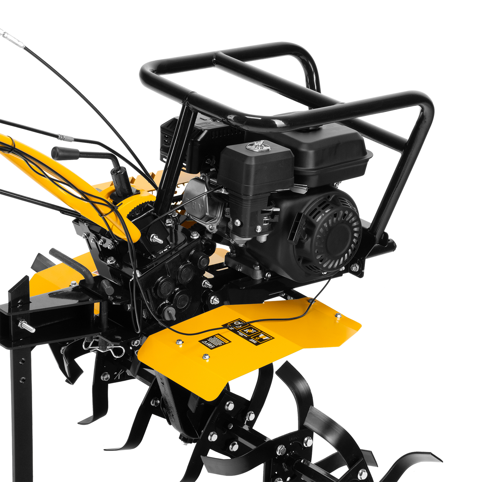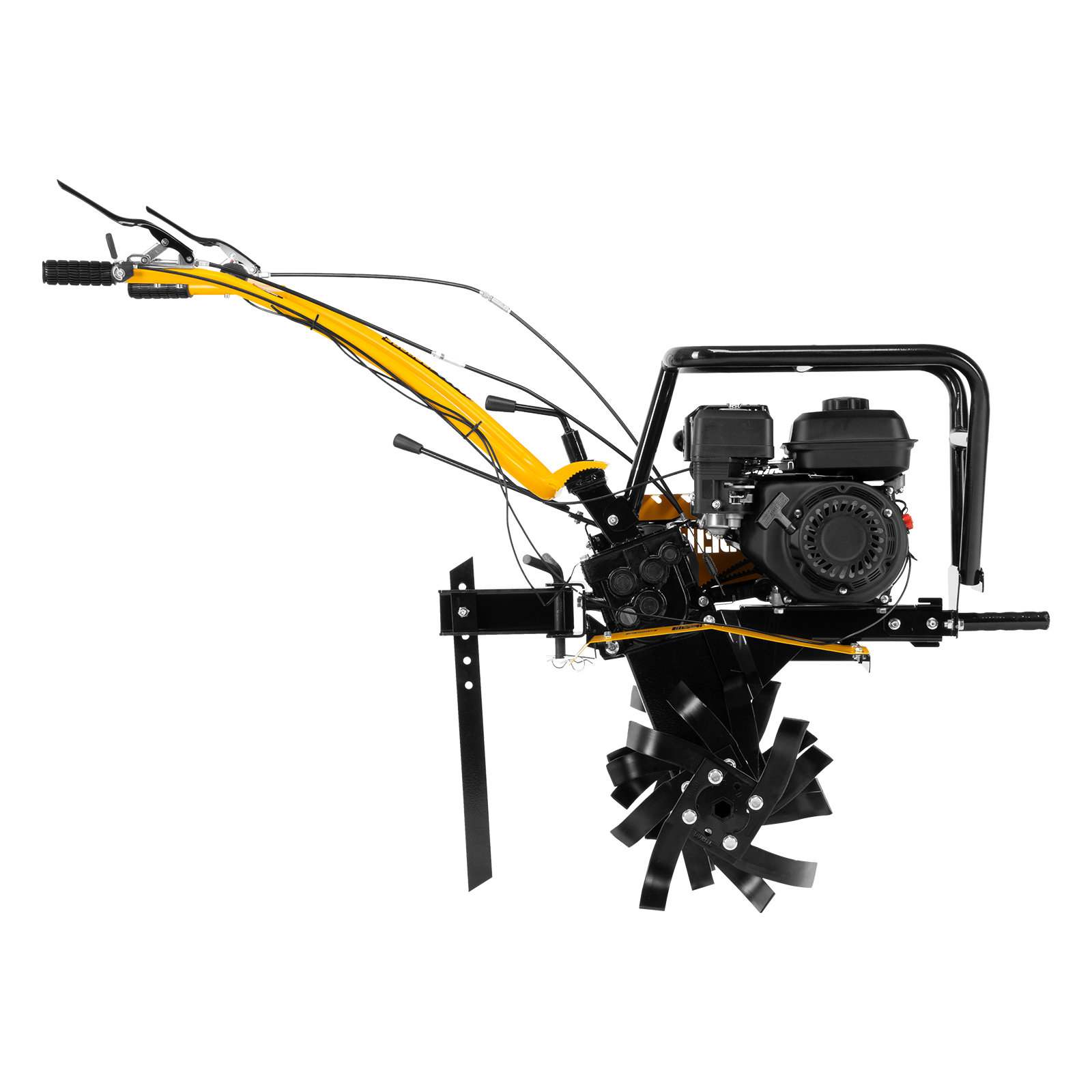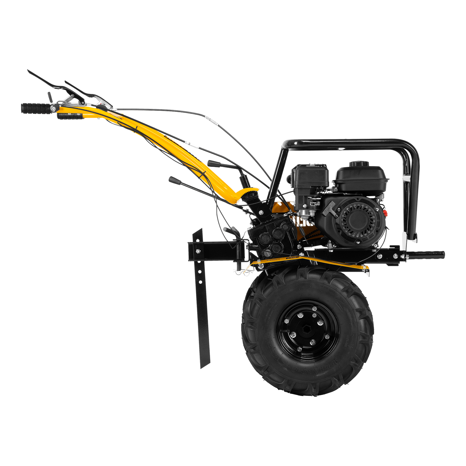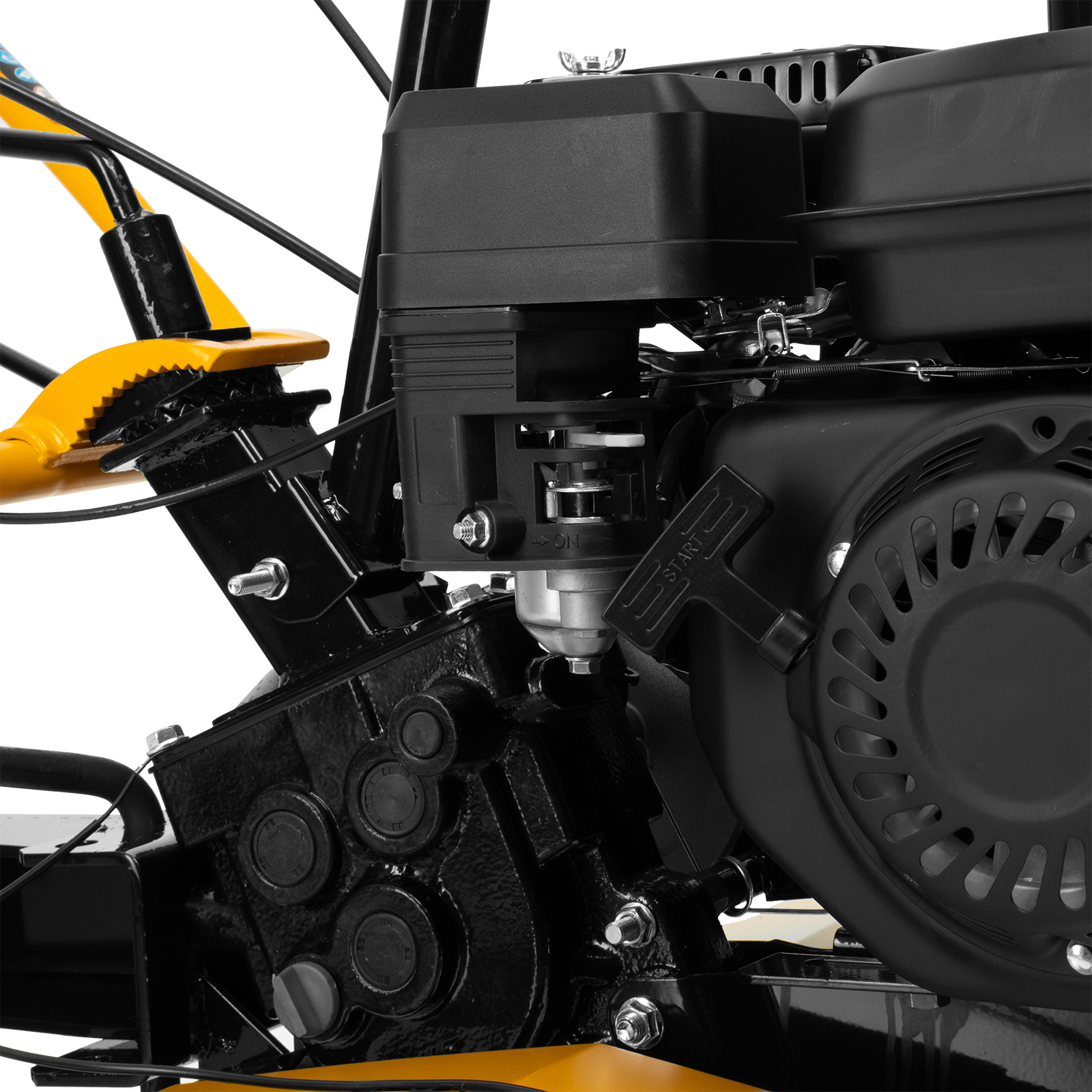 - Усиленная рама — ключевые узлы надежно защищены, мотоблок удобно транспортировать.