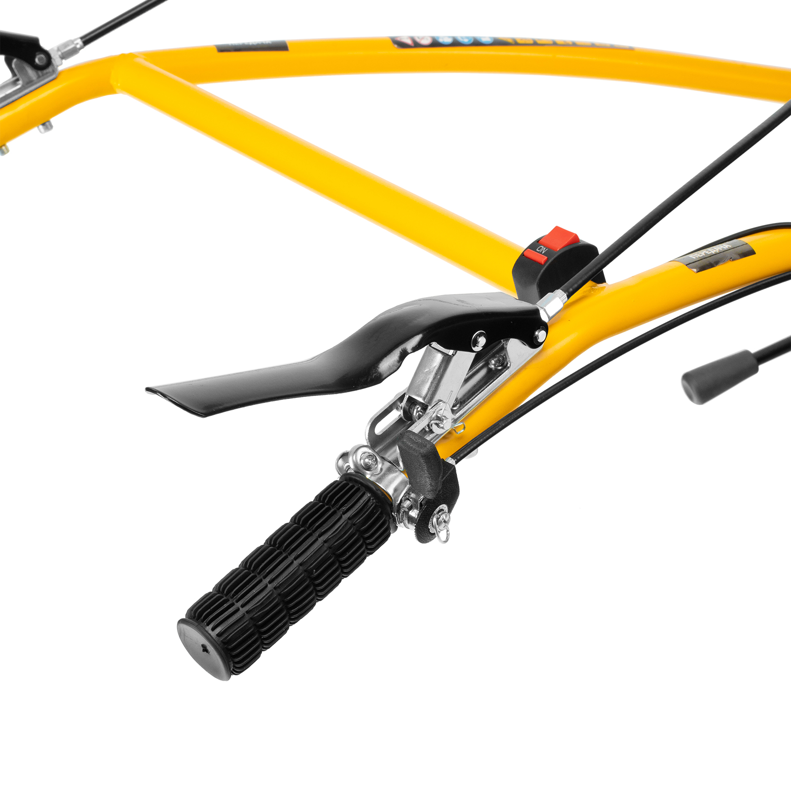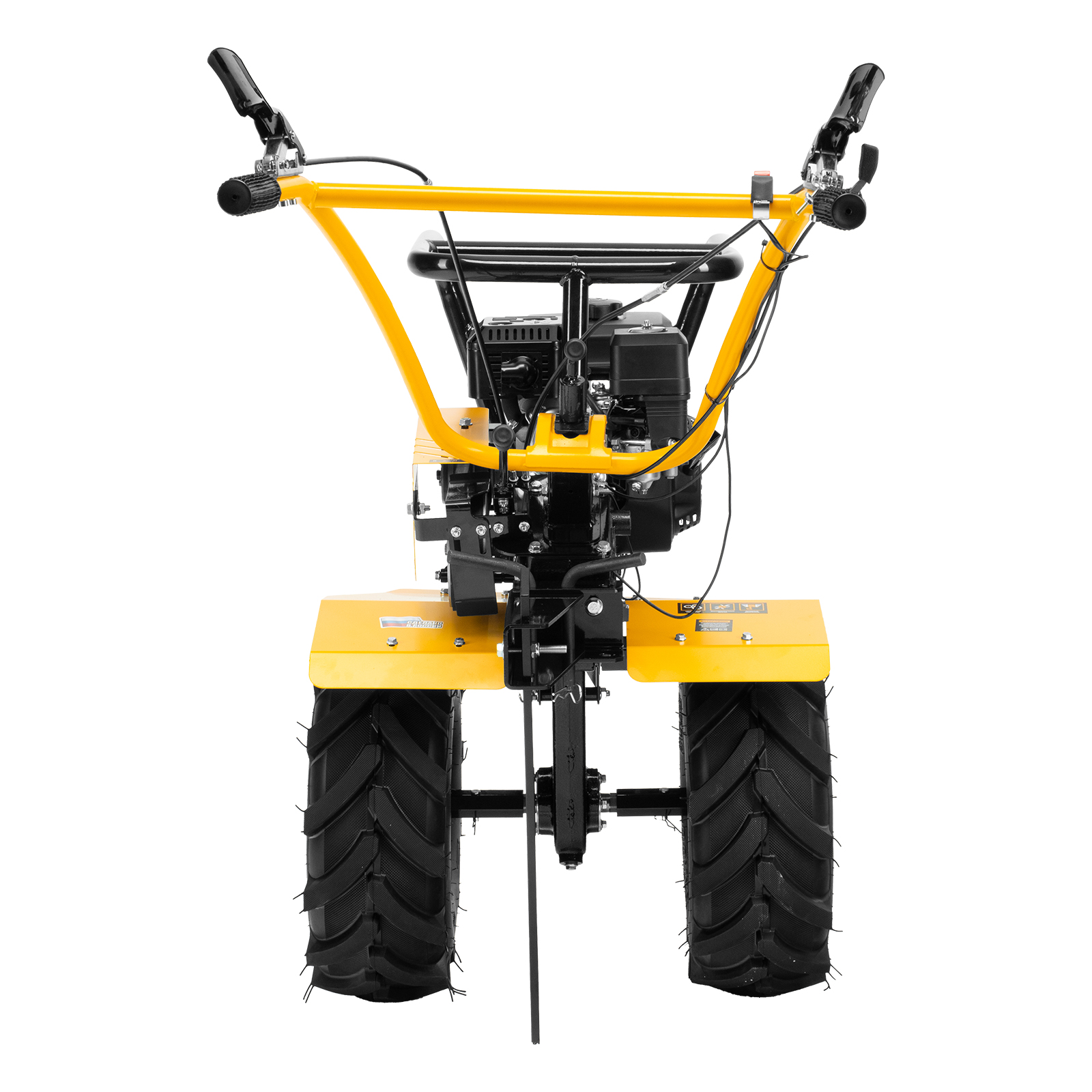 - Удобное управление — регулятор оборотов двигателя и рычаги сцепления расположены на руле, руль регулируется в двух плоскостях.