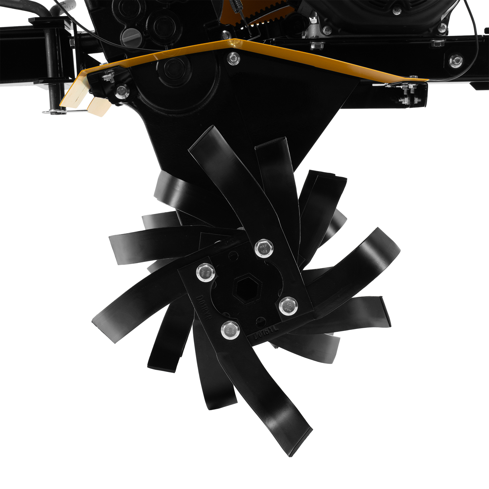 - Настраиваемая ширина обработки — установка одного ряда фрез позволяет обрабатывать узкие грядки шириной 650 мм, установка двух рядов фрез обеспечит ширину 1000 мм для максимально эффективной работы.