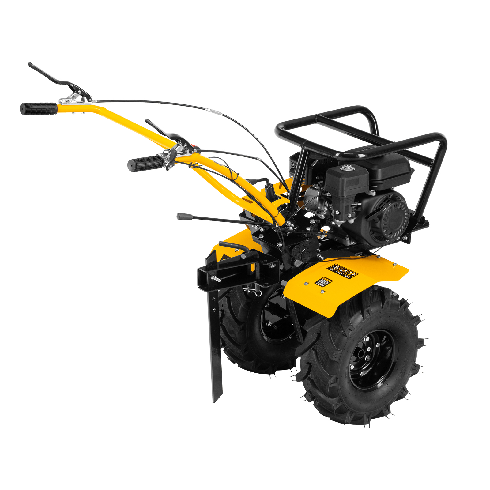 - Усиленная рама — ключевые узлы надежно защищены, мотоблок удобно транспортировать.