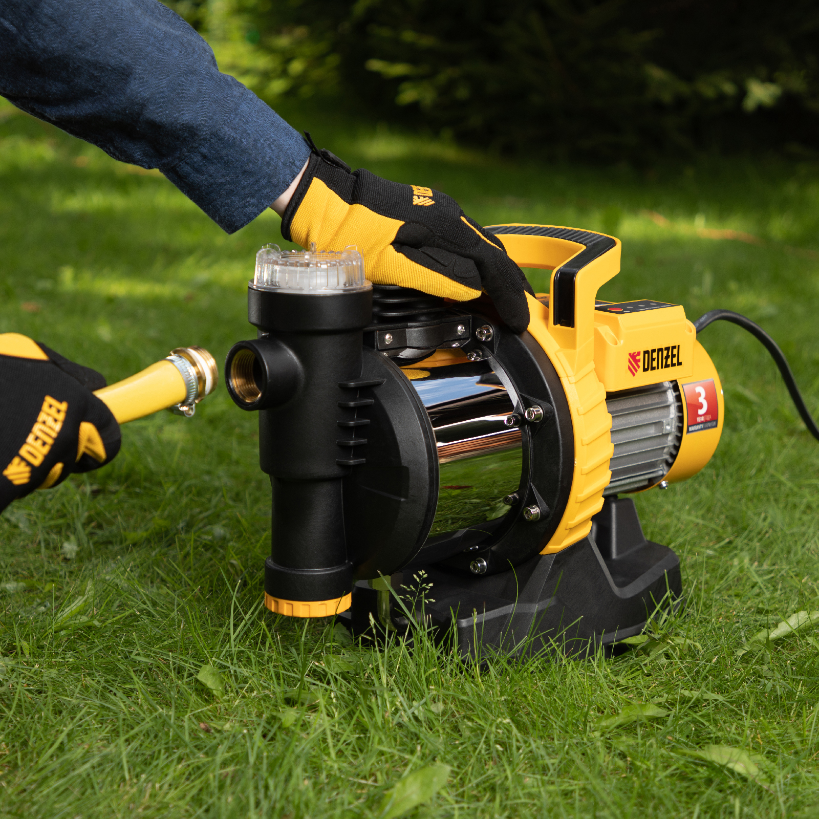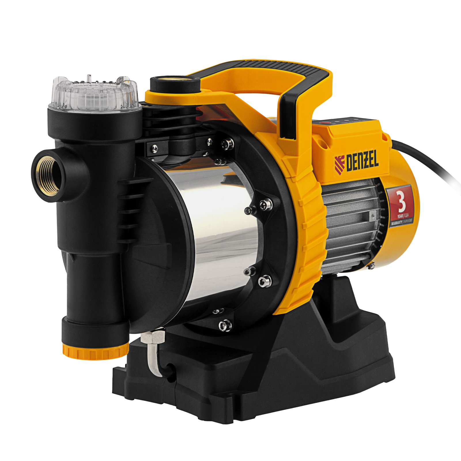 Садовый поверхностный насос Denzel GP1100SS 97305 мощностью 1100 Вт и производительностью до 4000 л/ч, с корпусом из пластика, осуществляет забор чистой воды с глубины до 8 м из колодцев, емкостей и водоемов, поднимая ее на высоту до 45 м. Используется для организации системы полива и водоснабжения на даче. Его можно подключать к водопроводной системе для обеспечения стабильного напора. Производительности насоса хватит для снабжения нескольких водоразборных точек одновременно.